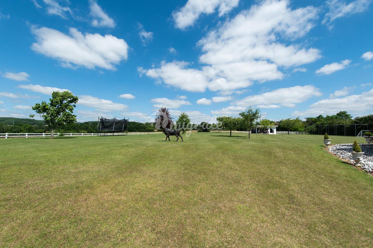 Отдельно стоящее здание спортзала с крытой верандой спереди, двустворчатыми дверями и всепогодными сетками для крикета делает это место идеальным для занятий спортом.