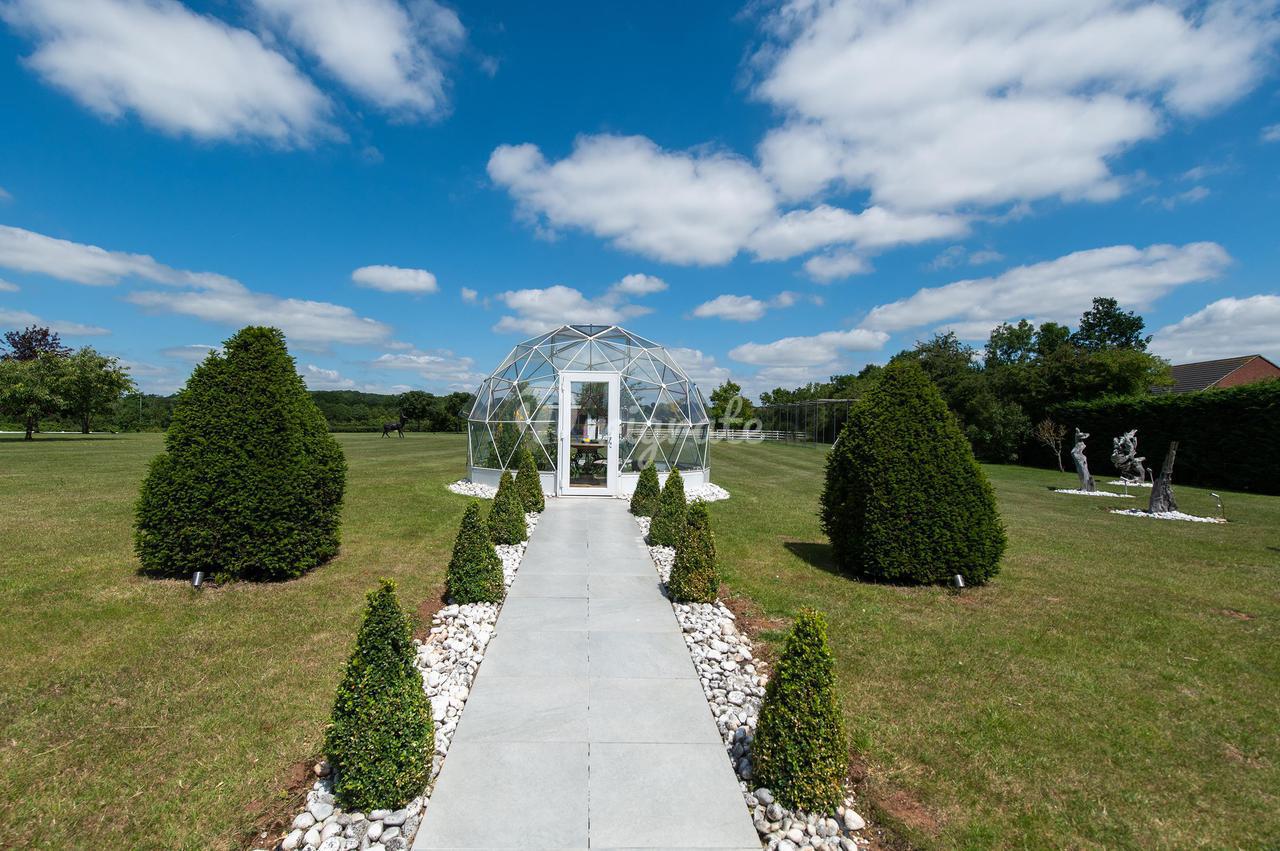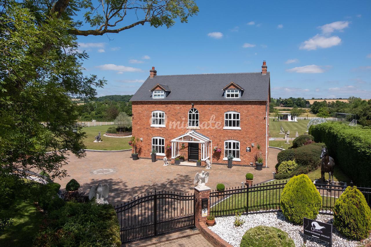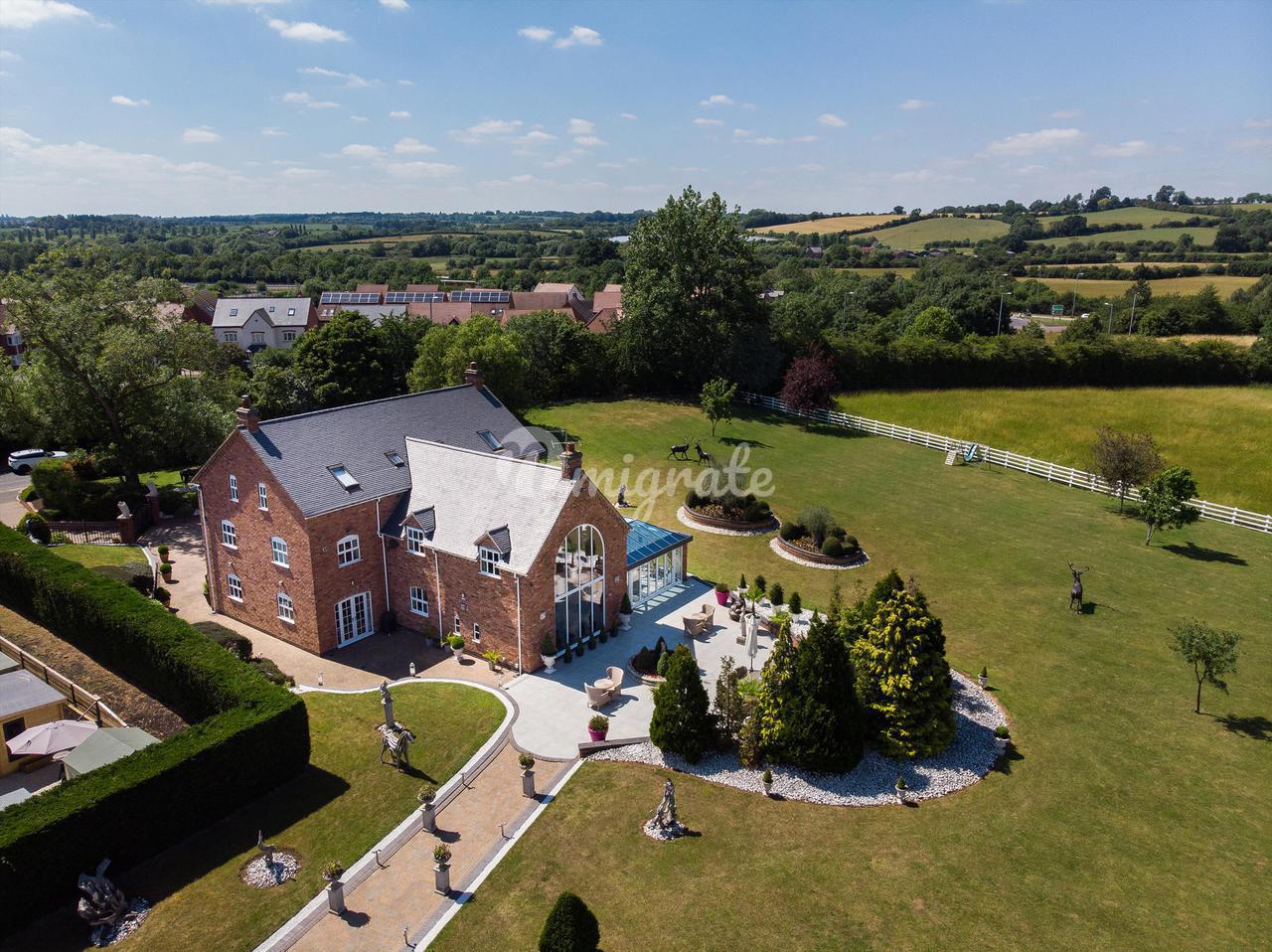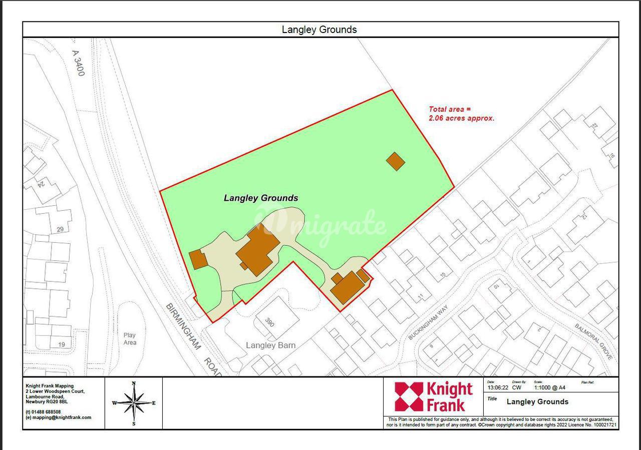 Перед домом есть большой участок асфальтированной парковки. Гаражный блок включает в себя гараж на две машины и газонокосилку гараж/мастерская с примыкающей котельной. Сады на территории Лэнгли в настоящее время значительно расширены за счет садовых скульптур и горшков, которые могут быть предоставлены покупателю по согласованной цене. Мощение продолжается сбоку от дома мимо прекрасного кустарника и цветочной грядки к богато вымощенной террасе с центральной круглой клумбой и посыпанной гравием вечнозеленой клумбой. Сад в основном покрыт газоном и обширен, с декоративными деревьями, кустарниками и цветочными клумбами, окруженными выкрашенными в белый цвет столбами и перилами ограждения, с видом на открытые сельскохозяйственные угодья за их пределами.