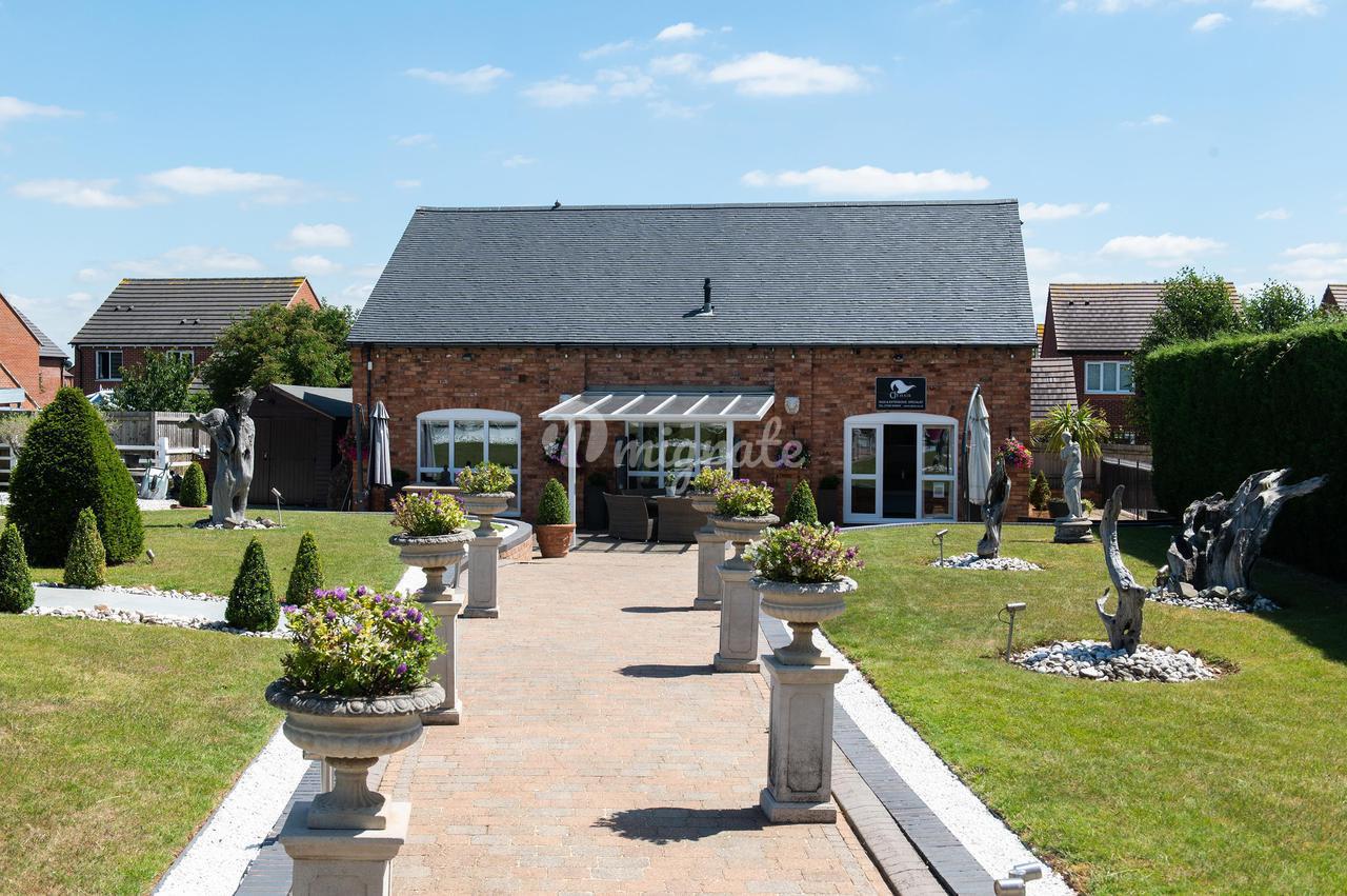 Отдельно стоящий сарай из кирпича и шифера, к которому примыкает большой застекленный навес, предназначен для коммерческого использования. На первом этаже с дубовым полом с подогревом и частично сводчатым потолком находится развлекательный/ кинозал с баром со стеллажами, раковиной и местом для хранения вещей, потолком из акустической плитки, большим окном во всю высоту и открытой кирпичной кладкой. Лестница из дуба и стали с открытыми ступенями ведет в офис на втором этаже. С ламинированным полом, балконом "Джульетта" с балюстрадой из кованого железа, шкафами с зеркальным покрытием и открытыми потолочными балками. Туалет и магазин комната.