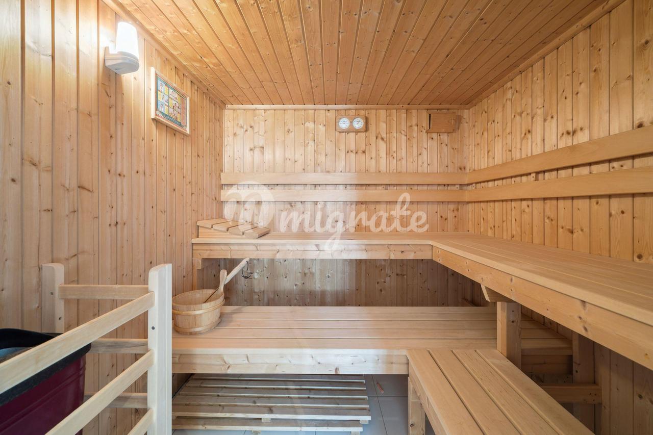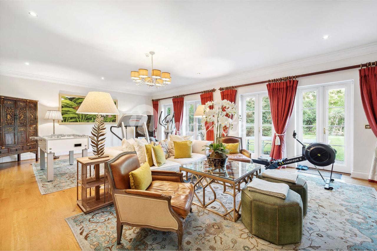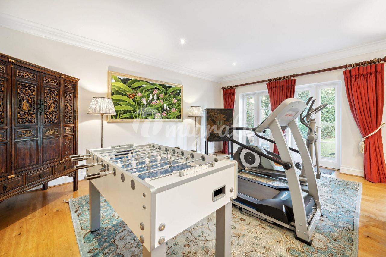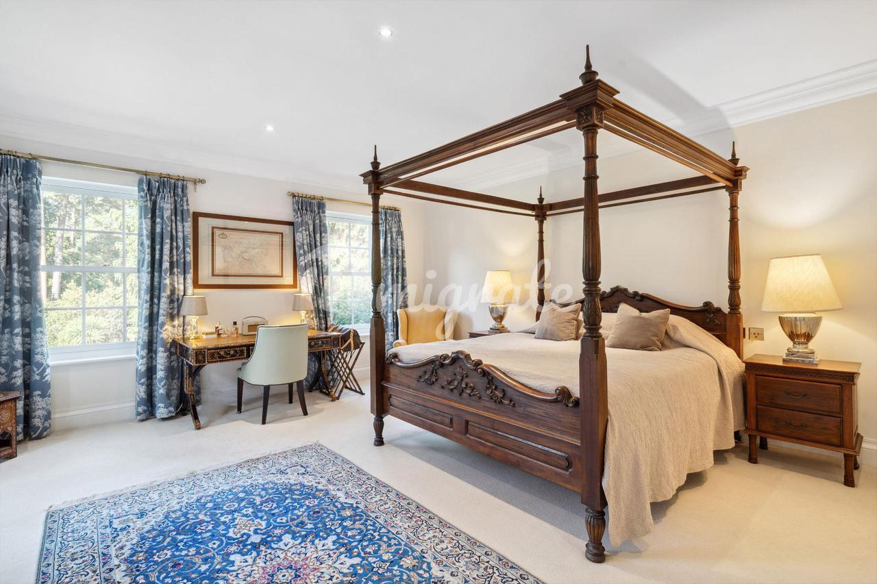 На втором этаже, куда ведет парадная лестница, расположены апартаменты с пятью спальнями, все со встроенными вместительными шкафами на заказ. Главная спальня с захватывающим видом на зрелый сад, в основном покрытый газоном, располагает большой гардеробной и душевой комнатой, а также балконом. На втором этаже находится фантастическая 47-метровая дополнительная комната с сауной.