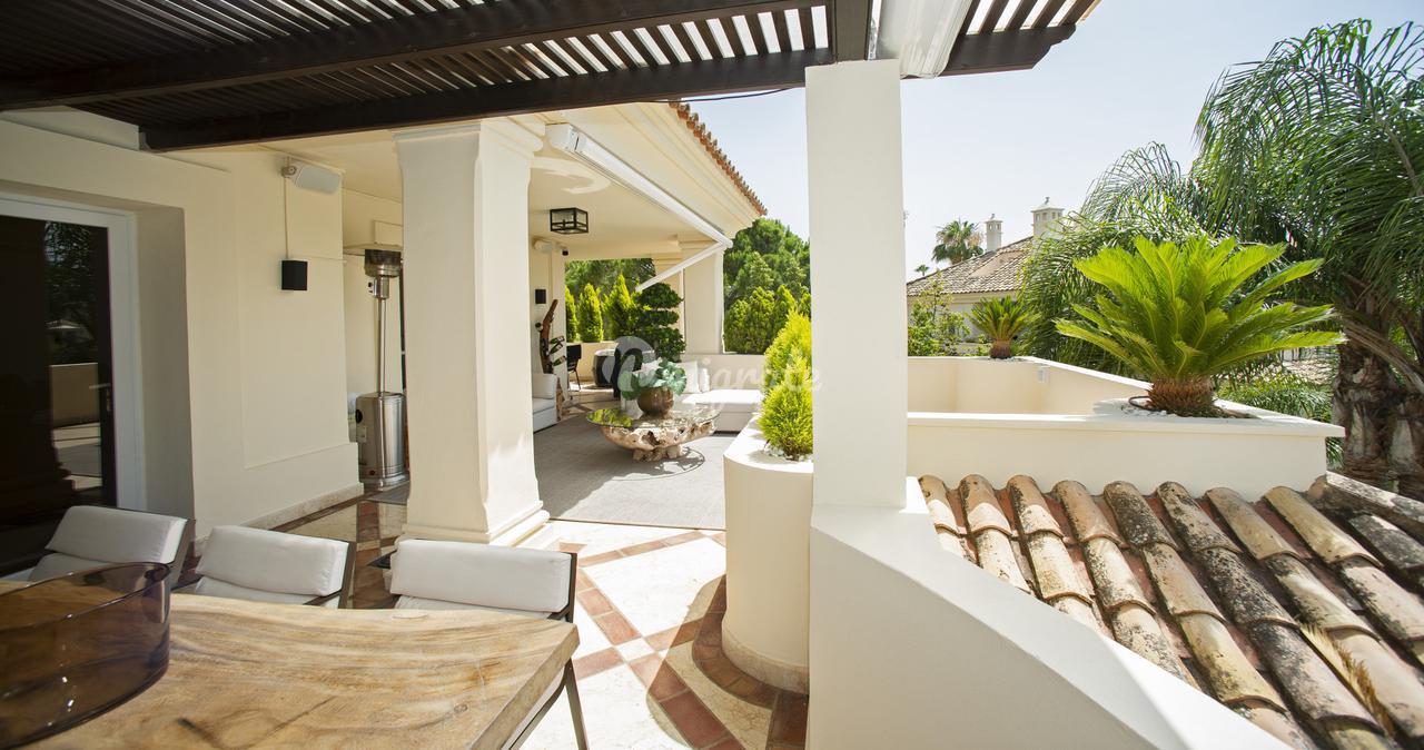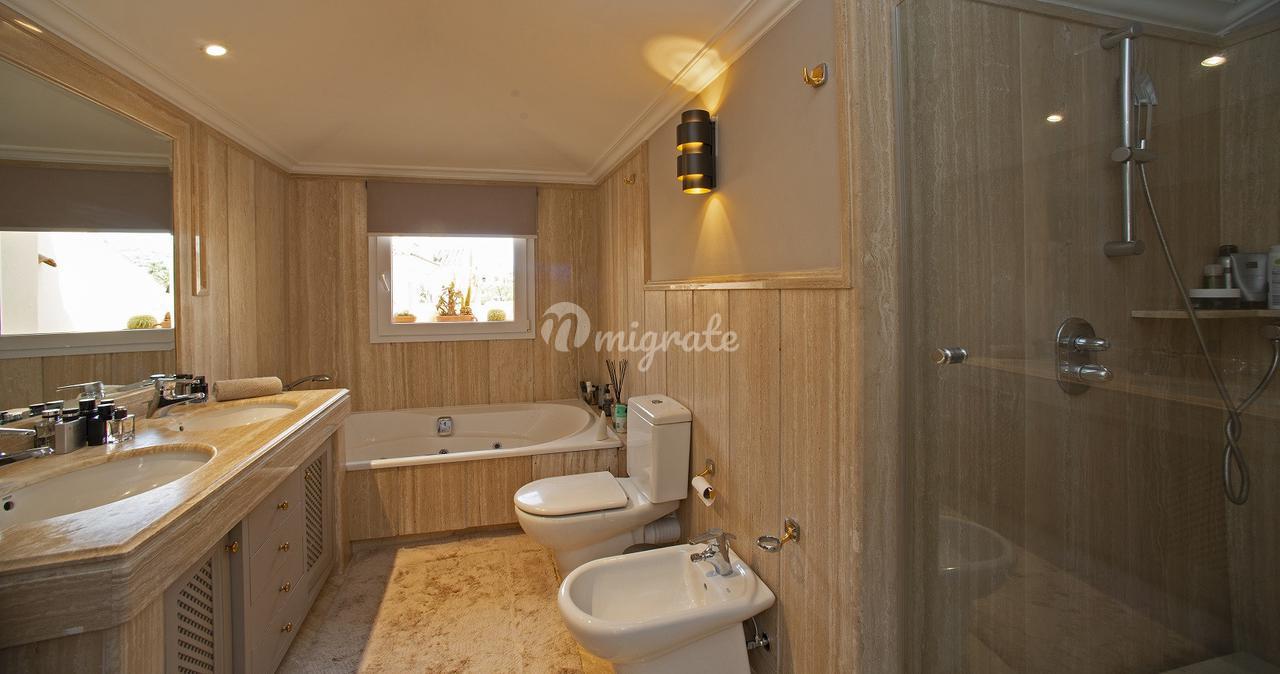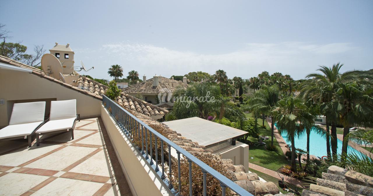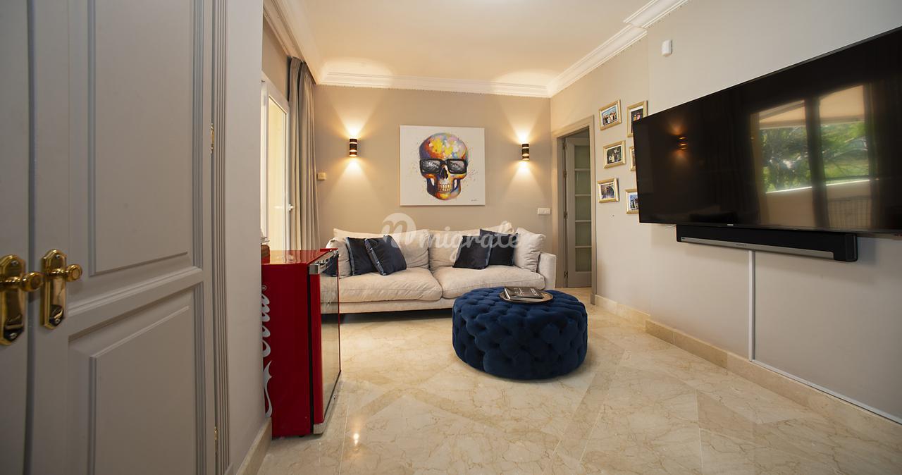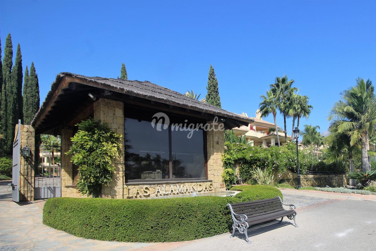 Этот двухуровневый пентхаус, выходящий на южную сторону, расположен в Лас-Аламандасе, популярном комплексе из двадцати потрясающих блоков с исключительными квартирами. Он расположен среди многочисленных полей для гольфа долины Новая Андалусия, таких как Лос-Наранхос и Лас-Брисас, примерно в 2,4 км от международной школы Aloha College в Марбелье, в 4,2 км от Пуэрто-Бануса и в 5 км от Золотой мили Марбельи. Дом только что был покрашен и в настоящее время не обставлен мебелью. Первый этаж состоит из прихожей, ведущей в гостиную/столовую с камином и выходом на большую полукрытую террасу с видом на бассейн с подогревом, гостевого туалета, спальни с собственной ванной комнатой, полностью оборудованной кухни Siemens с техникой Bosch с видом на гольф-клуб Los Naranjos и выходом на террасу, деревянные шкафы, пол из керамической плитки и примыкающая к нему прачечная.