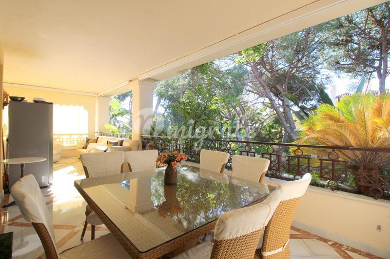 Квартира с 3 спальнями в элитной урбанизации, состоящей из 80 квартир, распределенных в 12 блоках, с террасами, гаражами и зеленой зоной с прекрасными садами, бассейнами, системами безопасности и гарантированной конфиденциальностью. Отделка отличная, мраморные полы, полностью оборудованная и меблированная кухня и террасы с прекрасным видом. Урбанизация имеет большой престиж и благодаря своему расположению является одной из лучших в Марбелье. В нем есть бассейн с подогревом от геотермальной энергии, очень эффективная система.