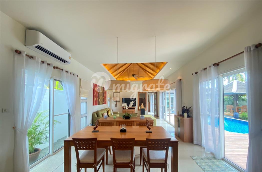 ОПИСАНИЕ НЕДВИЖИМОСТИ Эта современная вилла с бассейном в азиатском стиле расположена на земельном участке площадью 520 кв. м с жилой площадью 322 кв. м в закрытом комплексе недалеко от пляжа Лаян.