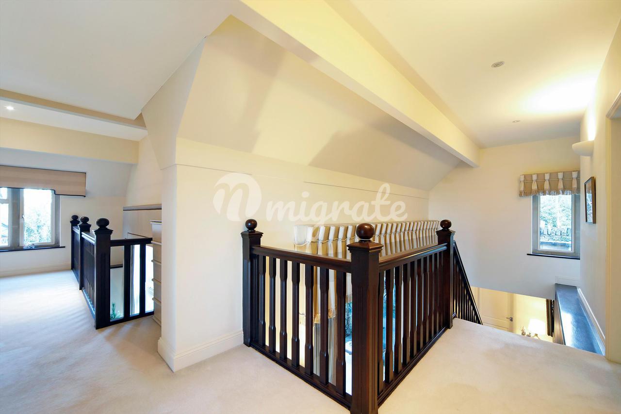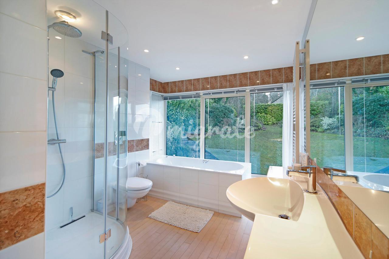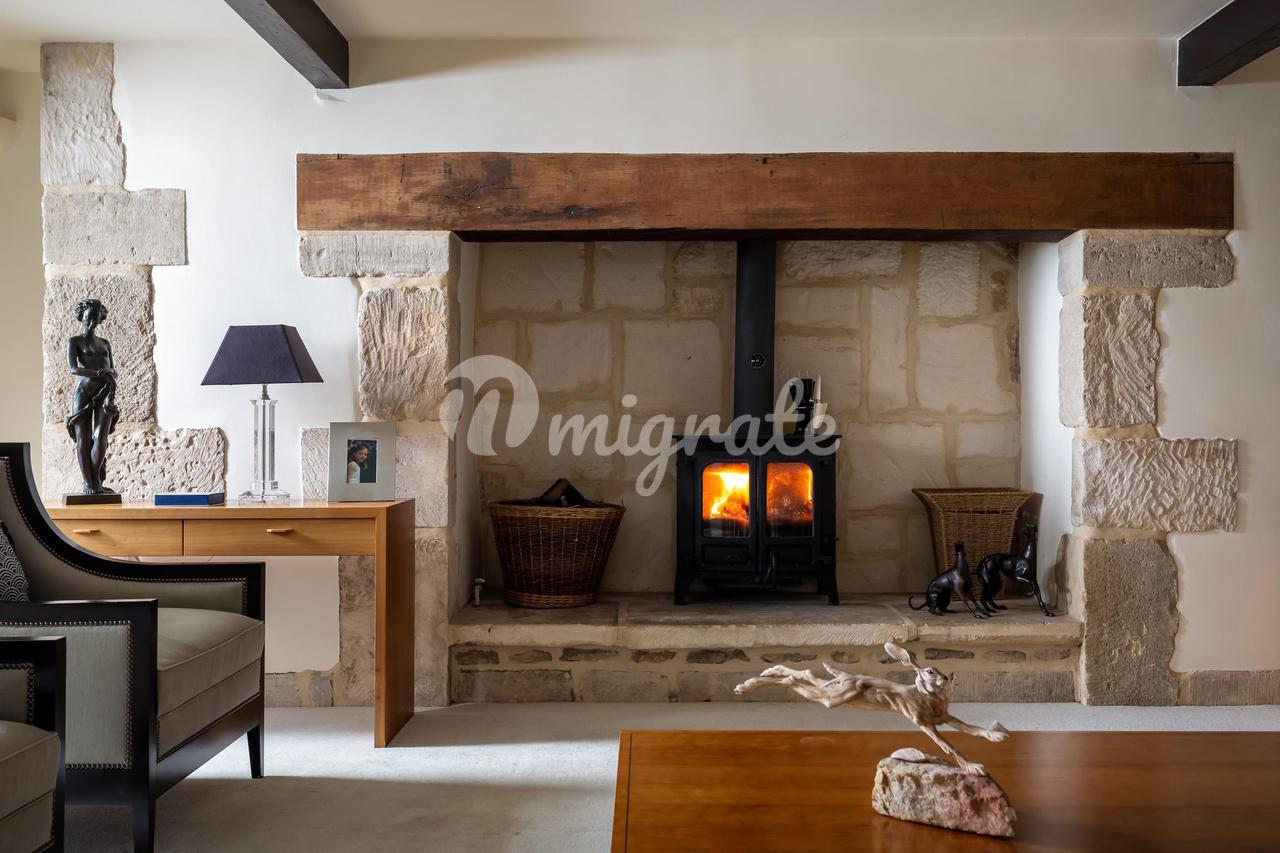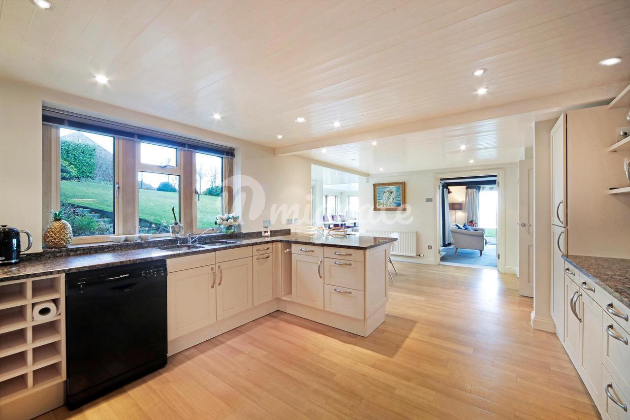 Доступ к дому осуществляется через автоматические ворота, ведущие к большому широкому подъезду, который обеспечивает просторную парковку и доступ к гаражу на две машины. Внутренний вестибюль двойной высоты обеспечивает подходящий вход в этот восхитительный дом и открывается в основные приемные и жилые помещения. На уровне первого этажа жилье имеет воздушное и «открытое» ощущение. Есть благоустроенная кухня с подсобным/загрузочным помещением позади; кухня выходит в большую оранжерею, которая идеально расположена, чтобы полюбоваться вышеупомянутыми видами, имеет современную дровяную печь и двери в сад.