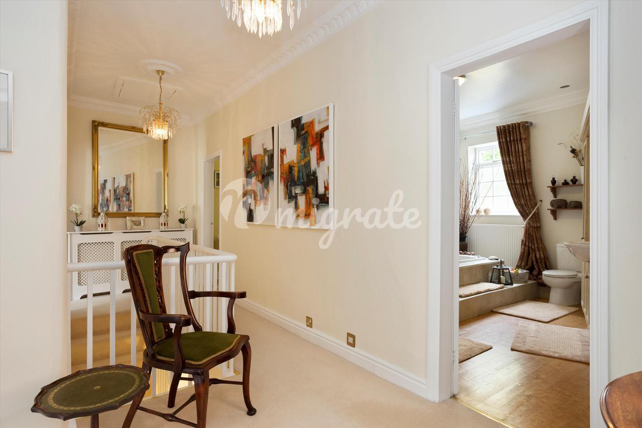 Входная дверь открывается в светлую приемную. Вентиляционное окно над дверью обеспечивает много естественного света, а двери ведут во все основные приемные комнаты. Существует полезная гостевая гардеробная / туалет, лестница спускается на нижний, цокольный уровень и лестница поднимается на второй этаж. Гостиная, расположенная в передней части дома, обставлена со вкусом. Привлекательный открытый камин с красивым чугунным обрамлением и облицовкой плиткой привлекает внимание. Высокий арочный альков по обе стороны добавляет дополнительный интерес. Большое окно выходит на фасад, а французские двери открываются в задний дворик и сад. Официальная столовая также расположена в передней части дома и подходит для вдохновенных званых обедов и семейных ужинов по особым случаям. Большое окно наполняет пространство естественным светом, а камин из чугуна и изразцовой плитки является прекрасным центром внимания. Коридор для приемов ведет прямо в большую и уютную семейную комнату, расположенную в центре дома. Идеально подходящее для современной семейной жизни, это пространство располагает к отдыху, будь то в тишине с хорошей книгой или перед просмотром фильма. Французские двери открываются во внутренний дворик, что позволяет наслаждаться садом в теплые летние месяцы. Изысканная кухня хорошо оборудована широким ассортиментом глянцевых настенных и напольных приборов прекрасного голубого цвета утиного яйца с контрастирующими рабочими поверхностями в стиле орехового дерева. Кухня, оснащенная различными встроенными приборами, идеально подойдет для любого начинающего шеф-повара. Завтрак может быть подан в двухместной барной стойке для завтрака или по соседству, в семейном зале. Большое окно с видом на сад и стеклянная дверь обеспечивают много естественного света. Внизу, в подвале, находится хорошо оборудованный и большой домашний офис с достаточным количеством места для хранения вещей. Доступ к нему осуществляется из вестибюля приемной, где можно было бы легко приглашать коллег по работе на встречи, не прерывая семейную жизнь. Превосходная игровая комната / кинозал большой, удобный, уютный и веселый! Это пространство идеально подходит для вечера кино с семьей или друзьями. Помещение на цокольном этаже чрезвычайно гибко в использовании. Лестница поднимается из вестибюля приемной на площадку второго этажа. Отсюда можно попасть во все четыре спальни вместе с семейной ванной комнатой. Роскошная главная спальня расположена сбоку от дома и имеет двойной вид, есть окно, выходящее спереди и сзади, что обеспечивает много света. Прекрасно обставленный, в соответствии с остальной частью этого сказочного дома, здесь есть превосходное место для хранения вещей со встроенными шкафами в классическом стиле. Во второй спальне есть большое окно с прекрасным видом на зелень, примыкающую к передней части дома. Здесь есть вместительное встроенное хранилище и великолепный чугунный камин в спальне. Третья спальня также с прекрасным чугунным камином и большим окном, из которого открывается вид на задний сад. Существует также встроенное встраиваемое хранилище. Четвертая спальня - самая маленькая из спален и идеально подходит для ее нынешнего использования в качестве швейной комнаты / студии. Большое окно с видом на зелень обеспечивает достаточ