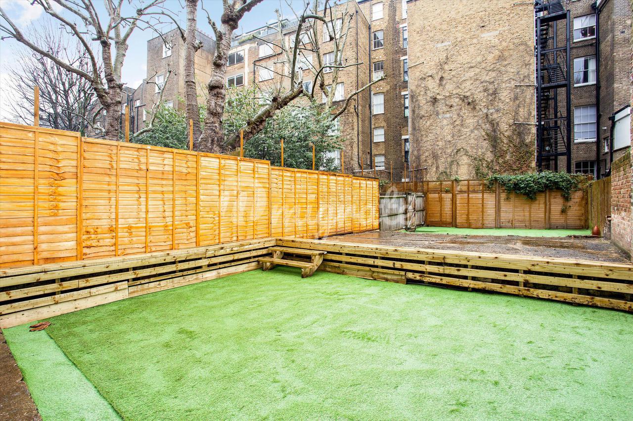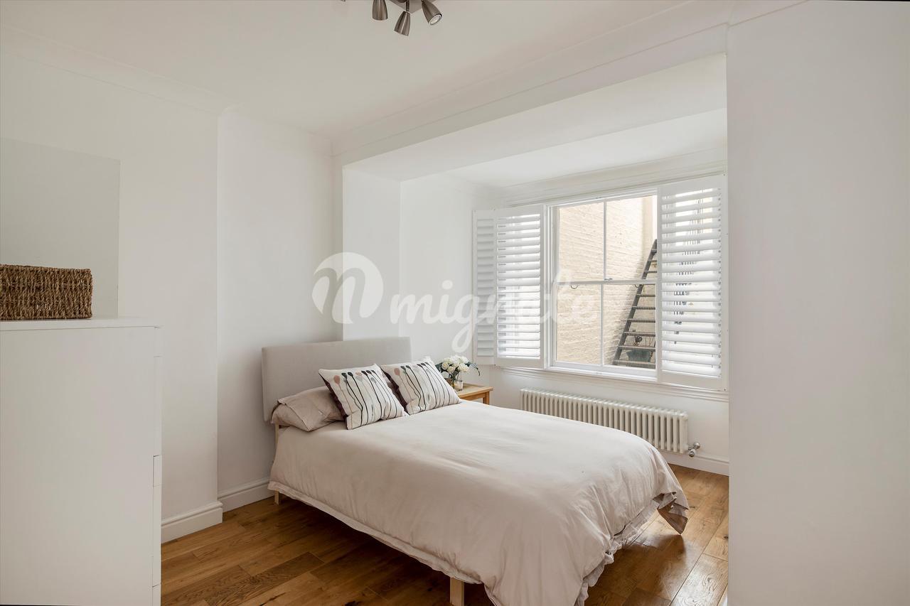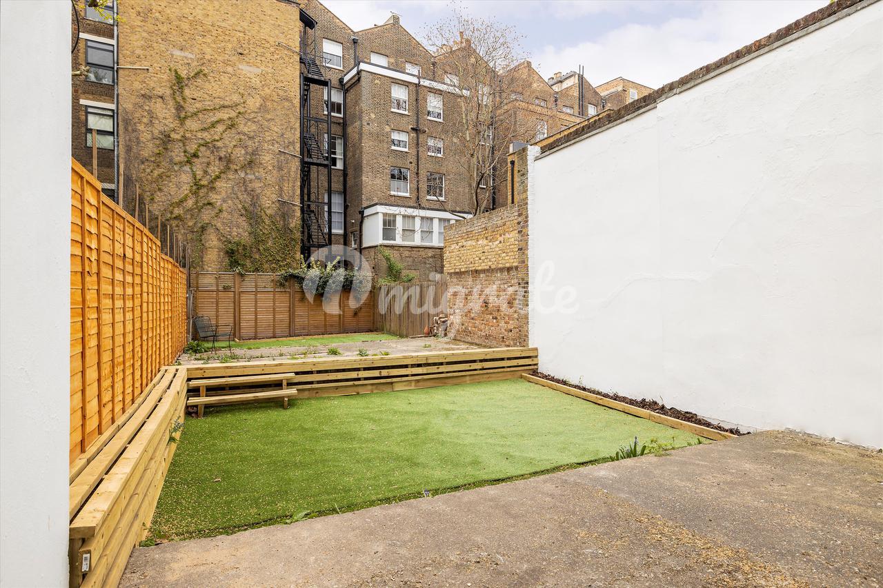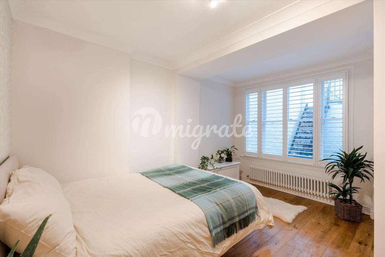 Квартира расположена на цокольном этаже и представляет собой большое пространство для развлечений с деревянным полом и современным электрическим камином. Кухня отдельная и предлагает полностью интегрированный блок.