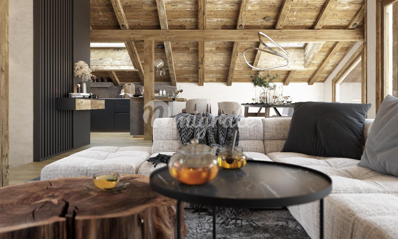 Красиво оформленное новое шале с видом на горы на южной стороне, предлагающее 209 кв. м жилой площади на трех этажах. Поставка запланирована на 2024 год.