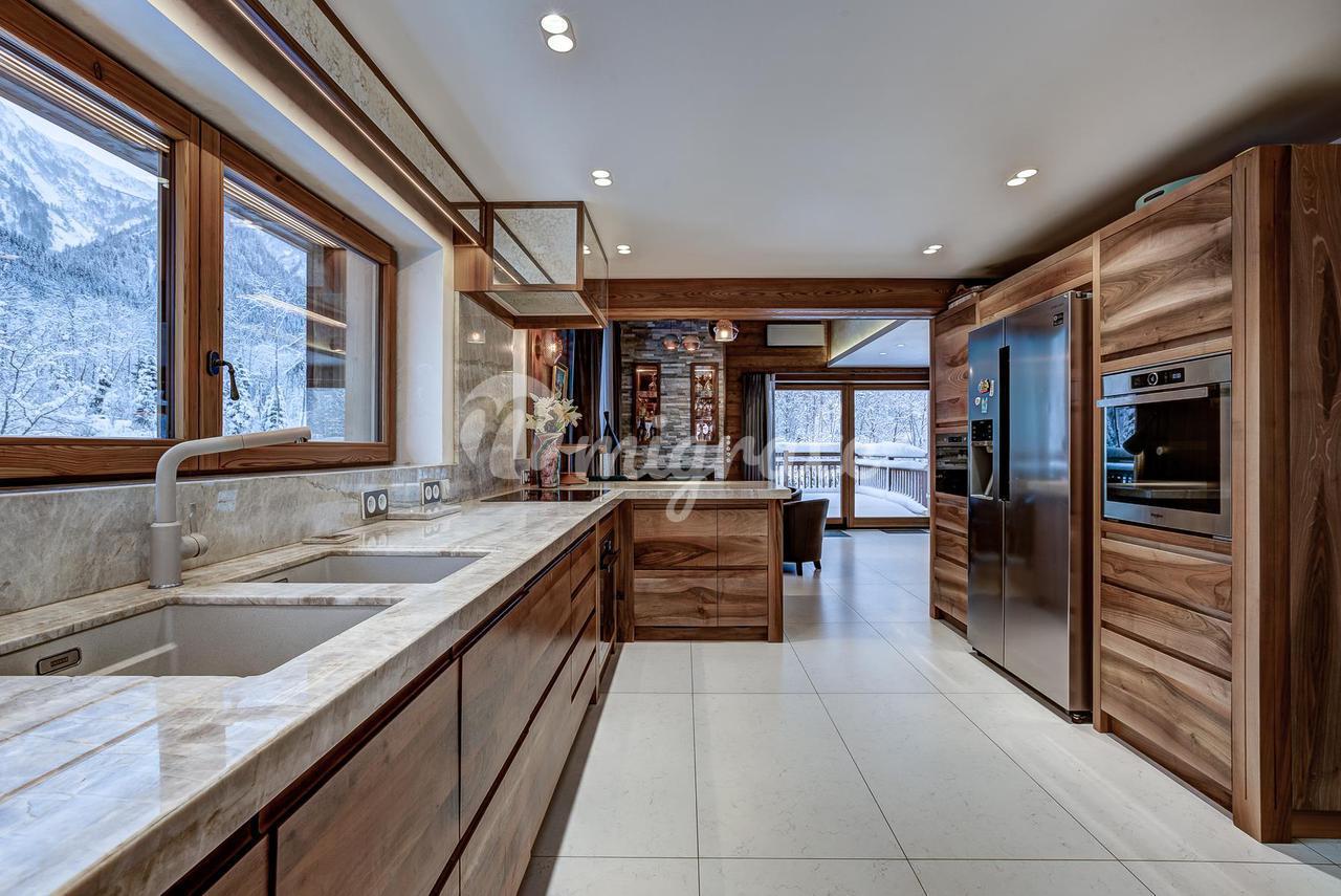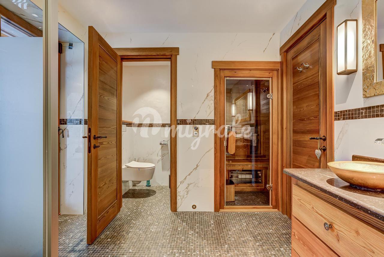 Это шале площадью 310 кв. м сочетает в себе высокое качество изготовления и функциональность для семейного проживания. Сочетание дерева и камня в сочетании со стеклом и сталью придает этому дому роскошный и в то же время комфортный вид с безупречным вниманием к деталям. Особо следует отметить изготовленную на заказ итальянскую кухню с двойной посудомоечной машиной, подвесную лестницу из орехового дерева, главный люкс с сауной, гидромассажной ванной на крытой террасе и общий уровень отделки. Отдельная двухкомнатная квартира площадью 32 кв.м с отдельным входом идеально подходит для персонала, посетителей или тех, кто ищет доход от аренды. Шале расположено на участке высотой 1800 м с открытым видом на тихую дорогу в Ле-Уше. Ключевые функции: - Чрезвычайно впечатляющее, светлое и комфортабельное семейное шале с отдельной квартирой и открытым видом на Лес Уш - Первоклассная постройка из высококачественных материалов, итальянская кухня на заказ, подвесная лестница, реверсивный кондиционер, два камина и окна с тройным остеклением -Главная спальня с душевой комнатой, сауной и выходом на террасу на западной стороне с гидромассажной ванной -Невероятно светлая гостиная и столовая в стиле собора с камином, выходящим на большую террасу, выходящую на западную сторону -Гараж на две машины и кладовая