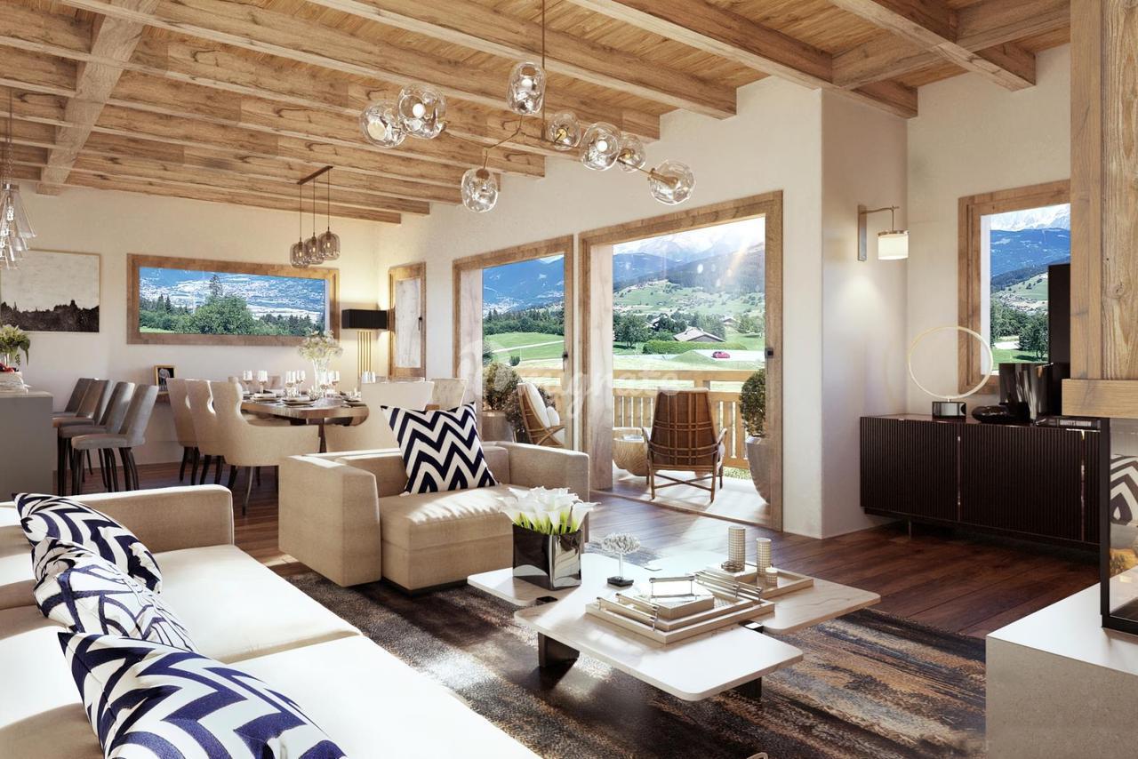 Совершенно новое шале площадью 185 кв.м с четырьмя спальнями, гаражом, большим подвалом и садом расположено на возвышенности, в тихом месте в популярном районе Ле-Уш. Недвижимость будет построена по высоким техническим требованиям на трех уровнях с камином, балконами и мезонином.