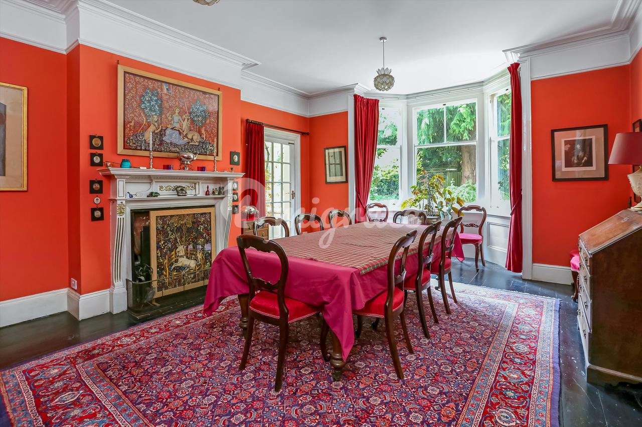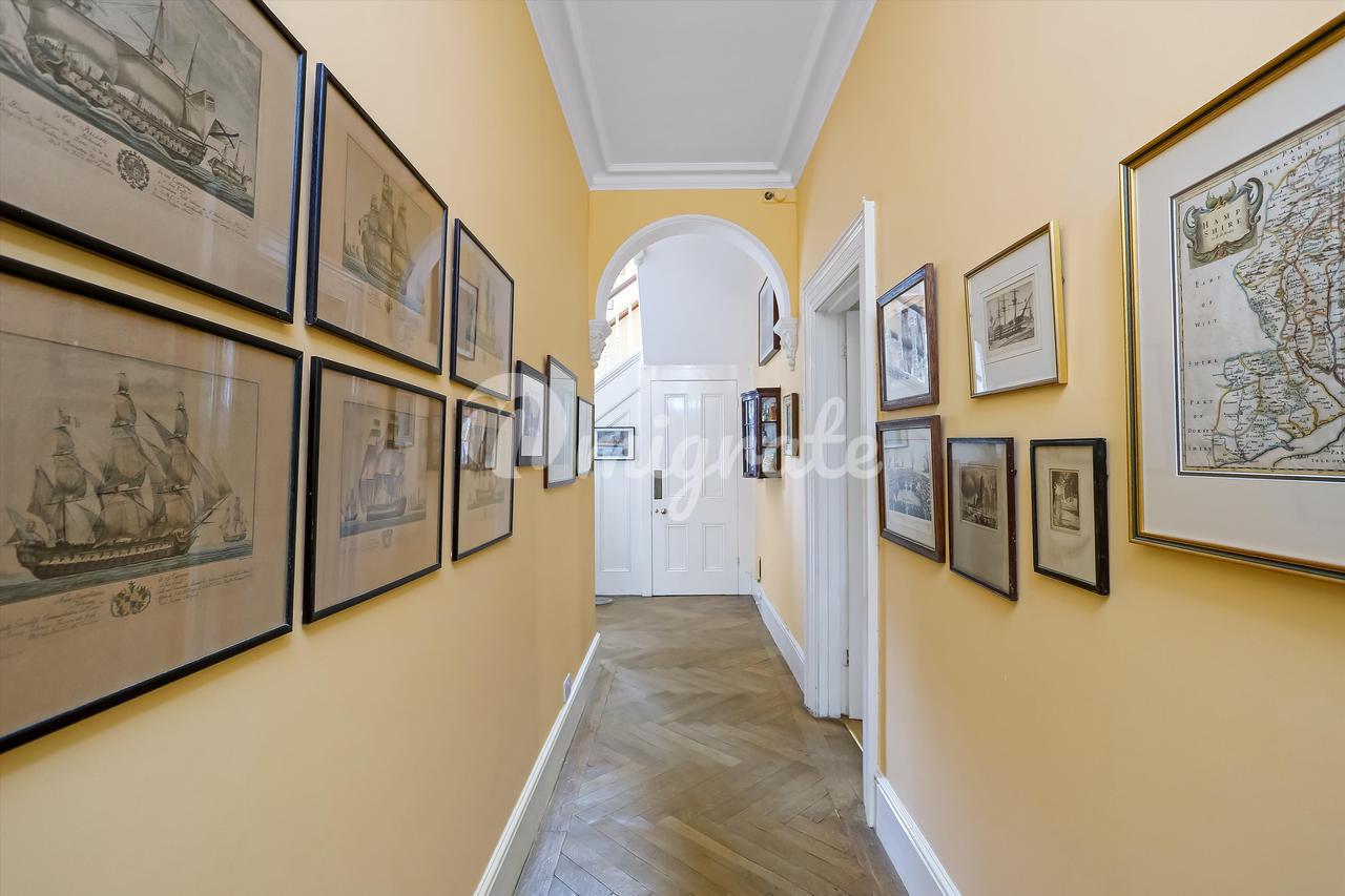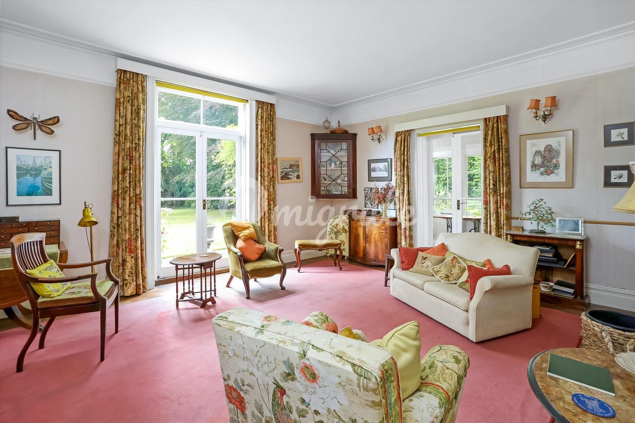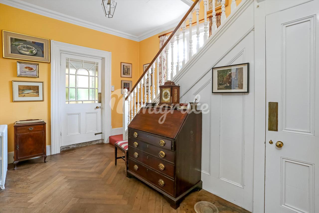 В доме сохранилось множество оригинальных старинных элементов, таких как карнизы, паркетный пол, декоративные камины и высокие потолки. Жилье состоит из отделанного деревянными панелями вестибюля, ведущего в просторную прихожую, рядом с которой находится большая столовая с впечатляющим камином и прилегающая солнечная комната. В солярий можно попасть через столовую, гостиную и сад. В просторной гостиной есть дровяная печь и двойные двери, выходящие в сад. Существует также кабинет, просторная кухня с островом, выходящая в зал для завтраков с большими окнами в мансарде и французскими дверями, выходящими на каменную террасу и в сад. Кроме того, есть семейная комната с большими окнами, пропускающими много естественного света. На первом этаже также есть гардеробная и подсобное помещение с раковиной. На втором этаже находятся пять спален. В просторной главной спальне есть встроенный шкаф-купе. Есть еще три спальни с двуспальными кроватями и одна пятая спальня поменьше. На этом этаже есть две ванные комнаты и гардеробная. На втором этаже находятся еще три спальни со сводчатыми потолками и большими створчатыми окнами, пропускающими много естественного дневного света, а также ванная комната.
