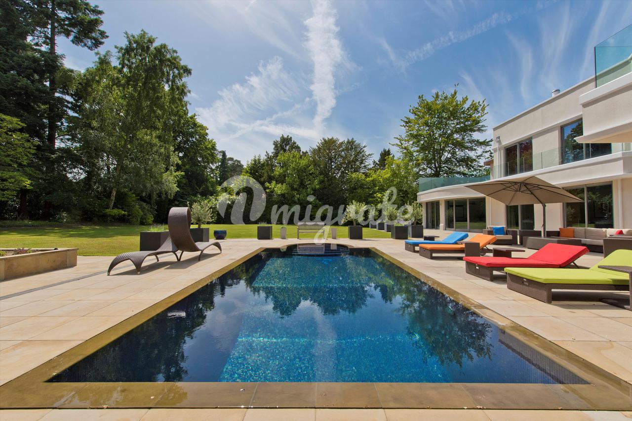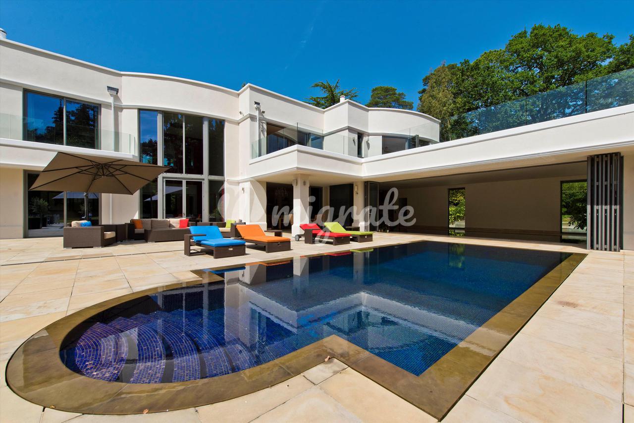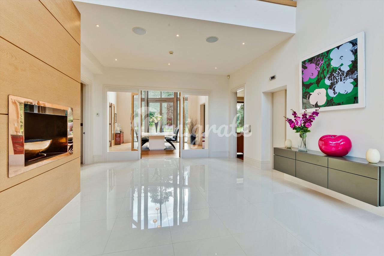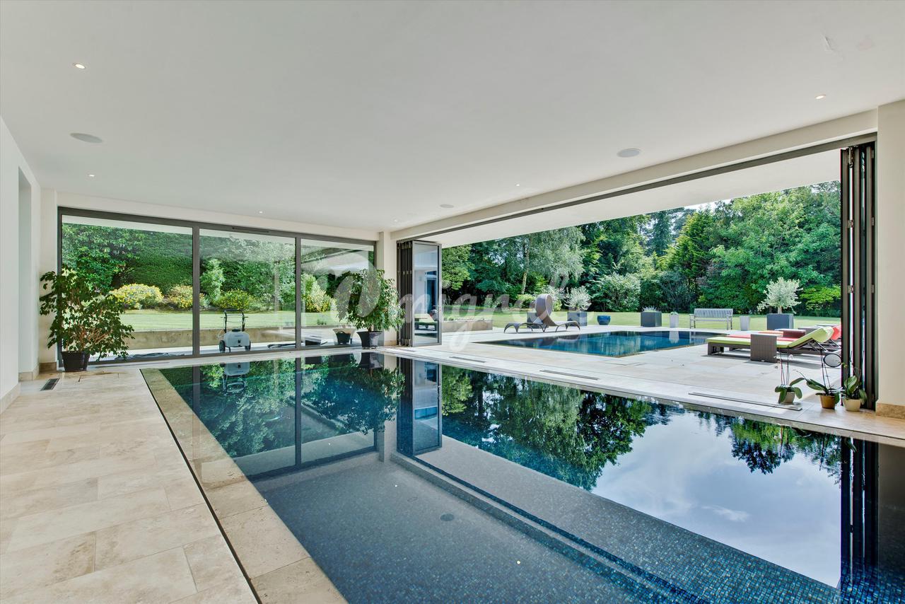 Lion Hill - это современный семейный дом с яркими чертами, построенный нынешним владельцем и расположенный в уединенном месте на территории частного поместья St George's Hill. Недвижимость предлагает гибкие условия проживания на участке с южной стороны, где достаточно места для развлечений. Жилье на первом этаже включает в себя просторную кухню / комнату для завтрака / семейную комнату с двумя центральными островками и раздвижными дверями, ведущими на террасу во внутреннем дворике, идеально подходящую для трапезы на свежем воздухе. Двойные двери ведут из кухни в столовую с поразительным сводчатым потолком, которая затем ведет в гостиную и кино / игровую комнату. В комплексе есть крытый бассейн с парной и раздевалкой, двустворчатые двери ведут на террасу во внутреннем дворике и к открытому бассейну. Наверху находится главная спальня, состоящая из главной спальни, «его и ее» гардеробных и роскошных ванных комнат. Двустворчатые двери открываются на большую террасу, а также в тренажерный зал, откуда открывается вид на террасу и сады. Двухуровневый гостевой люкс имеет выход на заднюю террасу и передний балкон. На первом этаже еще четыре спальни. Лестница ведет вниз из четвертой спальни к отдельному входу, что делает эту комнату идеальной для проживания в Au Pair. Снаружи к фасаду находится просторная подъездная дорога с просторной парковкой, ведущая как к двойному, так и к одиночному гаражу. Красивый ландшафтный сад за домом в основном выложен лужайкой с большой террасой и открытым бассейном с приподнятой террасой с настилом, с которой открывается вид на сад.