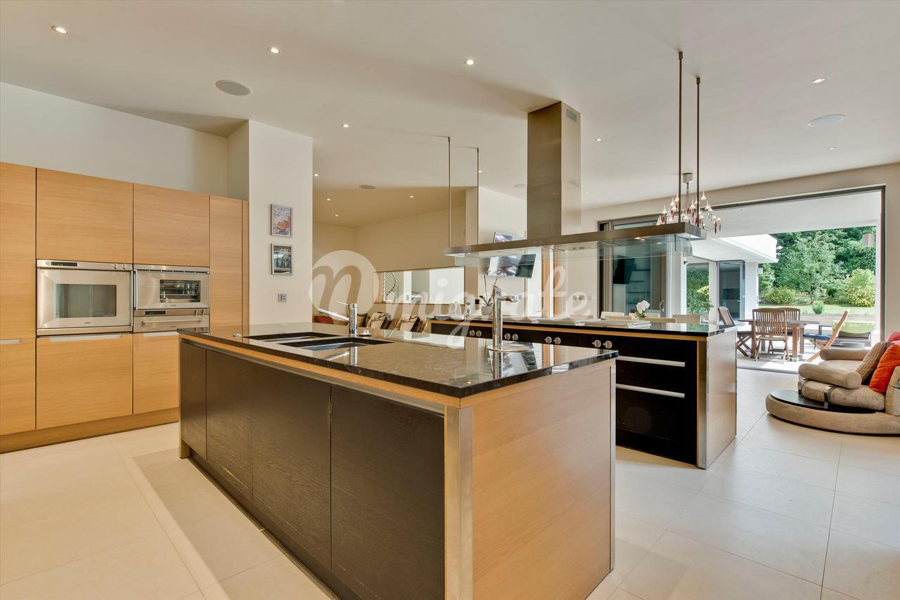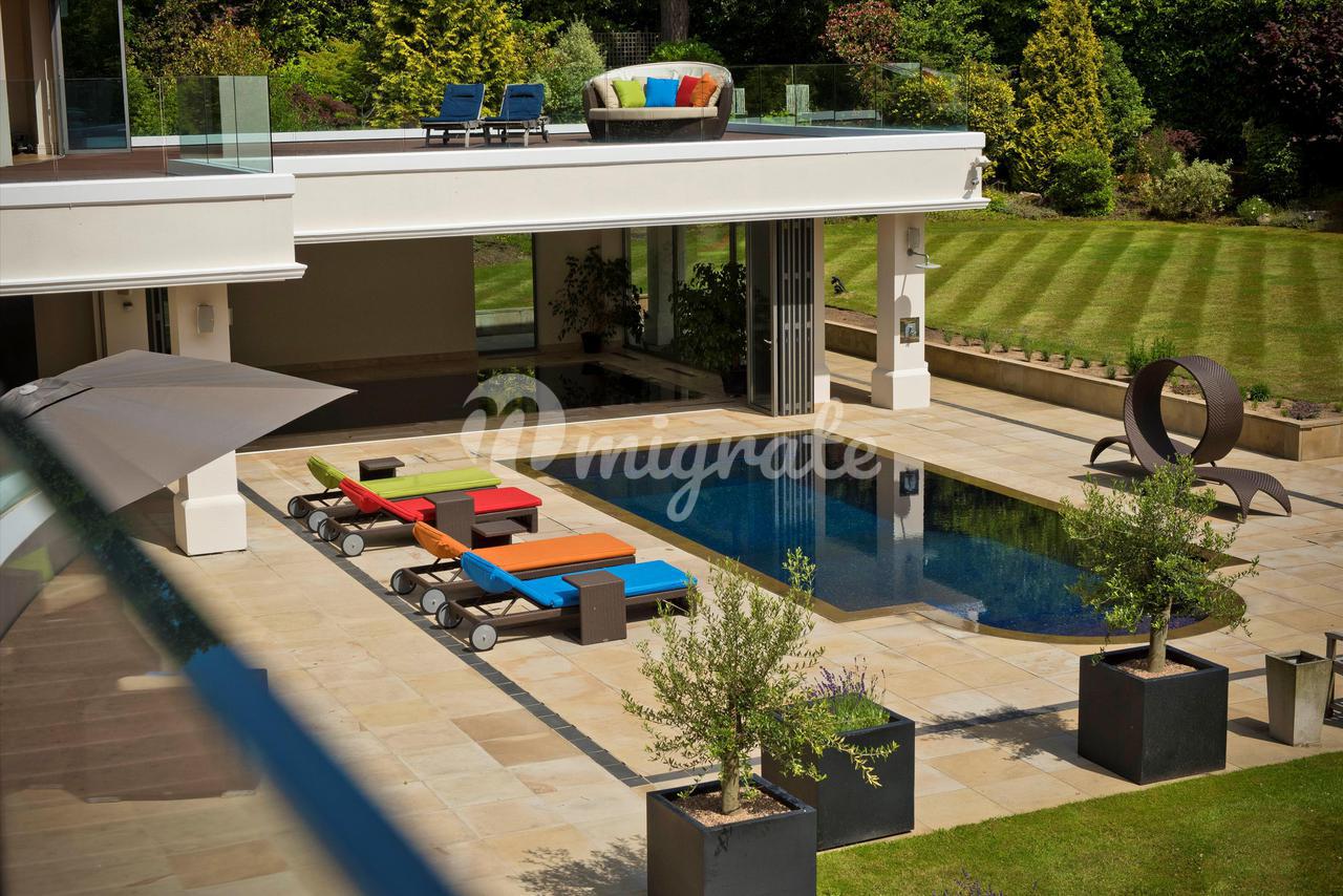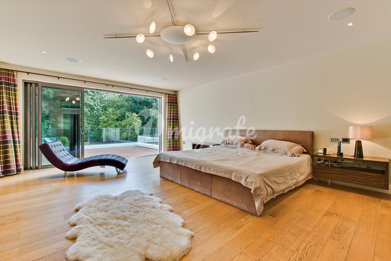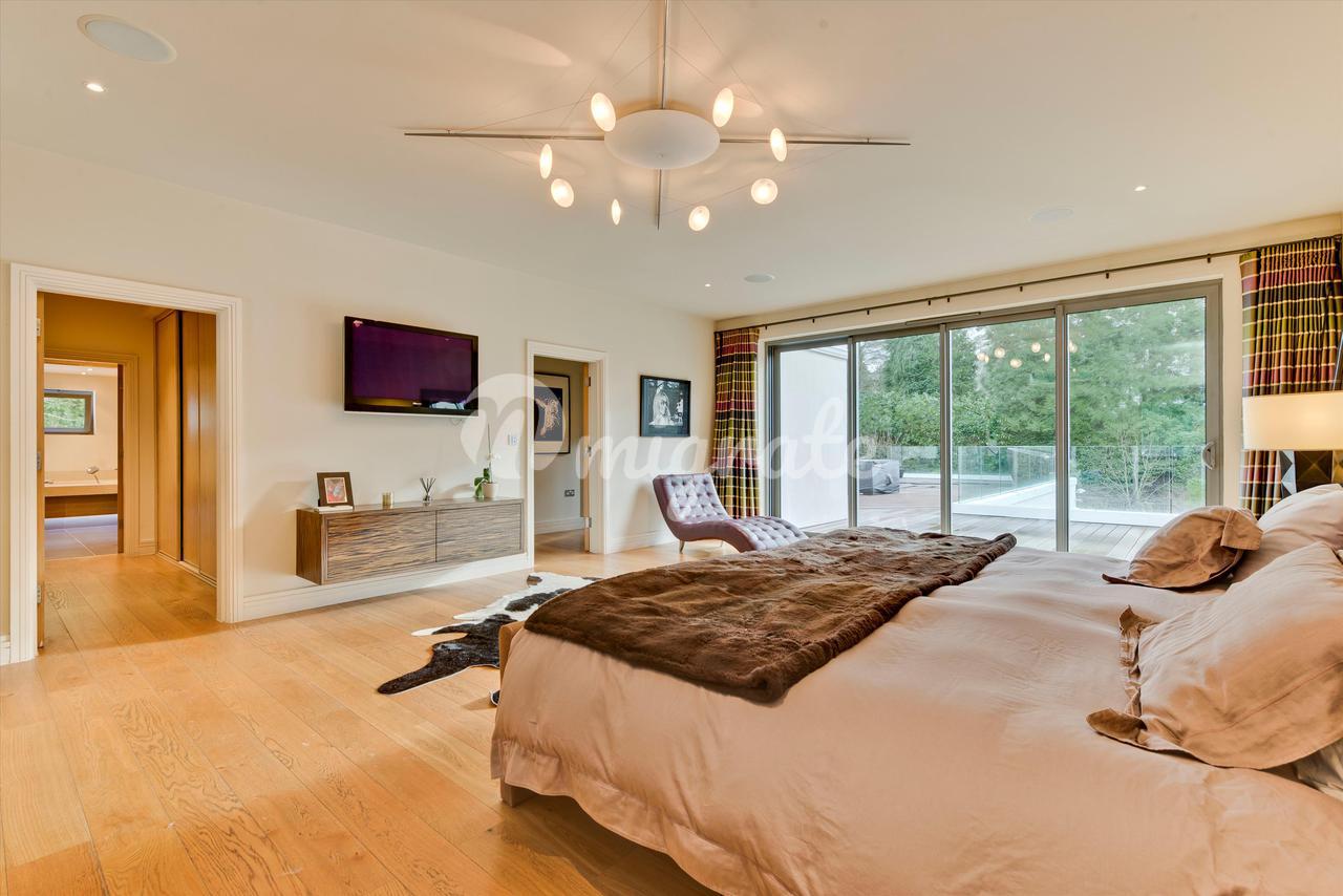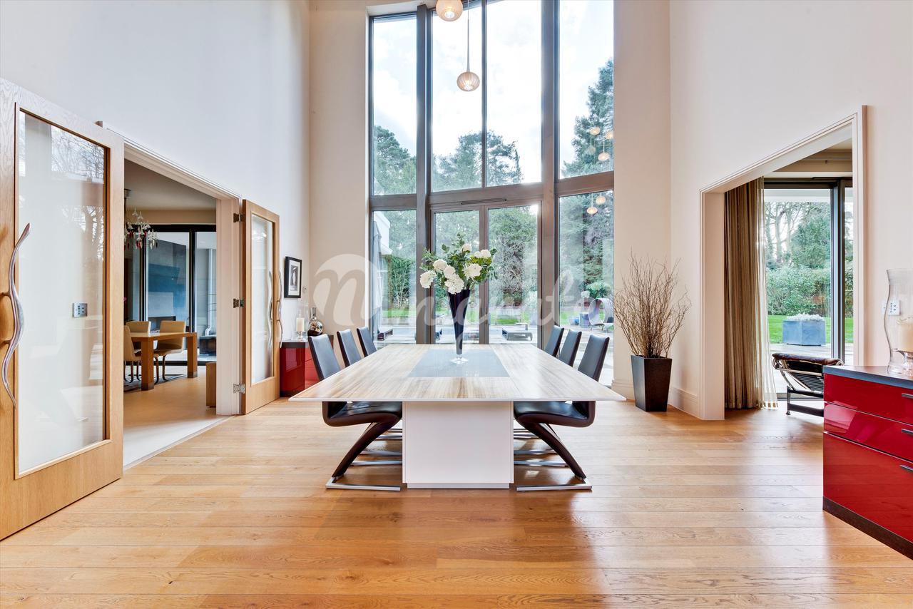 Lion Hill - это современный семейный дом с яркими чертами, построенный нынешним владельцем и расположенный в уединенном месте на территории частного поместья St George's Hill. Недвижимость предлагает гибкие условия проживания на участке с южной стороны, где достаточно места для развлечений. Жилье на первом этаже включает в себя просторную кухню / комнату для завтрака / семейную комнату с двумя центральными островками и раздвижными дверями, ведущими на террасу во внутреннем дворике, идеально подходящую для трапезы на свежем воздухе. Двойные двери ведут из кухни в столовую с поразительным сводчатым потолком, которая затем ведет в гостиную и кино / игровую комнату. В комплексе есть крытый бассейн с парной и раздевалкой, двустворчатые двери ведут на террасу во внутреннем дворике и к открытому бассейну. Наверху находится главная спальня, состоящая из главной спальни, «его и ее» гардеробных и роскошных ванных комнат. Двустворчатые двери открываются на большую террасу, а также в тренажерный зал, откуда открывается вид на террасу и сады. Двухуровневый гостевой люкс имеет выход на заднюю террасу и передний балкон. На первом этаже еще четыре спальни. Лестница ведет вниз из четвертой спальни к отдельному входу, что делает эту комнату идеальной для проживания в Au Pair. Снаружи к фасаду находится просторная подъездная дорога с просторной парковкой, ведущая как к двойному, так и к одиночному гаражу. Красивый ландшафтный сад за домом в основном выложен лужайкой с большой террасой и открытым бассейном с приподнятой террасой с настилом, с которой открывается вид на сад.