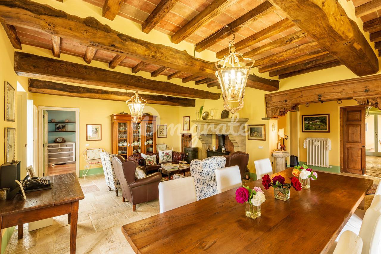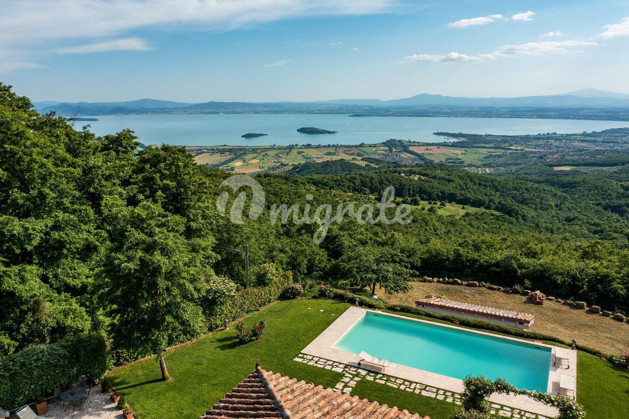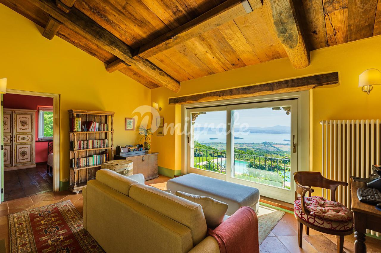 Расположенная на видном месте с видом на озеро Тразимено, эта красивая вилла с пятью спальнями была полностью отреставрирована в 2011 году с использованием переработанных материалов, сохранив свою первоначальную архитектуру и со всеми удобствами современного дома. Каменные полы, спасенные от церкви, старинные двери и красивые балки украшают интерьер, в то время как солнечные панели, фотогальваническая система и отопление на гранулах присвоили вилле класс энергопотребления категории B. На первом этаже есть просторная гостиная, большая кухня с открытым камином и обеденной зоной, кладовая и студия/спальня с ванной комнатой, а на первом этаже есть гостиная с огромным панорамным окном, обрамляющим вид на озеро, а также еще четыре спальни и три спальни. ванные комнаты. Существует также лимонайя около 40 кв м для хранения или может быть закончена как гостевая пристройка, если это необходимо. Продажа также включает в себя разрешение на строительство еще 270 кв.м. на этом участке. 1 гектар земли, включенный в продажу, состоит из сада и леса, с бассейном и беседкой, покрытой глициниями, идеально расположенными, чтобы получить лучший из великолепных видов. Также имеется крытая дровяная печь для хлеба и пиццы.
