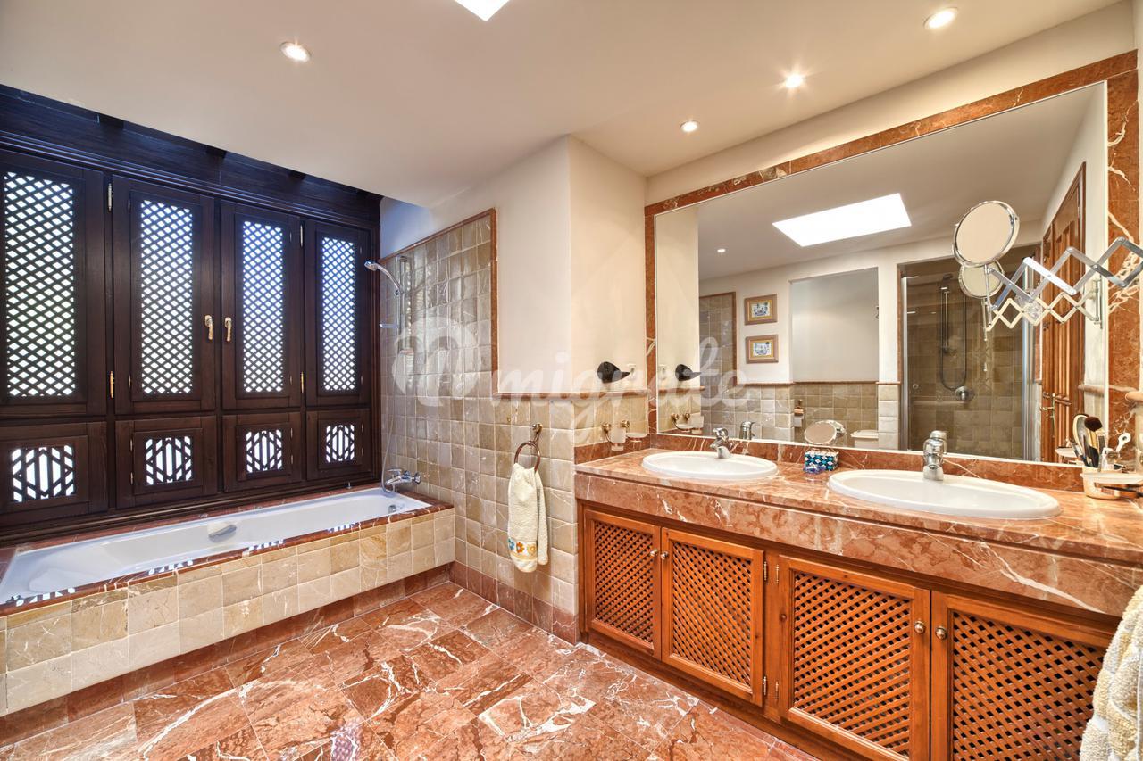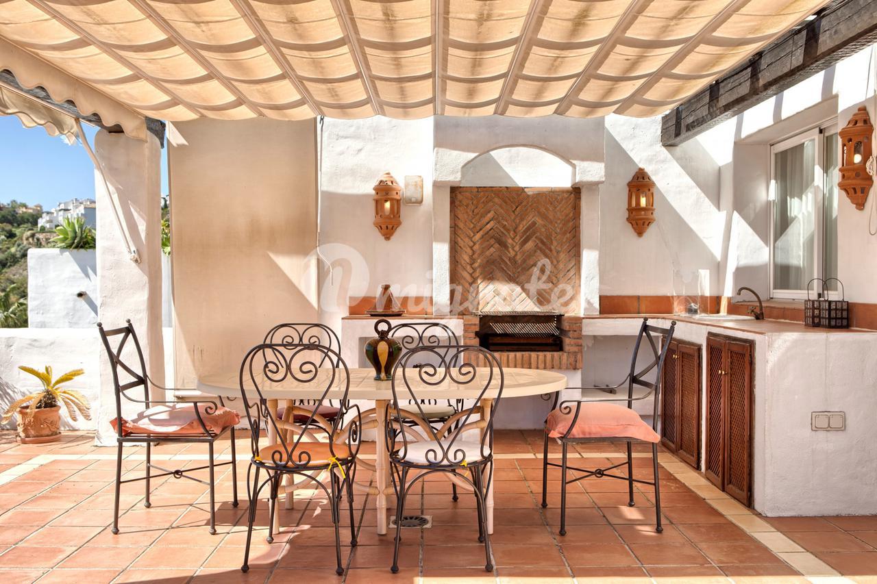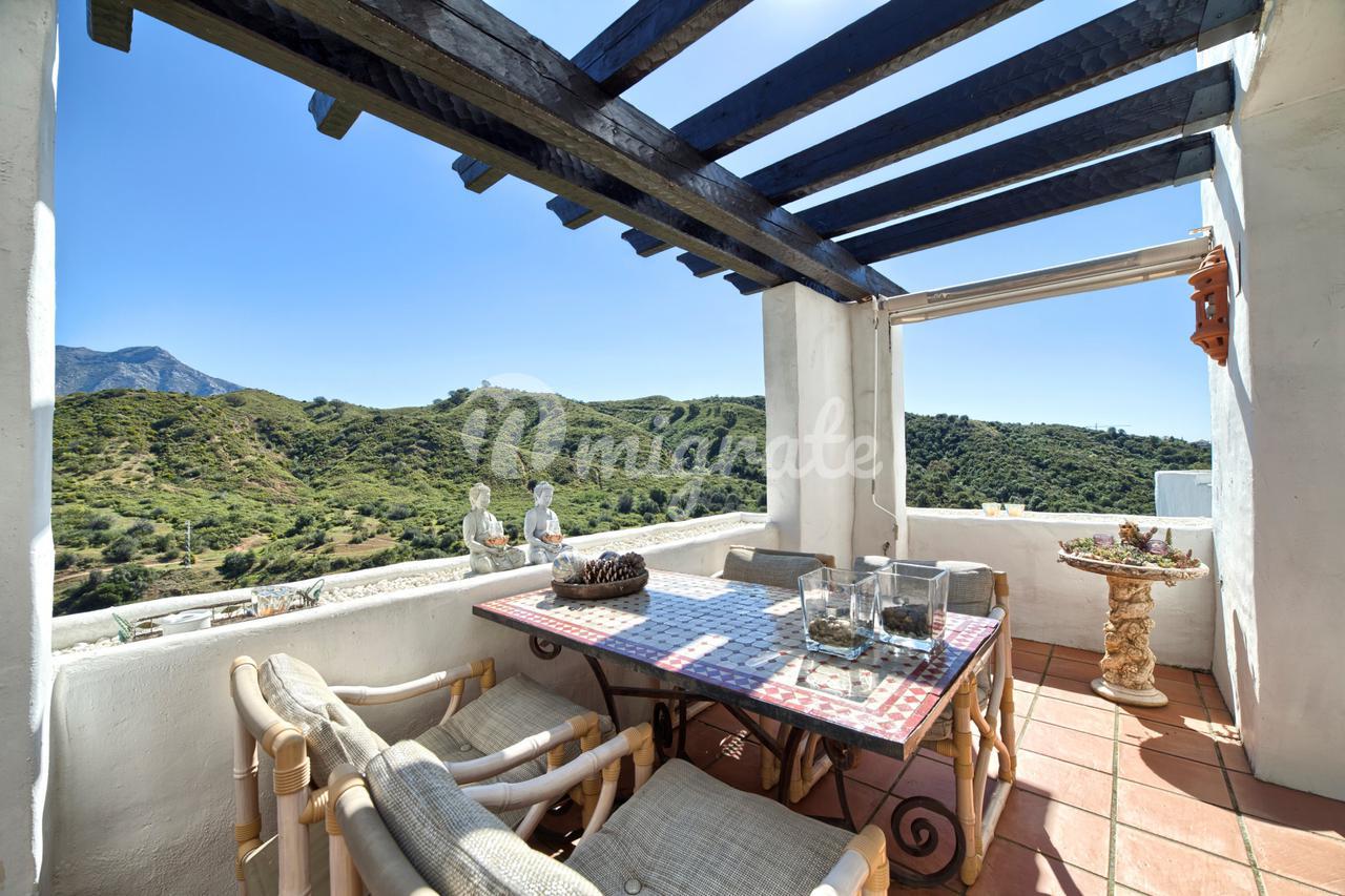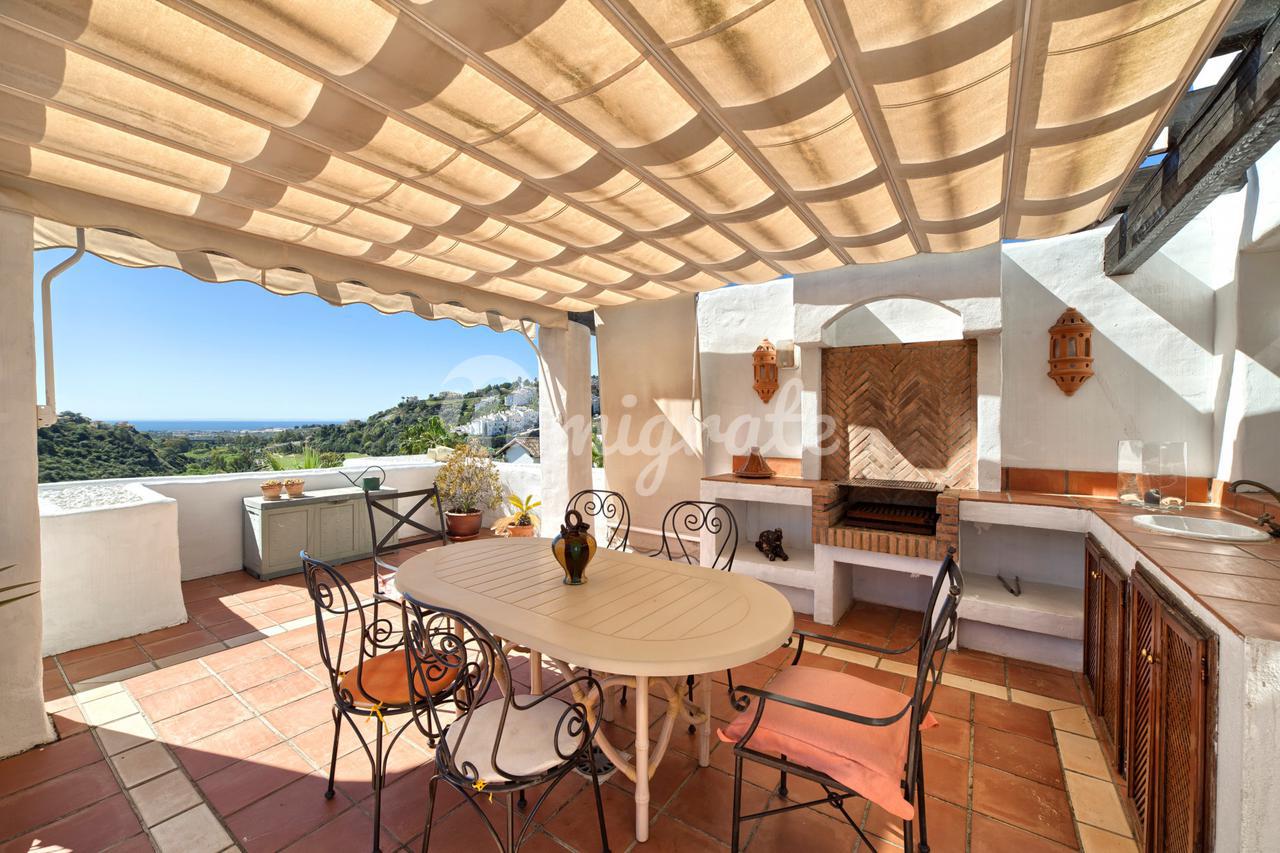 Эти апартаменты в пентхаусе с южной стороны расположены в Лас-Ломас-де-ла-Кинта, жилом комплексе, построенном в 2000 году, с большим бассейном и красиво ухоженными садами с душевыми и раздевалкой с туалетами. Просторный пентхаус с фантастическим видом на море, гольф и горы. Есть большая гостиная, полностью оборудованная кухня, прямой доступ к нескольким просторным террасам с видами и двум спальням для гостей. В главной спальне есть ванная комната, расположенная на верхнем этаже, где есть также большая терраса с барбекю и джакузи. Имеет одно место в гараже, одно кладовое помещение, мраморные полы, кондиционер с подогревом, полы с подогревом, сигнализация и спутниковое телевидение.