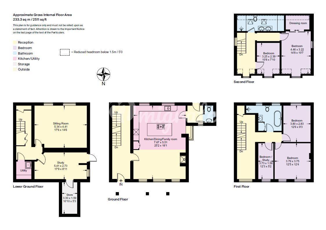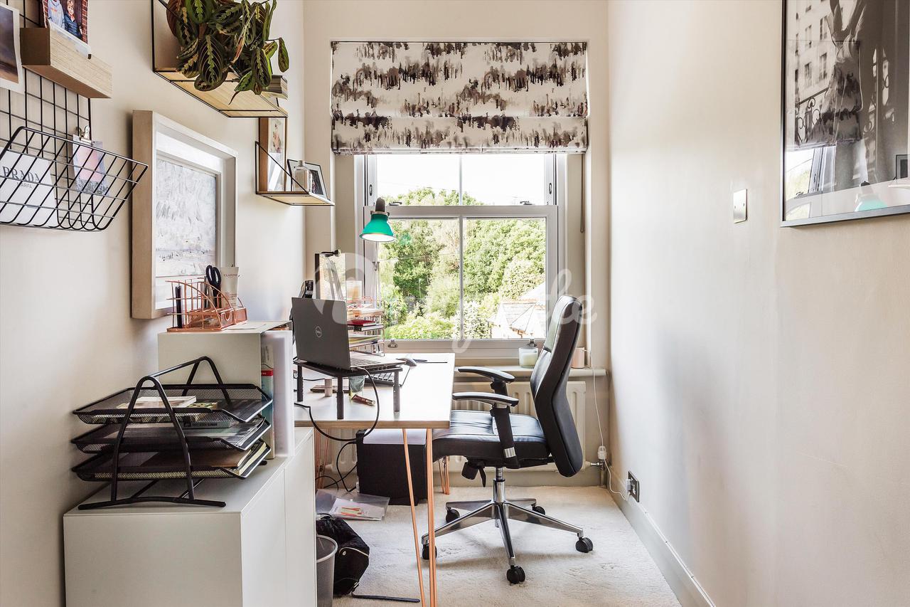 На втором этаже на двух этажах расположены 4 спальни с небольшой 5-й спальней, которая в настоящее время используется в качестве кабинета с панорамным видом на пустошь.