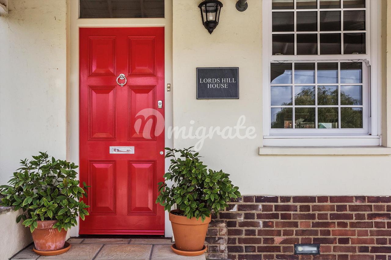 К дому можно подъехать со стороны Лордс-Хилл-Коммон с парковкой на две машины и ступенями, ведущими на веранду с видом вдаль. Сад, выходящий на южную сторону, находится в задней части дома и преимущественно вымощен камнем.