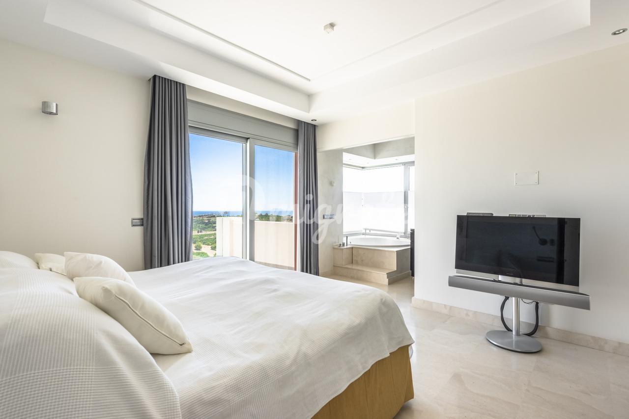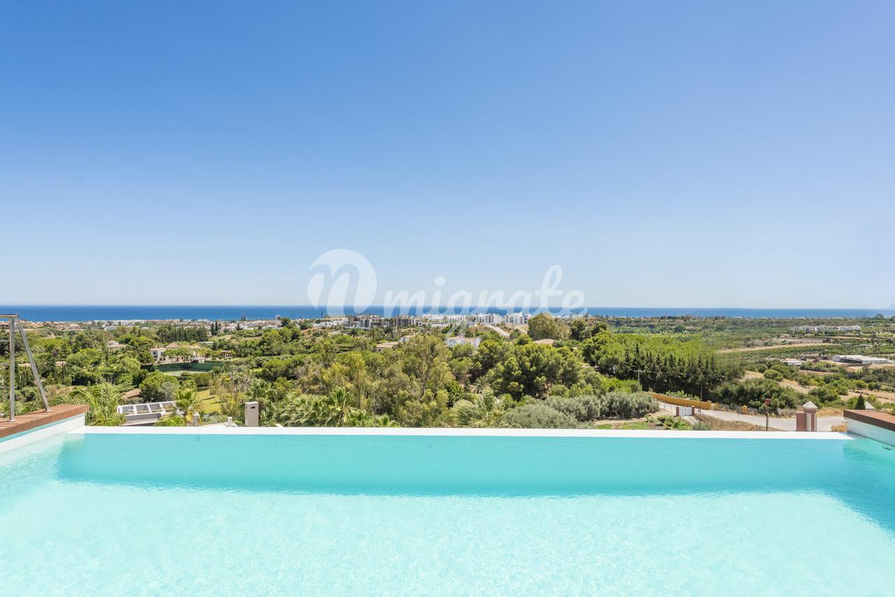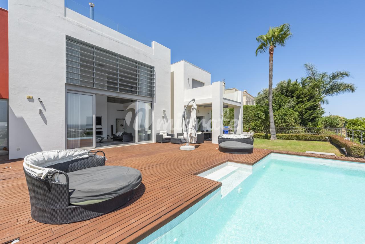 Вилла ориентирована на юг и имеет потрясающий вид на море, поле для гольфа, озеро, отель, Африку и Гибралтар.
