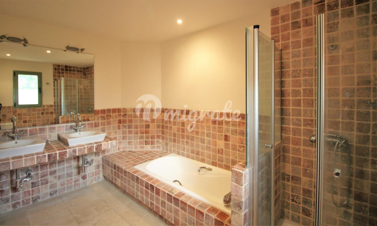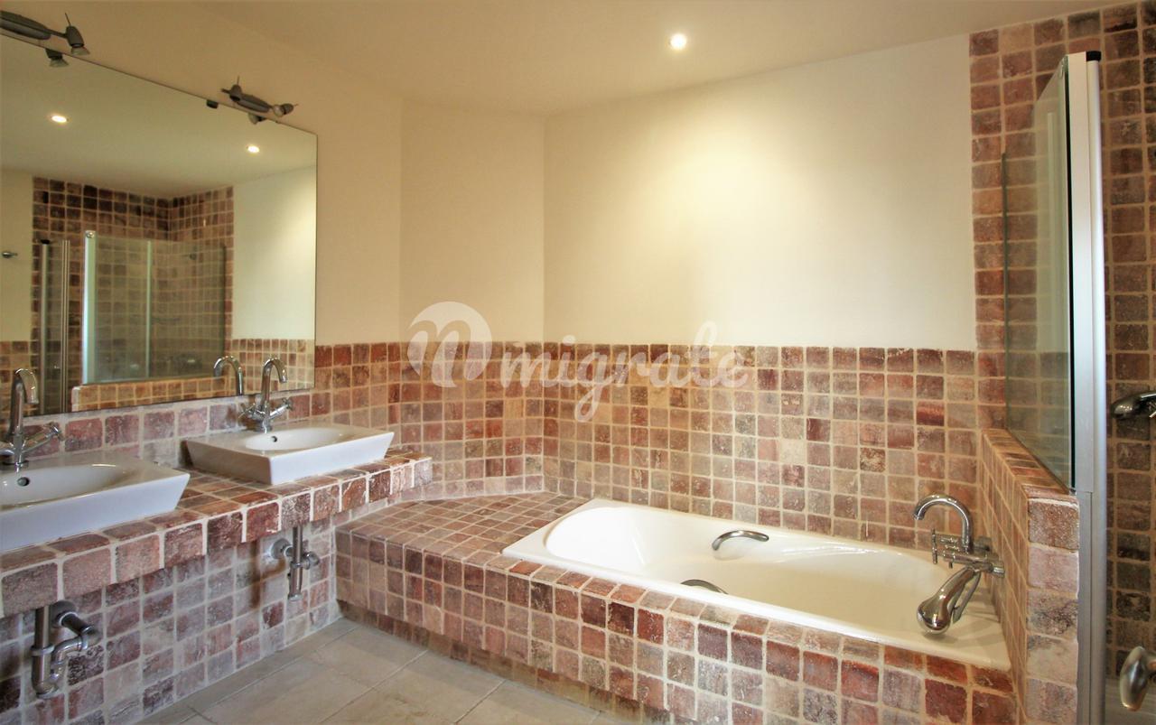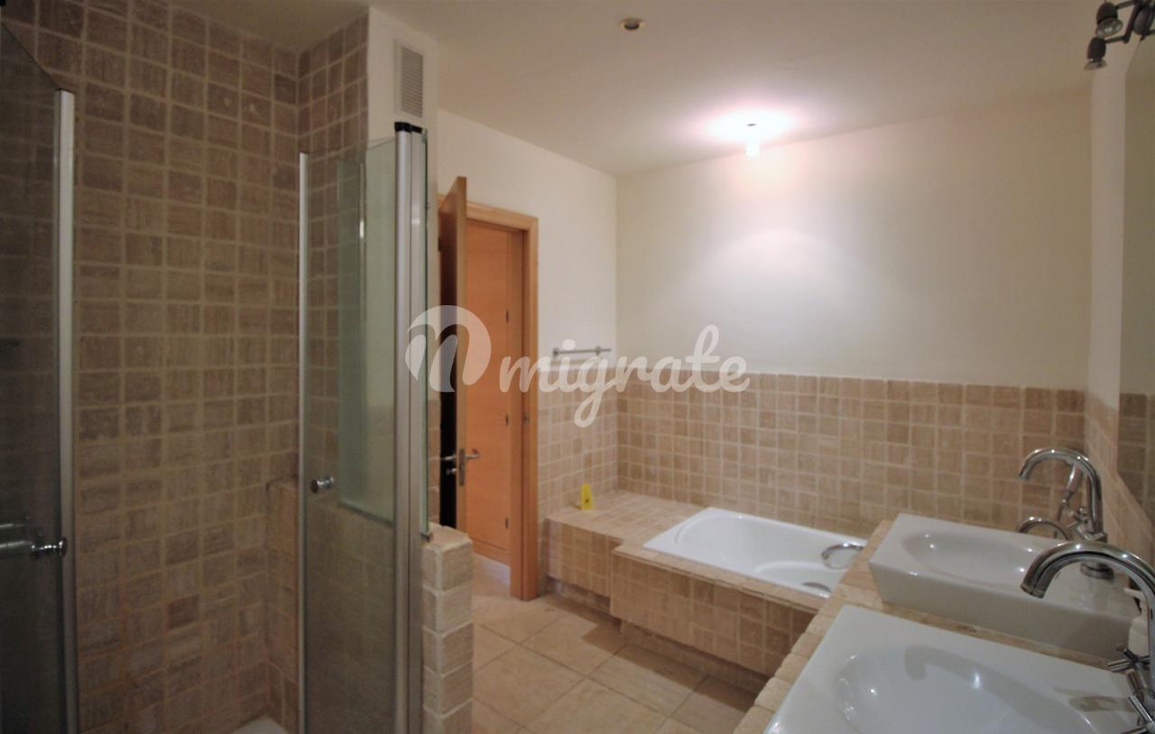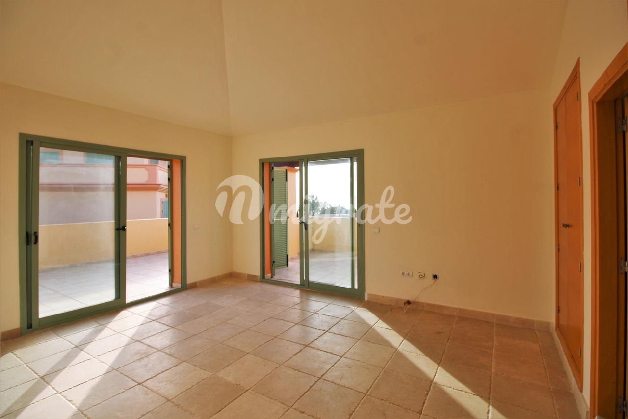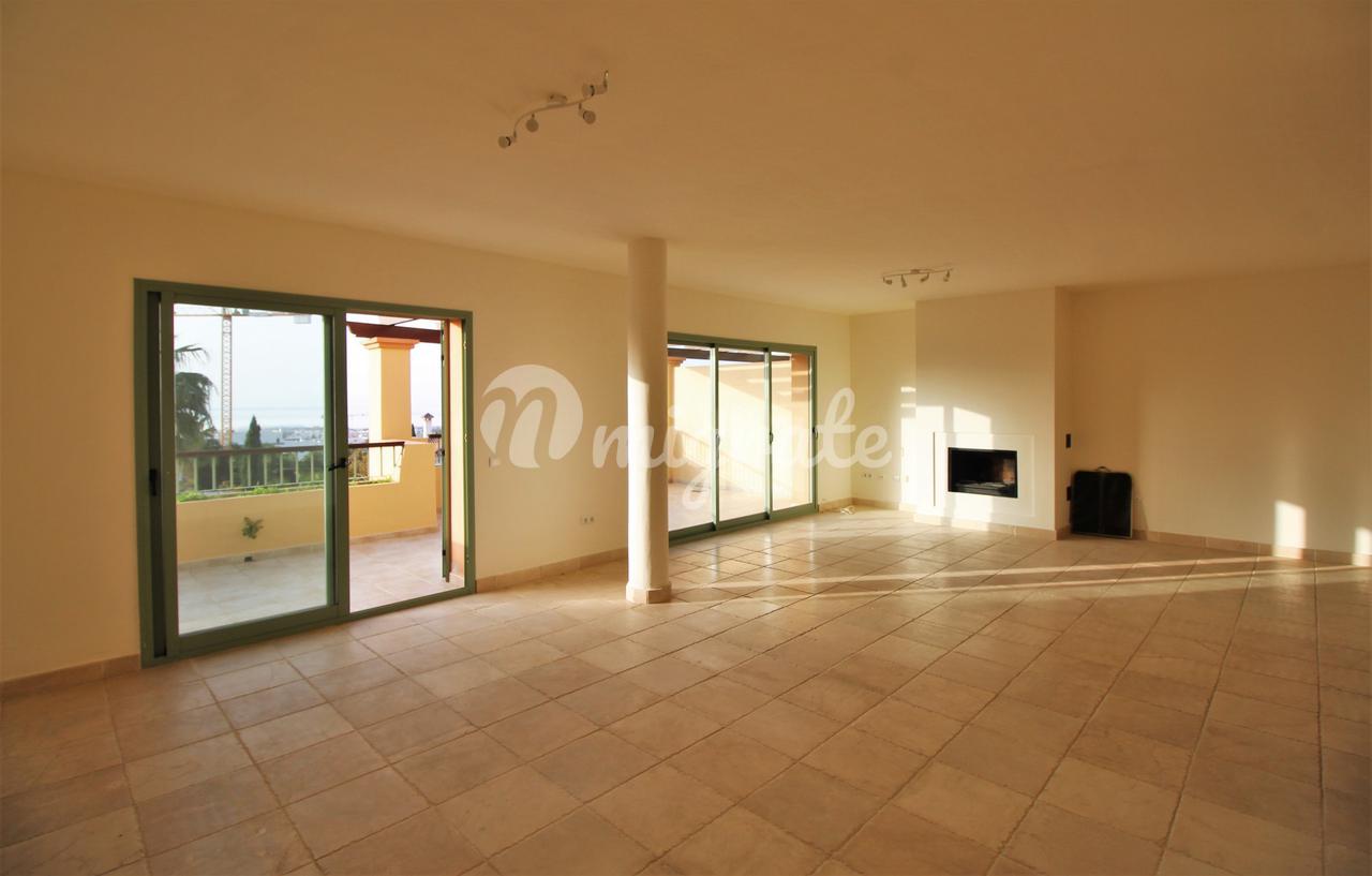 Жилье этого углового двухуровневого пентхауса состоит из прихожей с полностью оборудованной кухней с уголком для завтрака слева и гостиной с камином справа. Гостиная имеет прямой выход на открытую террасу с панорамным видом и видом на море. Имеется спальня со встроенными шкафами и отдельная ванная комната с ванной, душем и двойной раковиной. На этом уровне находится еще одна спальня с ванной комнатой.