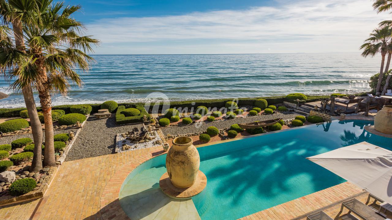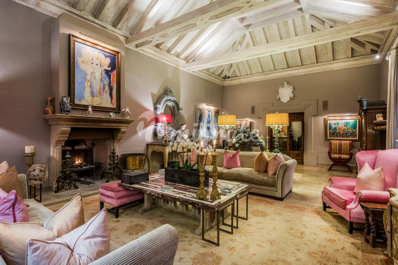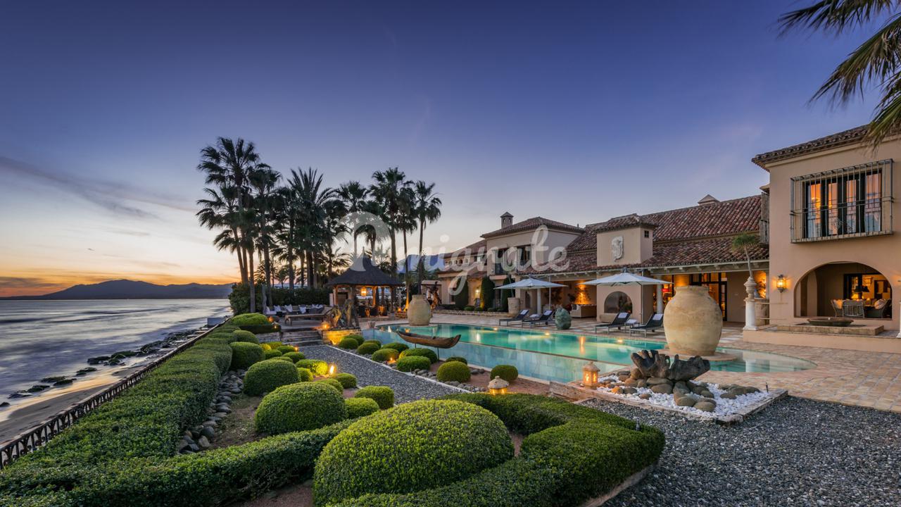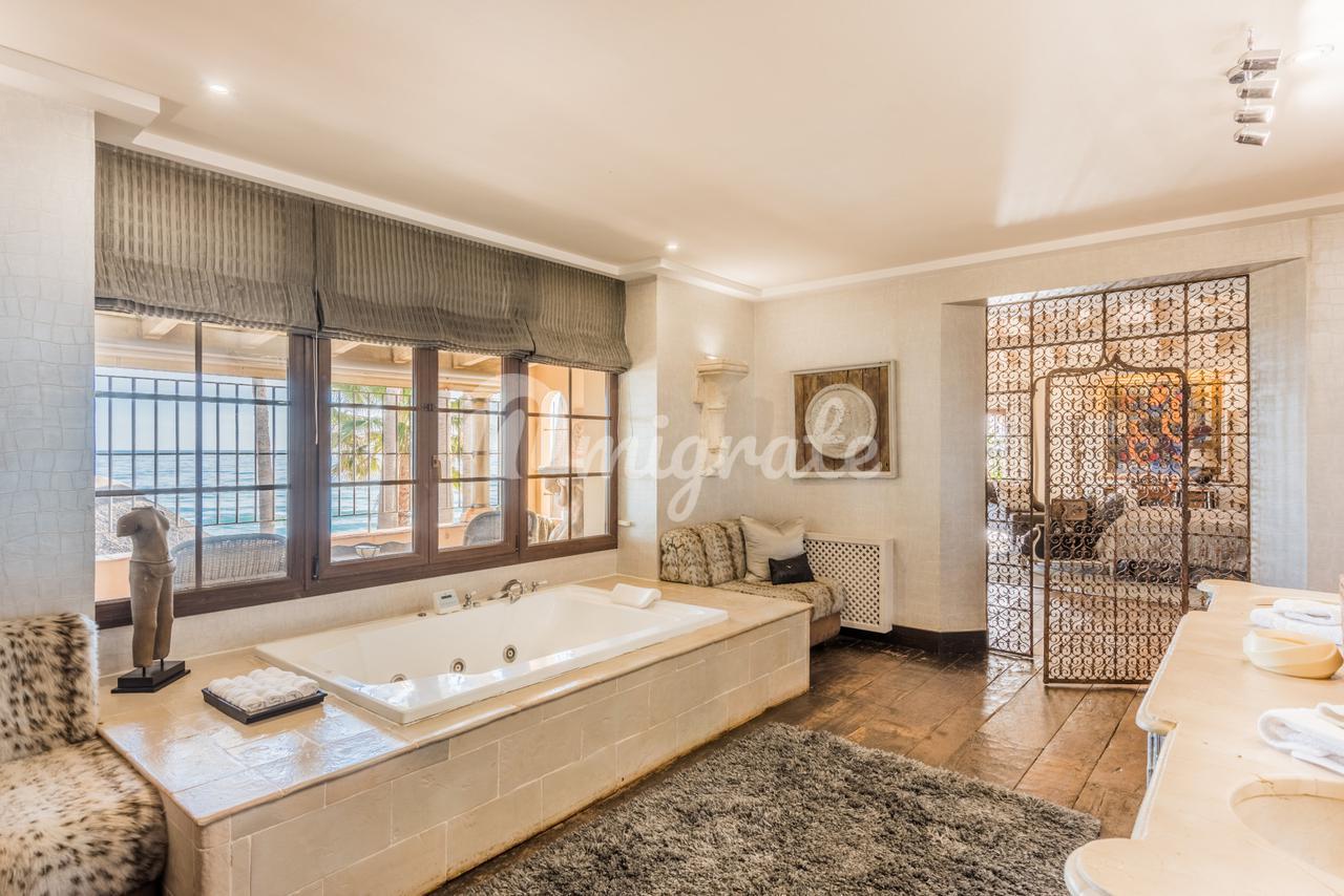 Великолепное поместье на берегу моря в популярном жилом районе Лос-Монтерос. Расположен в 6,5 км. от центра города Марбелья, 16 км. от Пуэрто Банус, 2,7 км. до Королевского теннисного клуба и 2,6 км. до гольф-клуба и загородного клуба Марбельи. Территория охраняется круглосуточной охраной. Уникальная возможность приобрести красиво оформленную недвижимость на берегу моря с прямым доступом к пляжу. В отеле есть большие комнаты и различные внутренние и внешние зоны для развлечений, такие как зона отдыха с террасой у бассейна, площадка для барбекю с крытой обеденной зоной и дополнительные зоны отдыха с видом на море. Первый этаж состоит из просторной гостиной с деревянными потолочными балками двойной высоты и камином, ведущим на крытую террасу с зонами отдыха и камином, где можно наслаждаться жизнью на свежем воздухе в холодные месяцы; неформальная гостиная с камином и деревянными потолочными балками; неформальная столовая; зимняя столовая; полностью оборудованная кухня с кладовой и холодильной камерой; гостевая спальня с ванной и душевой кабиной, гардеробной и небольшим балконом; второй гостевой спальный сьют с балконом, гардеробной и выходом к бассейну; 2-комнатная квартира для персонала с отдельным входом; прачечная; третья спальня для гостей (в настоящее время используется как офис) и два гаража на 3 машины каждый завершают этот уровень.