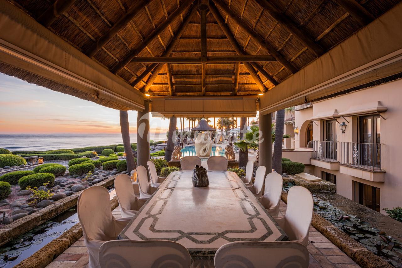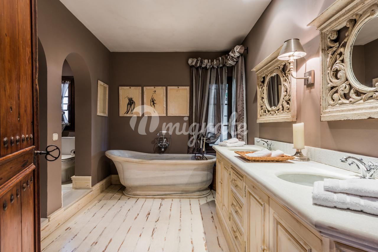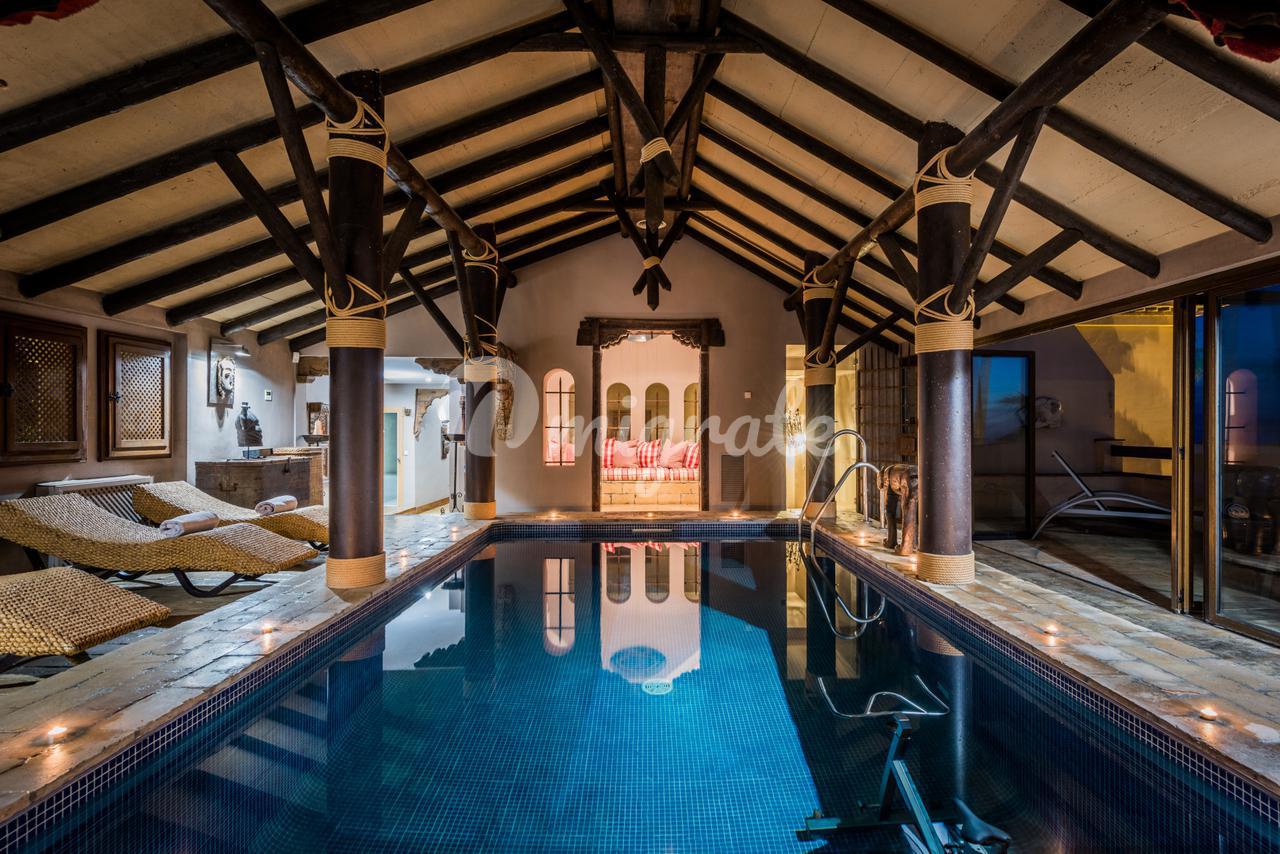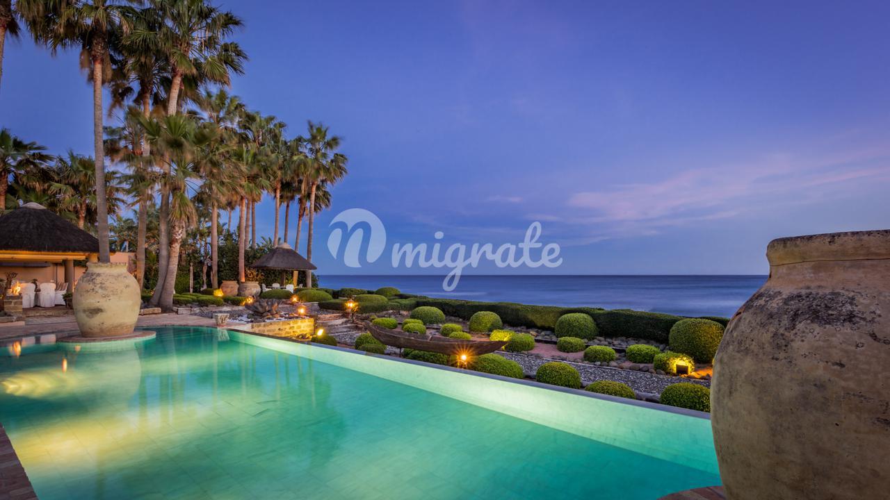 Великолепное поместье на берегу моря в популярном жилом районе Лос-Монтерос. Расположен в 6,5 км. от центра города Марбелья, 16 км. от Пуэрто Банус, 2,7 км. до Королевского теннисного клуба и 2,6 км. до гольф-клуба и загородного клуба Марбельи. Территория охраняется круглосуточной охраной. Уникальная возможность приобрести красиво оформленную недвижимость на берегу моря с прямым доступом к пляжу. В отеле есть большие комнаты и различные внутренние и внешние зоны для развлечений, такие как зона отдыха с террасой у бассейна, площадка для барбекю с крытой обеденной зоной и дополнительные зоны отдыха с видом на море. Первый этаж состоит из просторной гостиной с деревянными потолочными балками двойной высоты и камином, ведущим на крытую террасу с зонами отдыха и камином, где можно наслаждаться жизнью на свежем воздухе в холодные месяцы; неформальная гостиная с камином и деревянными потолочными балками; неформальная столовая; зимняя столовая; полностью оборудованная кухня с кладовой и холодильной камерой; гостевая спальня с ванной и душевой кабиной, гардеробной и небольшим балконом; второй гостевой спальный сьют с балконом, гардеробной и выходом к бассейну; 2-комнатная квартира для персонала с отдельным входом; прачечная; третья спальня для гостей (в настоящее время используется как офис) и два гаража на 3 машины каждый завершают этот уровень.