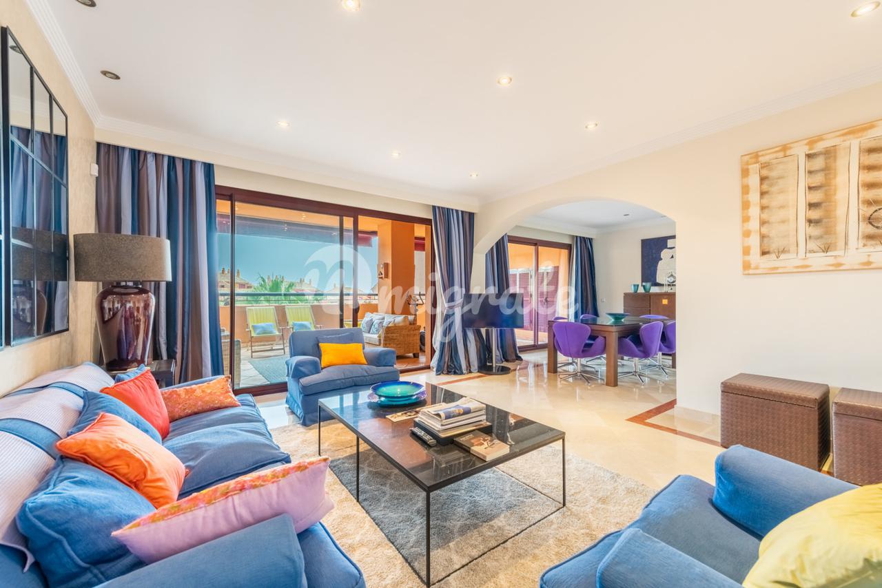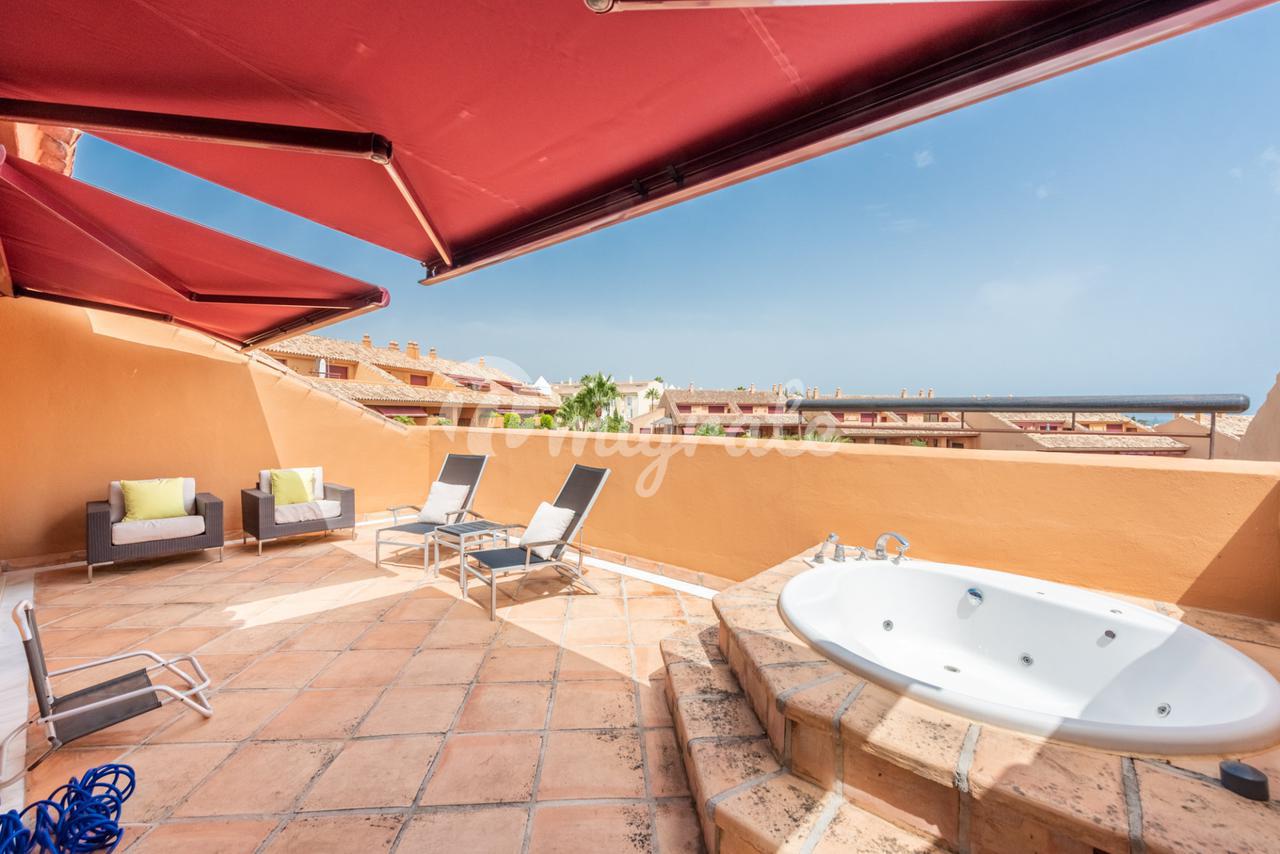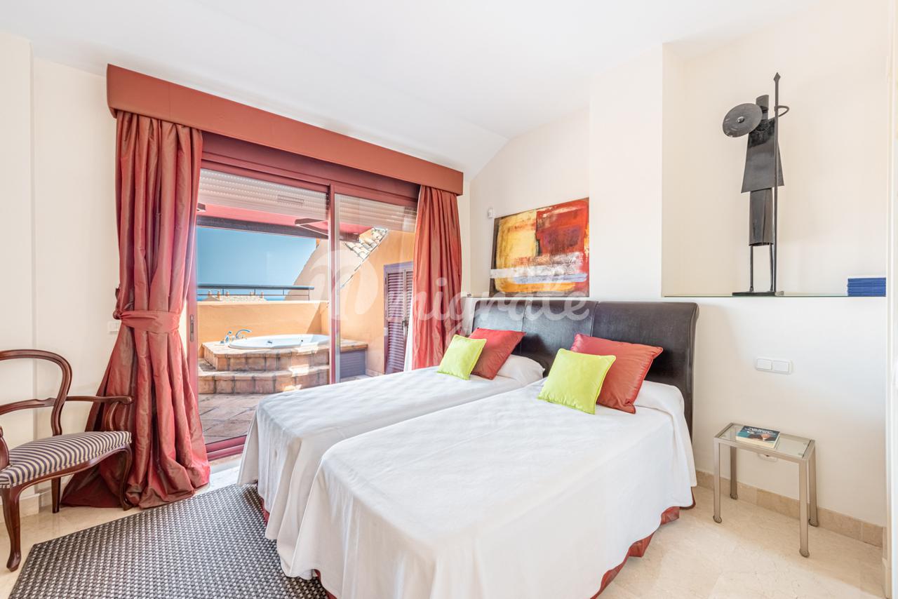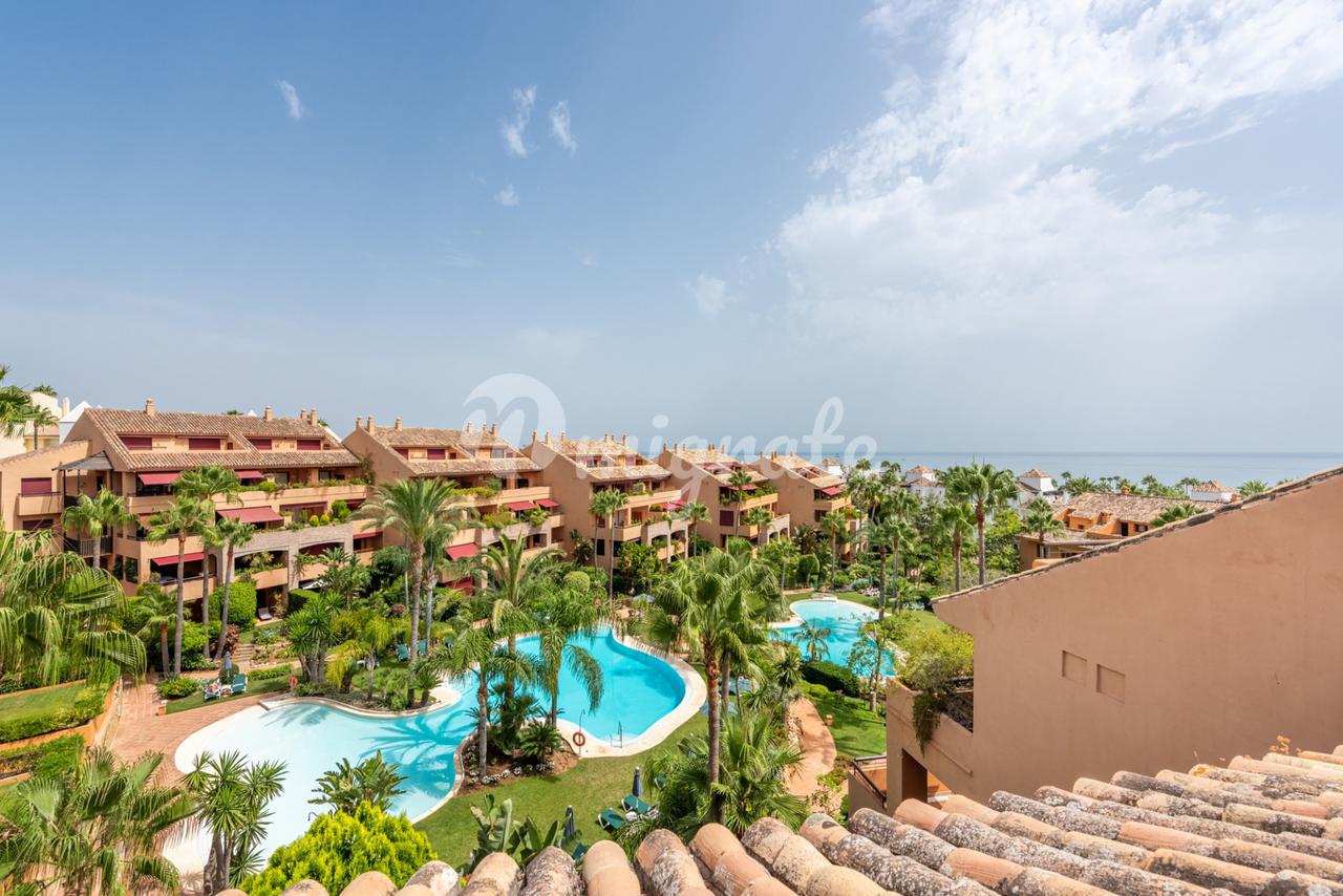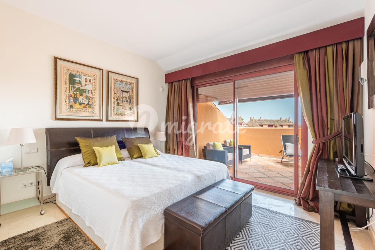 Двухуровневый пентхаус с юго-восточной ориентацией, расположенный в одном из лучших жилых комплексов Баия-де-Марбелья, эксклюзивном жилом районе, отличающемся спокойствием и всего в нескольких метрах от одного из лучших пляжей Марбельи. Комплекс полностью огорожен и охраняется 24 часа в сутки. Пышные тропические сады окружают 5 бассейнов комплекса, один из которых подогревается.