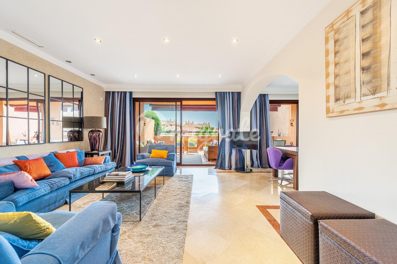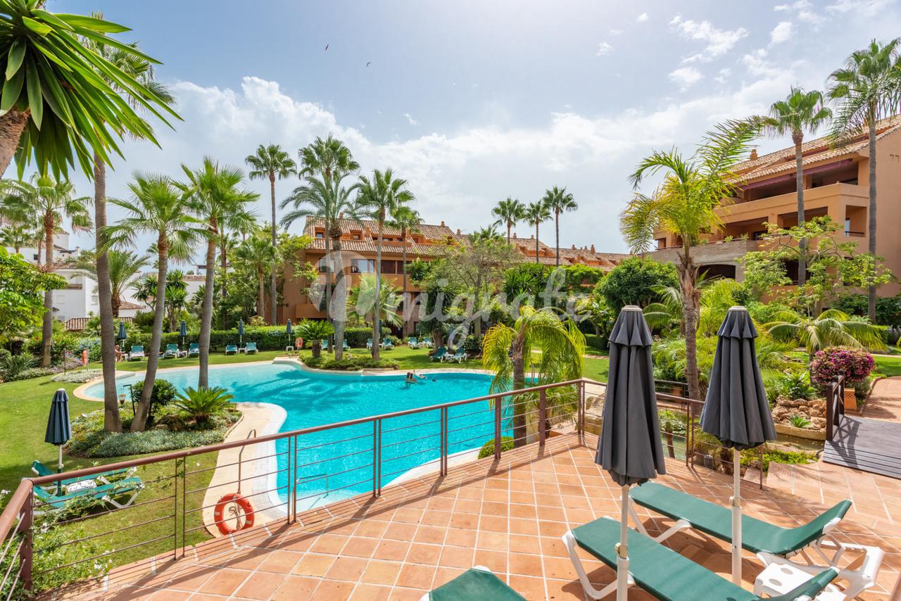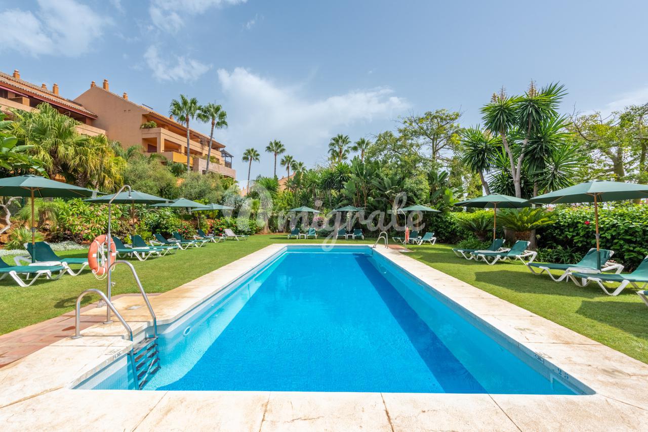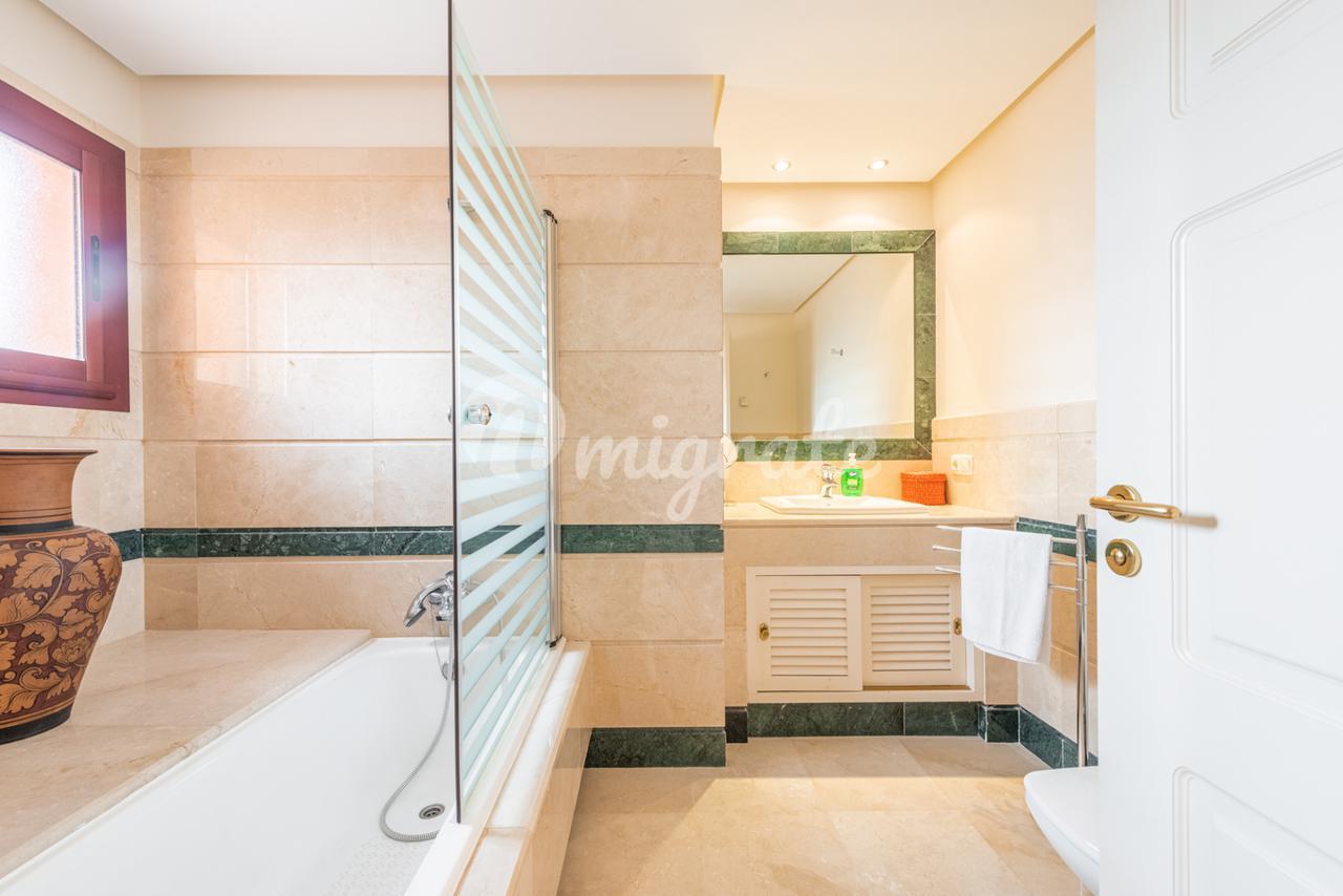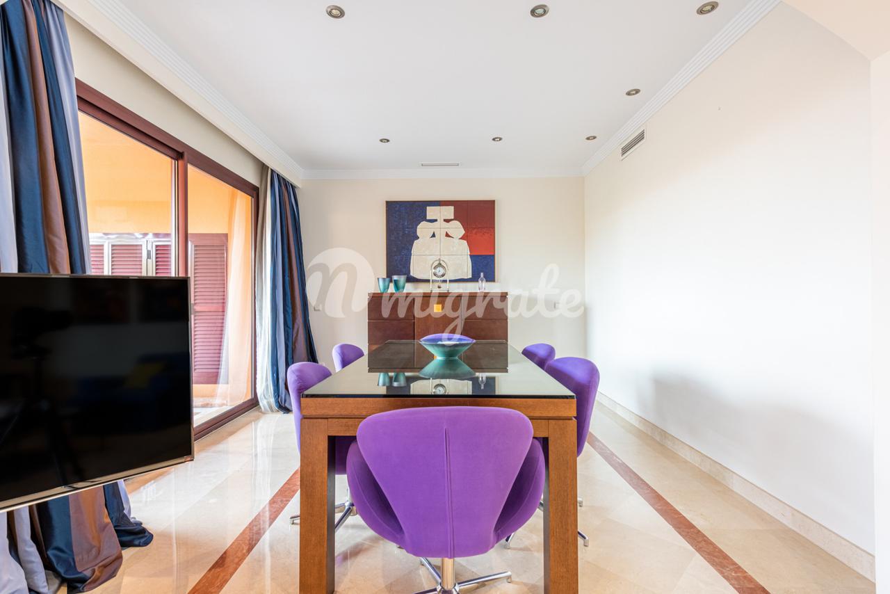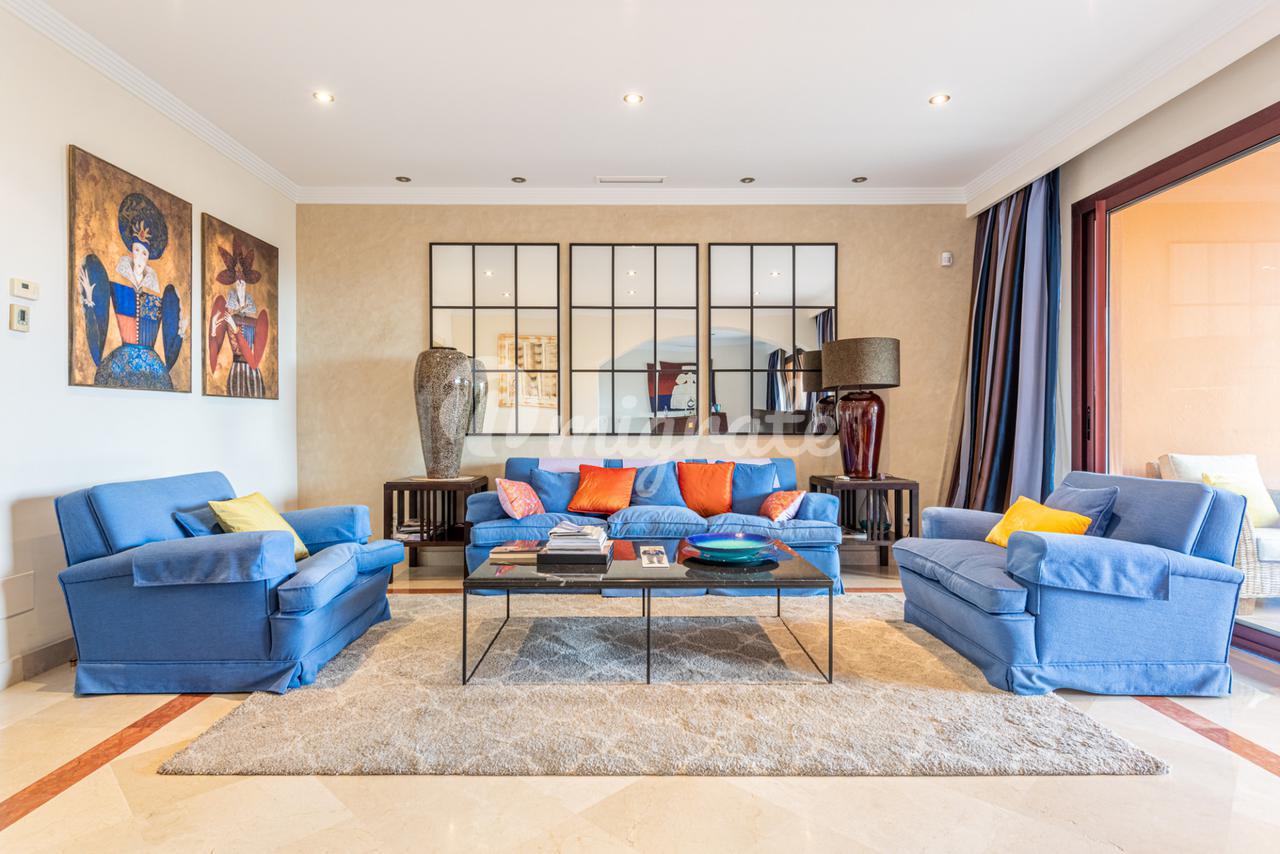 Двухуровневый пентхаус с юго-восточной ориентацией, расположенный в одном из лучших жилых комплексов Баия-де-Марбелья, эксклюзивном жилом районе, отличающемся спокойствием и всего в нескольких метрах от одного из лучших пляжей Марбельи. Комплекс полностью огорожен и охраняется 24 часа в сутки. Пышные тропические сады окружают 5 бассейнов комплекса, один из которых подогревается.
