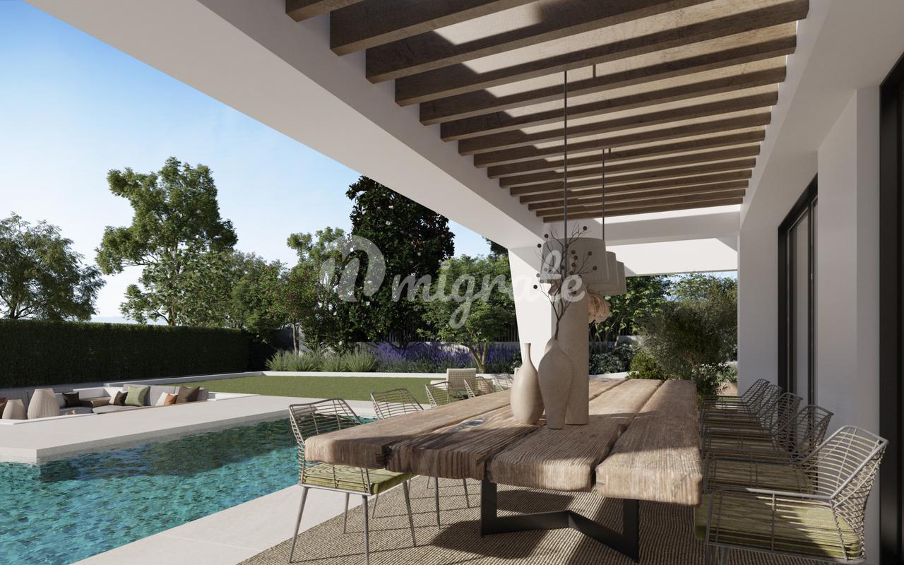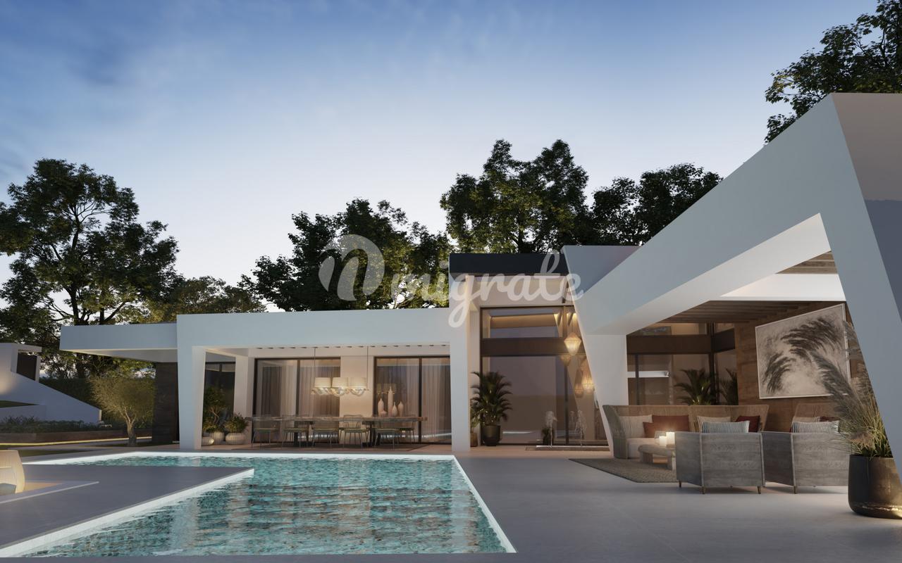 Эта вилла построена на участке площадью 1135 м2. Он будет иметь четыре спальни с ванными комнатами на первом этаже, что делает его распределение практичным и удобным. Существует также гостевой туалет и большое пространство, объединяющее гостиную, столовую и кухню, с большим центральным островом, все с выходом через большие окна на красивую террасу площадью около 180 м2 с садом и Г-образным бассейном. Зона отдыха на свежем воздухе с зимним огнем порадует тех, кто хочет насладиться уютным домом с семьей и друзьями. Органический огород является еще одной достопримечательностью этого дома, который имеет естественную и теплую отделку, придающую изысканность и авангардизм.