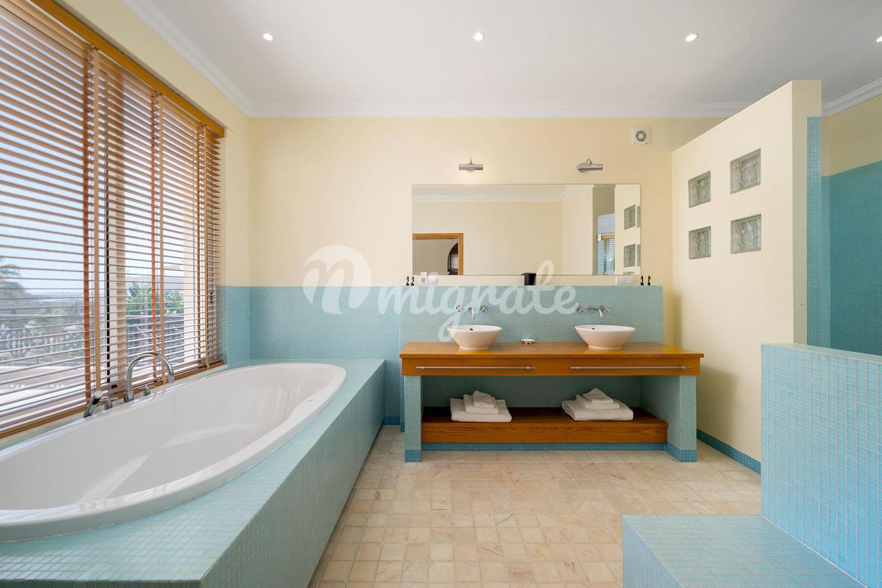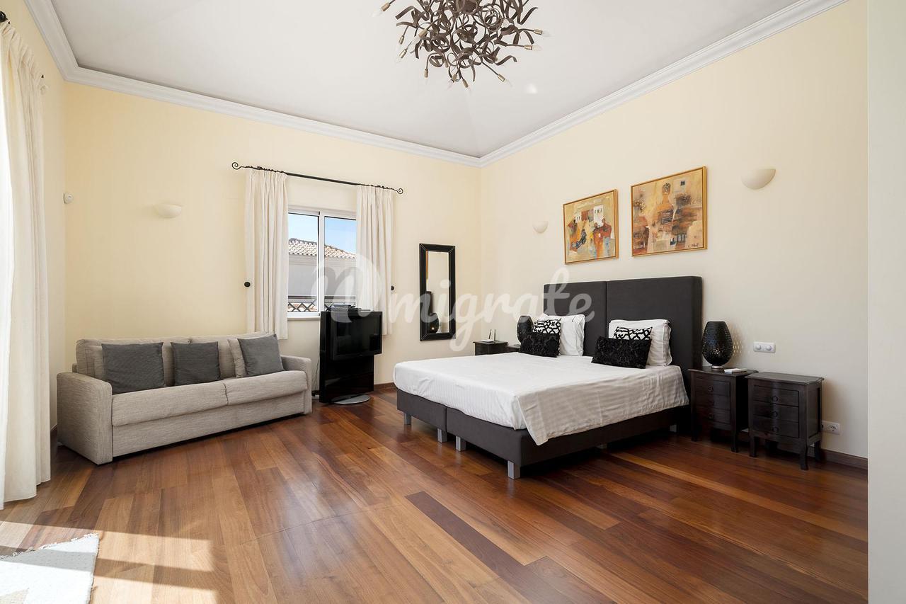 Первый этаж состоит из прихожей, гардеробной, просторной гостиной, отдельной комнаты с телевизором, формальной столовой, полностью оборудованной кухни Miele с островом, которые выходят на крытую террасу с видом на бассейн с живописным видом. Также на этом этаже есть подсобное помещение и две спальни. Гараж в настоящее время используется как игровая комната и имеет выход к бассейну. Существует также лифтовая шахта для тех, кто предпочитает ее установить. На втором этаже есть 2 просторные спальни с ванными комнатами, главная спальня включает в себя гардеробную и большую частную террасу с видом на Риа Формоза и красивые окрестности. Эта терраса также выходит на крышу.