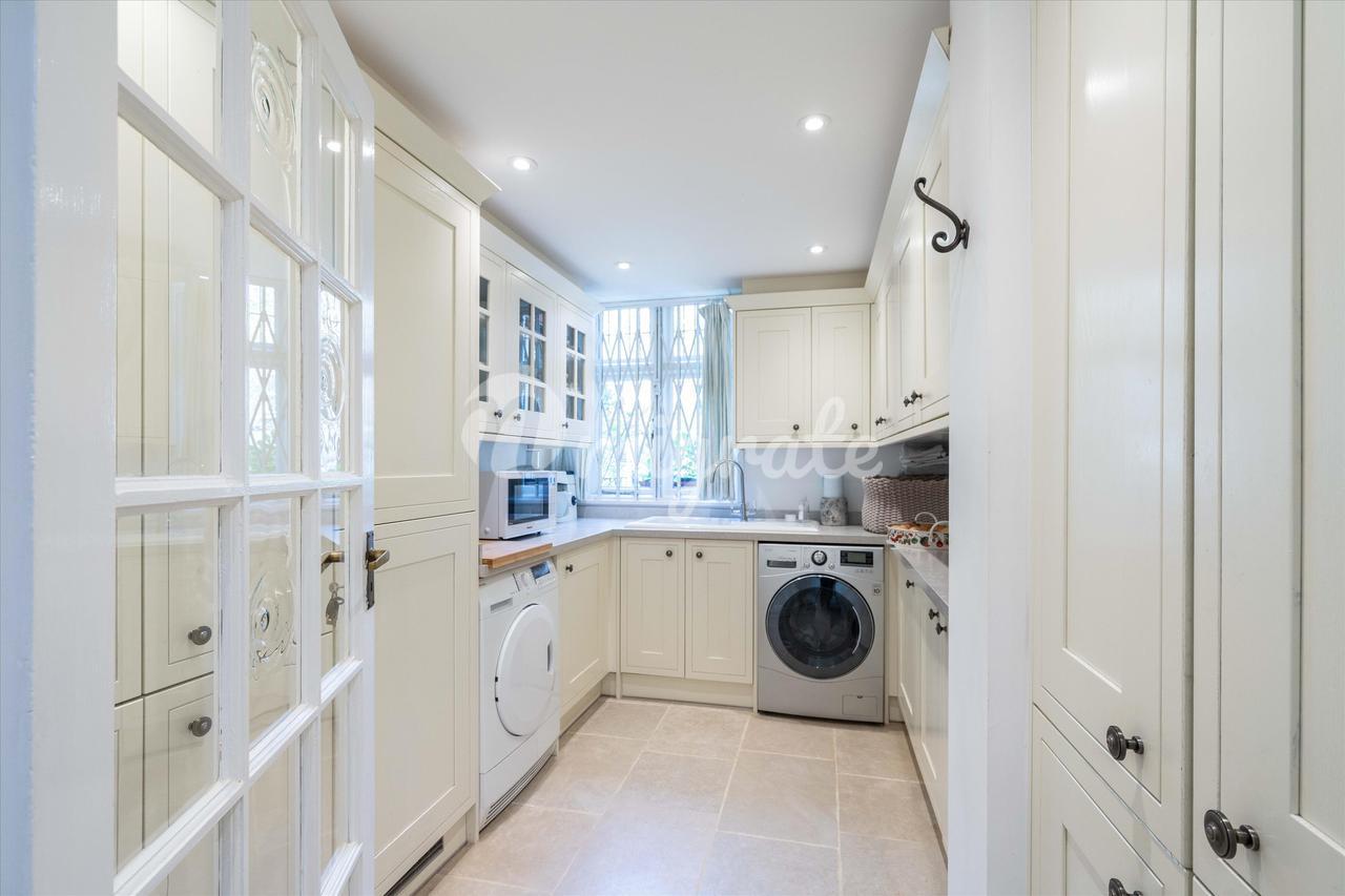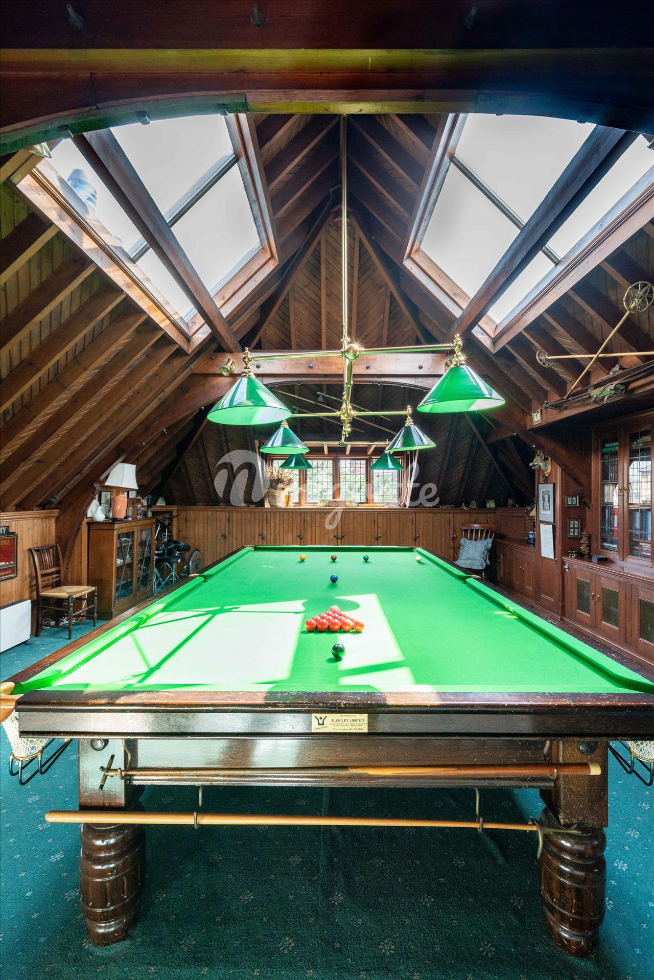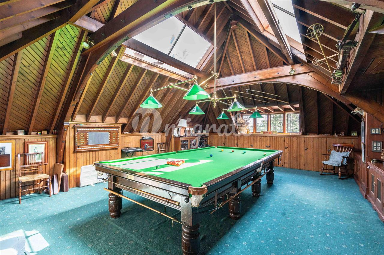 Наверху находятся шесть хорошо спланированных, светлых и просторных спален с двумя ванными комнатами, а на верхнем этаже находится невероятно просторная бильярдная со сводчатым потолком.