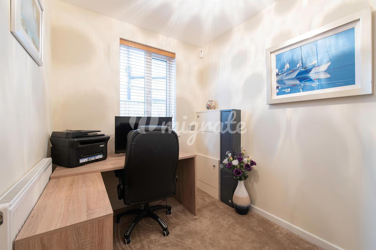 Кухня/комната для завтрака находится в задней части дома с полезной утилитой/туалетом и современной застекленной садовой комнатой, которая выходит на сад.