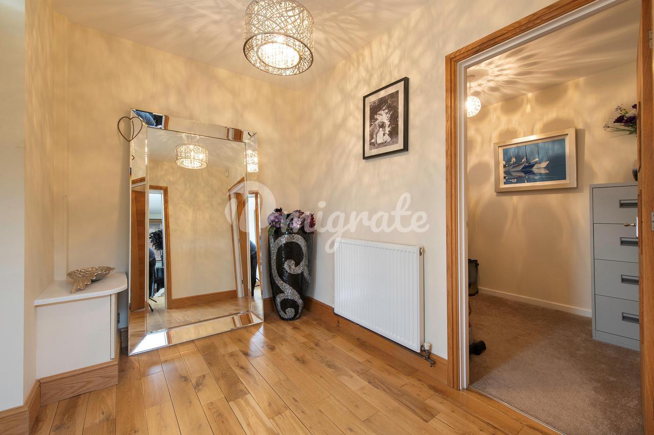 Спереди есть парковка во дворе для нескольких автомобилей на подъездной дорожке, а сзади сад в основном разбит на лужайку с большим внутренним двориком, который отлично подходит для развлечений.
