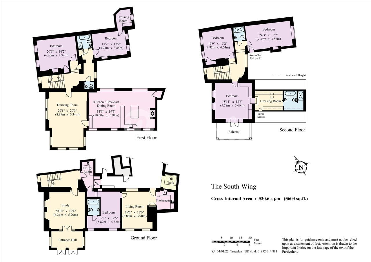 Южное крыло имеет собственный вход со стороны здания, открывающийся в большую и элегантно обставленную прихожую/кабинет перед лестницей, ведущей в главные жилые комнаты. В Южном крыле находится отдельная пристройка/автономная квартира (первоначально известная как пекарня) на первом этаже, состоящая из спальни с двуспальной кроватью с ванной комнатой и прилегающей кухни/столовой/гостиной. Квартира имеет собственный выход в центральный двор Усадьбы.