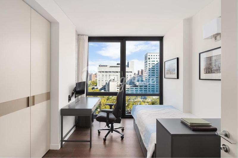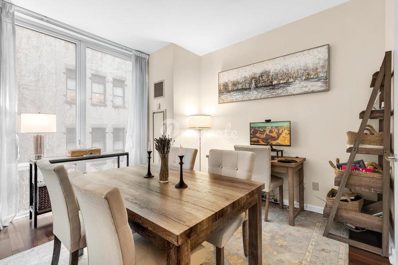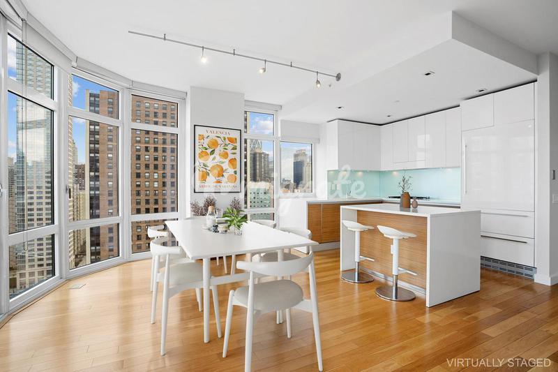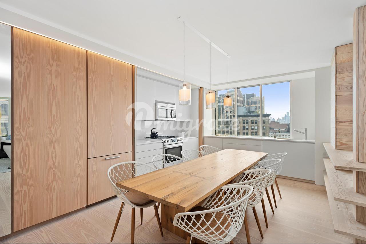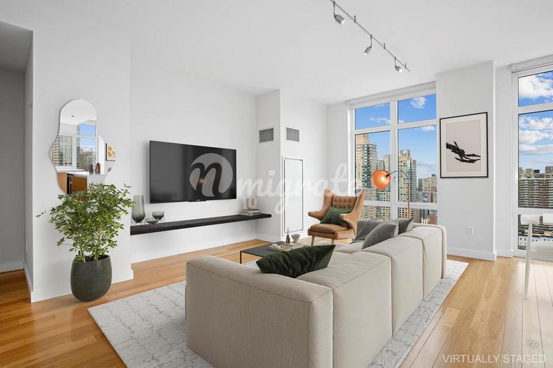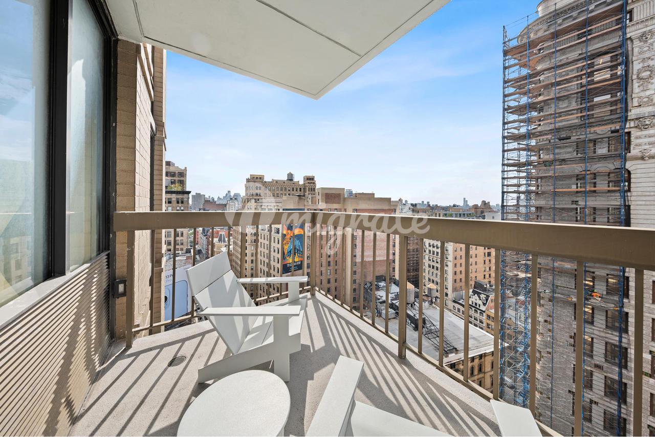 SPACE LIGHT VIEWS SERENITY AMENITIES на 24-м этаже, юго-западный угол дома, спроектированный всемирно известным архитектором. Просторный дом с одной спальней и двумя ванными комнатами, бывший 4,5-комнатной квартирой, был преобразован. Жилая площадь растянута и открыта для еды на кухне. Блестящий дизайн включает в себя окна от стены до стены, солнце и потрясающие виды, в том числе здание Флэтайрон и широкие виды на город.