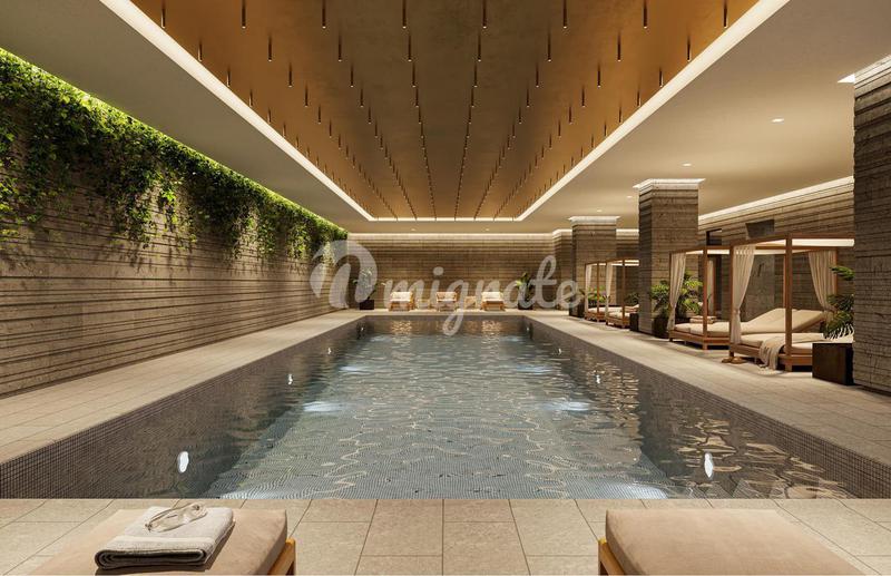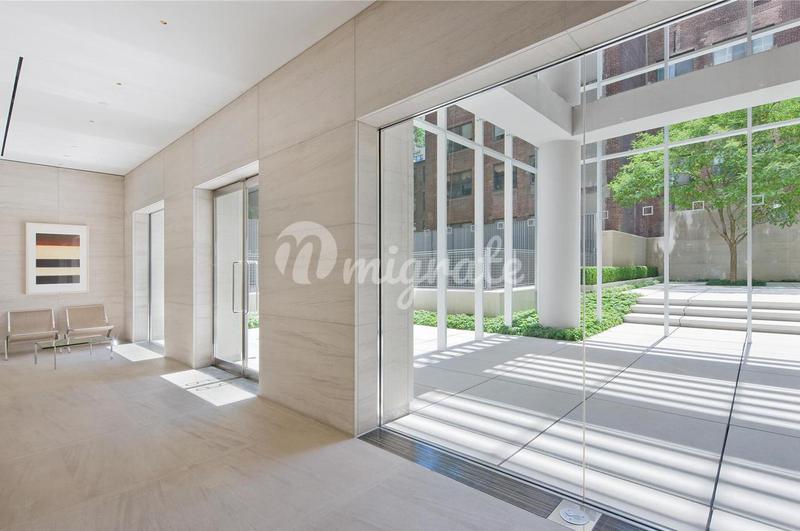 Подход к этому кондоминиуму с полным спектром услуг приветлив и прекрасен, начиная с зелени у входа и стеклянной стены с видом на «карманный парк».