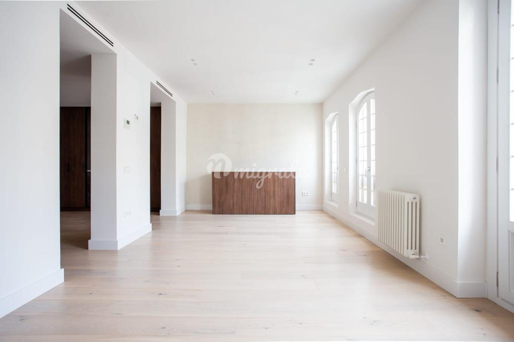 Он расположен в одном из впечатляющих зданий с классическим фасадом в районе Трафальгар, пользующемся большим спросом благодаря своему спокойствию и близости к району Альмагро. Здание является визитной карточкой Франсиско Хавьера Ферреро Льюсии, одного из самых известных архитекторов мадридского рационализма, на которого оказали влияние регионалистская архитектура, монументальность Антонио Паласиоса и стиль необарокко 1920-х годов. Некоторые из его замечательных творений включают рынок Олавиде и знаменитый виадук. Недавно завершенный ремонт этого жилища площадью 114 м2 включает в себя прихожую, просторную гостиную с двумя балконами и эркером с выходом на террасу, кухню и обеденную зону, примыкающую к гостиной. Во внутренней части находятся две спальни и две ванные комнаты, причем в одной из спален есть гардеробная и смежная ванная комната.