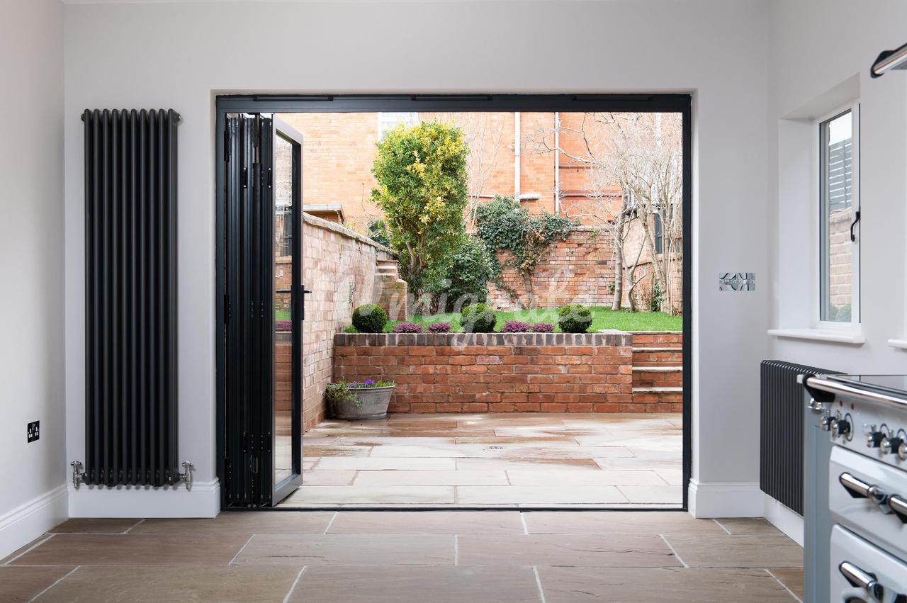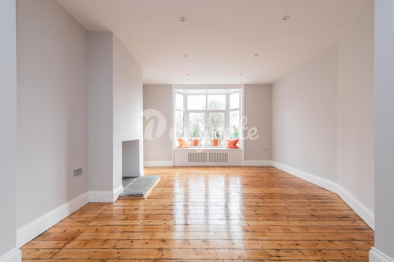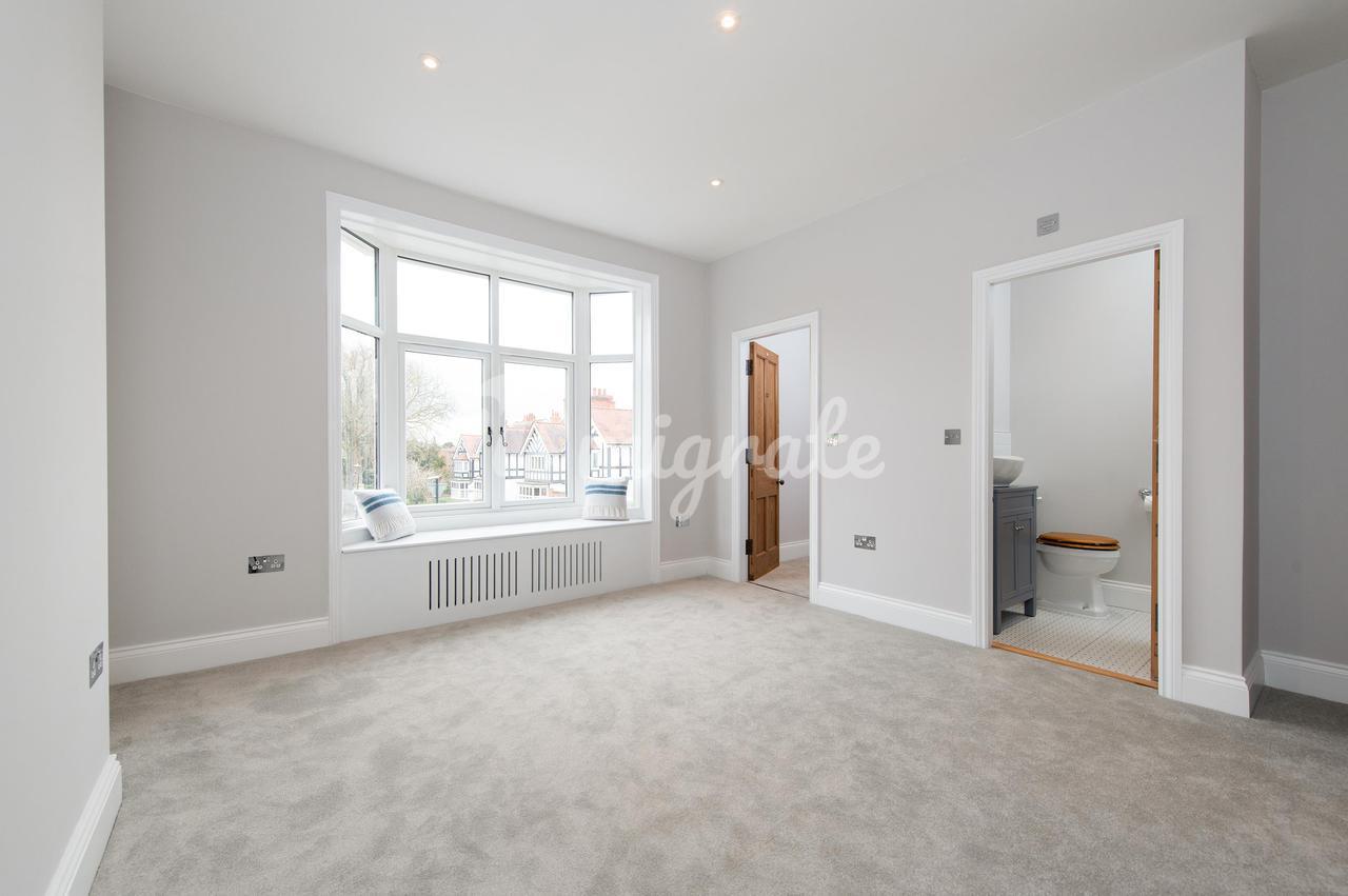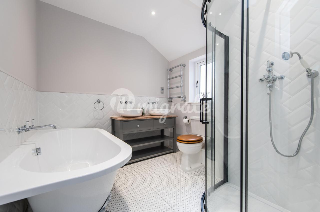 Светлая и просторная кухня-столовая открытой планировки с двустворчатыми дверями, выходящими в сад, каменным полом, окрашенными вручную приборами, кварцевыми столешницами и двойной раковиной Belfast. Встроенная бытовая техника включает плиту Rangemaster, встроенную посудомоечную машину и холодильник с морозильной камерой.