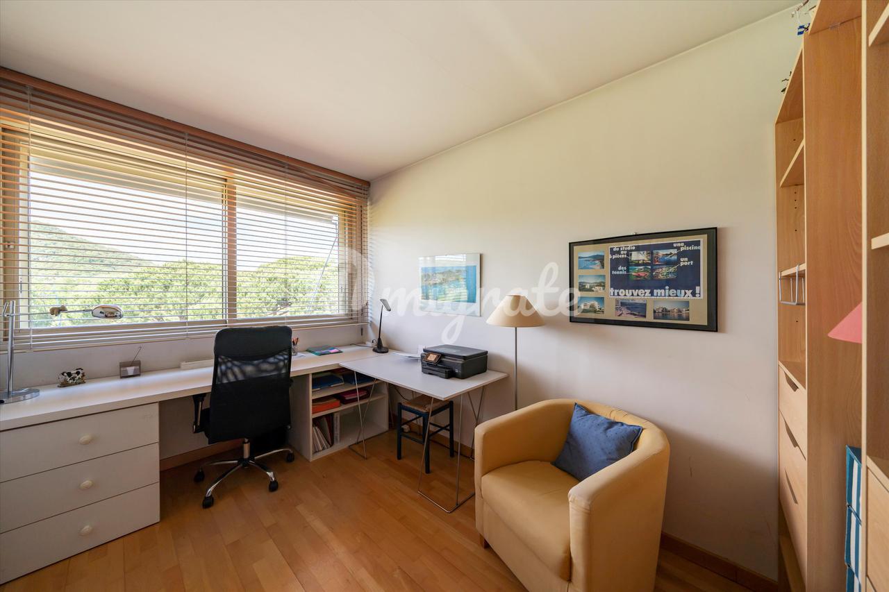 Эта вилла на крыше расположена в охраняемом районе с бассейном, теннисным кортом и рестораном, всего в нескольких шагах от пляжа и порта Манделье. Квартира имеет большой потенциал после ремонта, с существующей жилой площадью 122 кв. м, тремя спальнями, двумя ванными комнатами и открытыми террасами, выходящими на юг, восток и запад. Недвижимость продается с гаражом и подвалом.