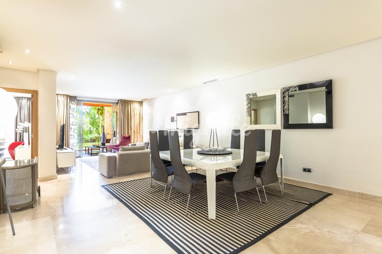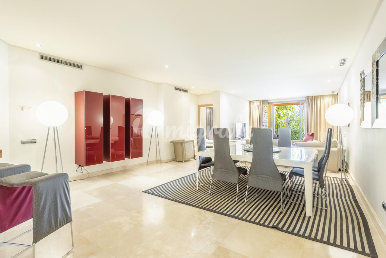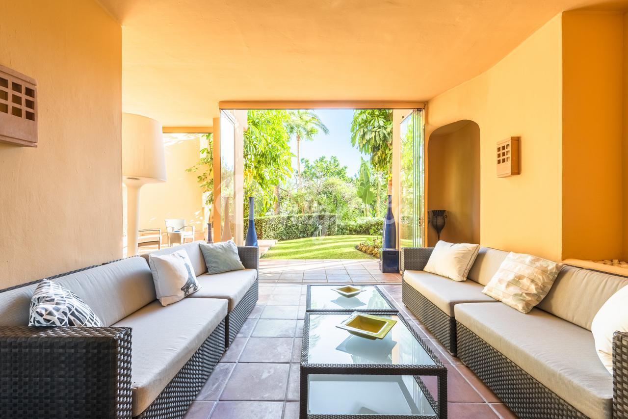 Эта квартира на первом этаже расположена в эксклюзивном комплексе Mansion Club, на Золотой Миле Марбельи. Закрытый и безопасный комплекс, построенный с использованием современных высококачественных материалов и особенностей типичной андалузской архитектуры, таких как колонны, арки, перголы и большие окна, которые придают этому комплексу особый характер, спроектированный известным архитектором Мелвином Вильяроэлем.