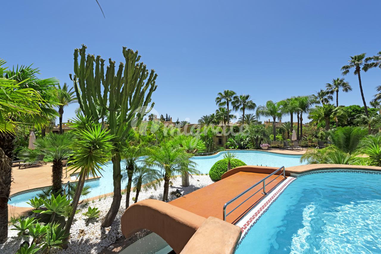 Расположенный среди пышных тропических садов, бассейнов и водопадов, этот популярный адрес находится примерно в 2 км от пляжа и в 5 км от Пуэрто Бануса.