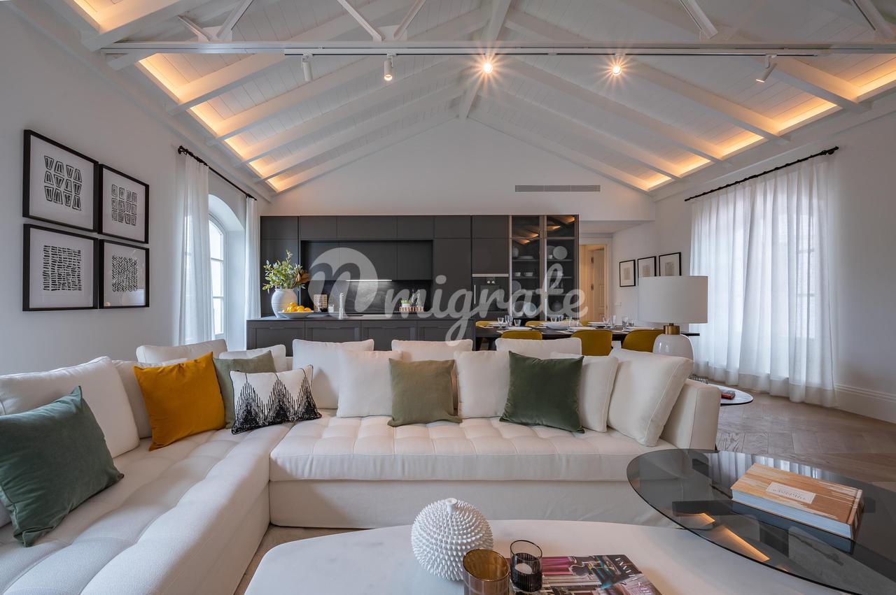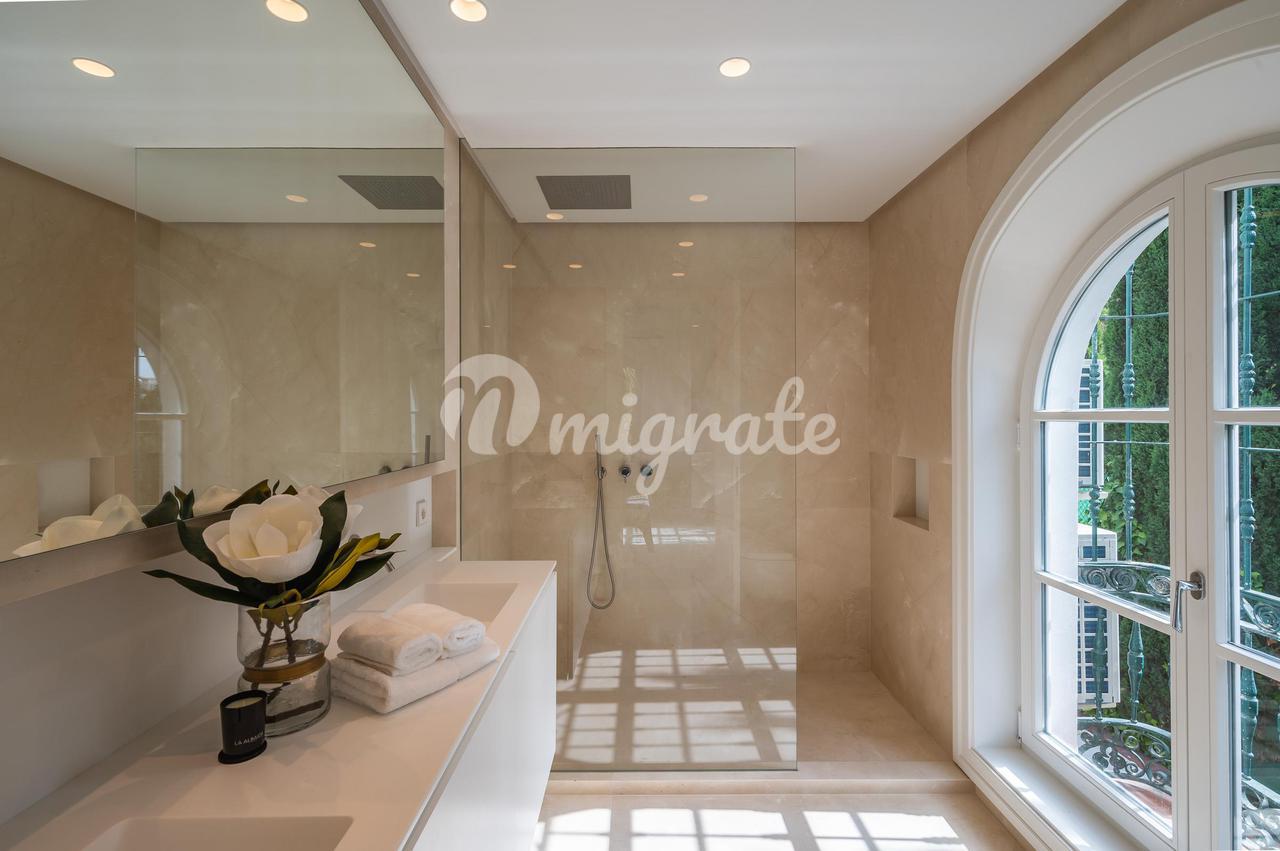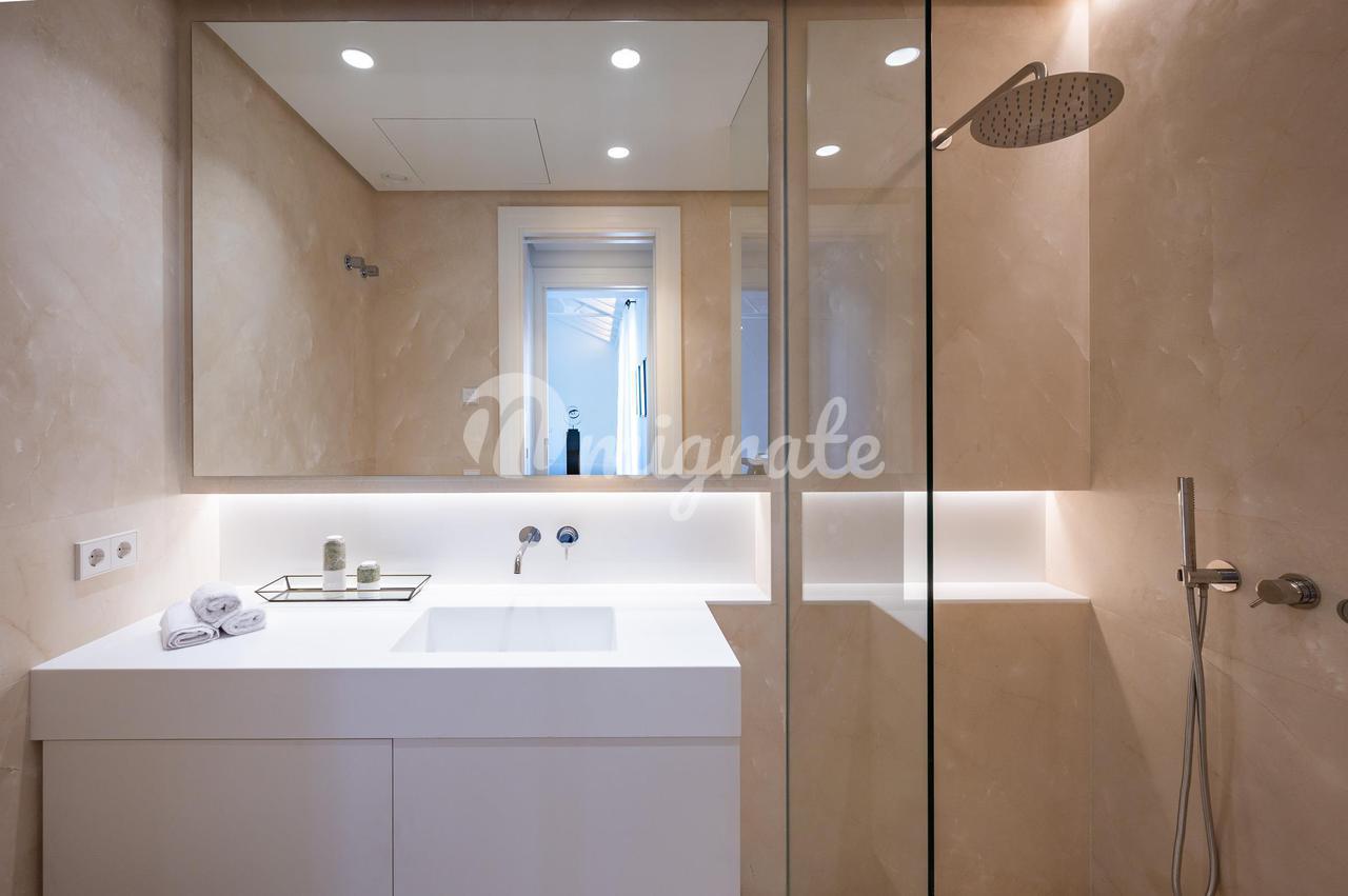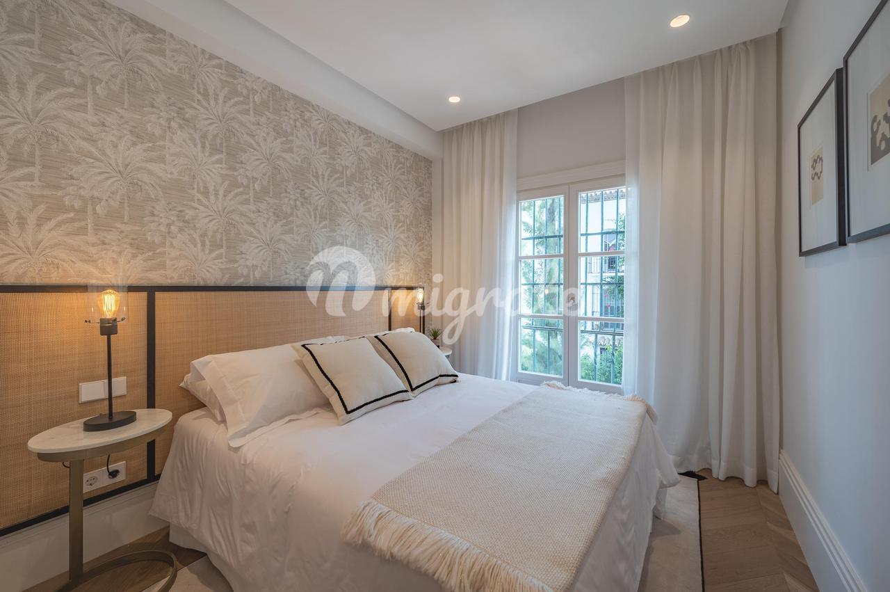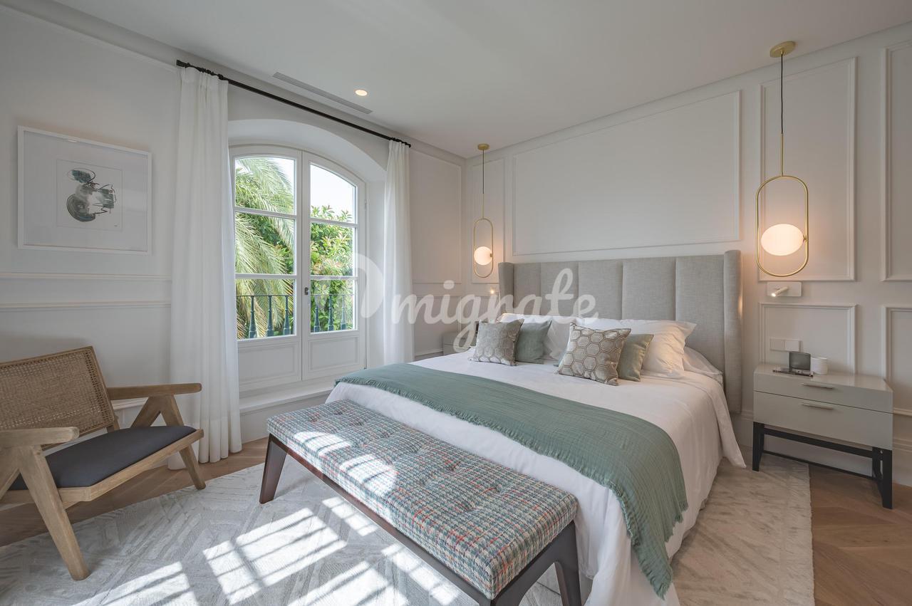 Эта элегантная и стильная квартира, полностью отремонтированная и спроектированная командой дизайнеров интерьеров, предлагает удобную планировку, состоящую из гостиной/столовой открытой планировки с дровяным камином и остроконечным потолком, облицованным белым деревом. Кухня в современном стиле с техникой Gaggenau, три спальни с тремя ванными комнатами. Недвижимость оснащена кондиционером, наружными камерами, предустановленной системой сигнализации, столярными изделиями "Roman Clavero", полами из массива дуба, полами с подогревом в ванных комнатах и светодиодным освещением.