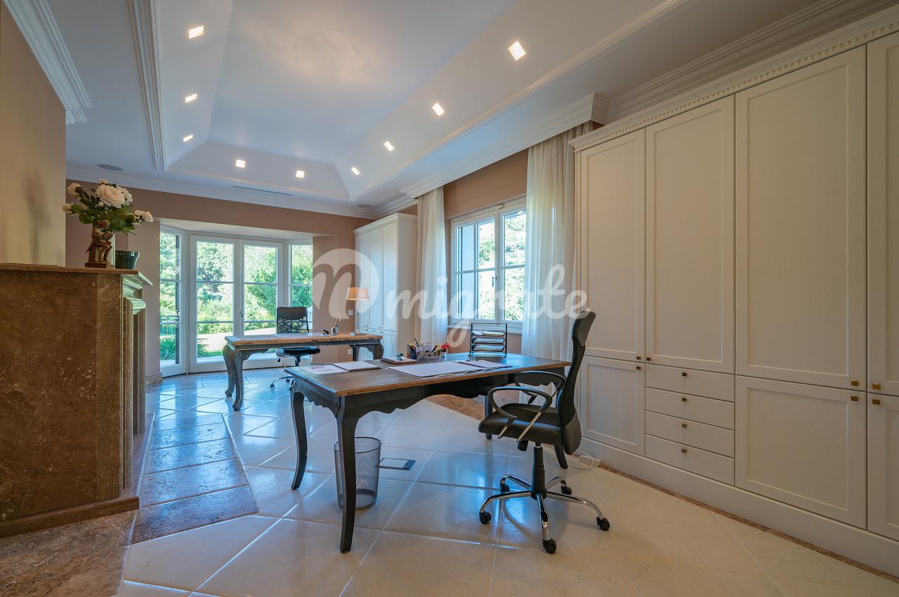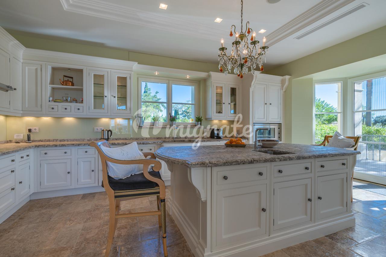 Сигнализация, кондиционер с тепловым насосом, полы с подогревом на дизельном топливе, полы из итальянского мрамора, турецкого травертина и массивной древесины, окна с двойным остеклением, австрийские наружные деревянные столярные изделия, резервуары для воды, солнечные батареи, спутниковое телевидение, предварительная установка для винного погреба. , электрические жалюзи, кроме подвала, система домашней автоматизации, видеодомофон и звуковая система.