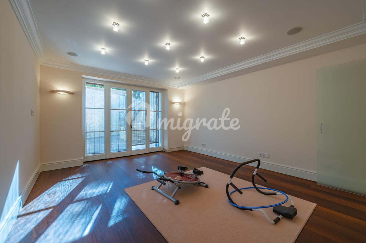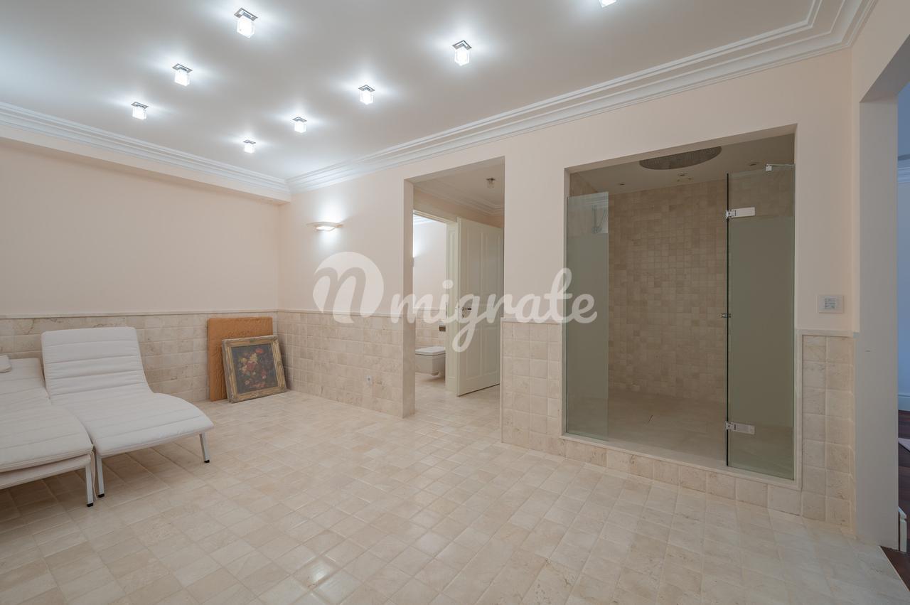 В большом полезном подвале есть помещение, подготовленное для: винного погреба с термостатом, паровой бани и сауны, спортзала, душа, туалета, прачечной, расширяемого гаража на 3 машины и гостевых помещений, включая одну спальню со встроенными шкафами и душем. номер. Этот гостевой люкс имеет выход во внутренний двор, соединенный лестницей с уровнем сада и бассейном.