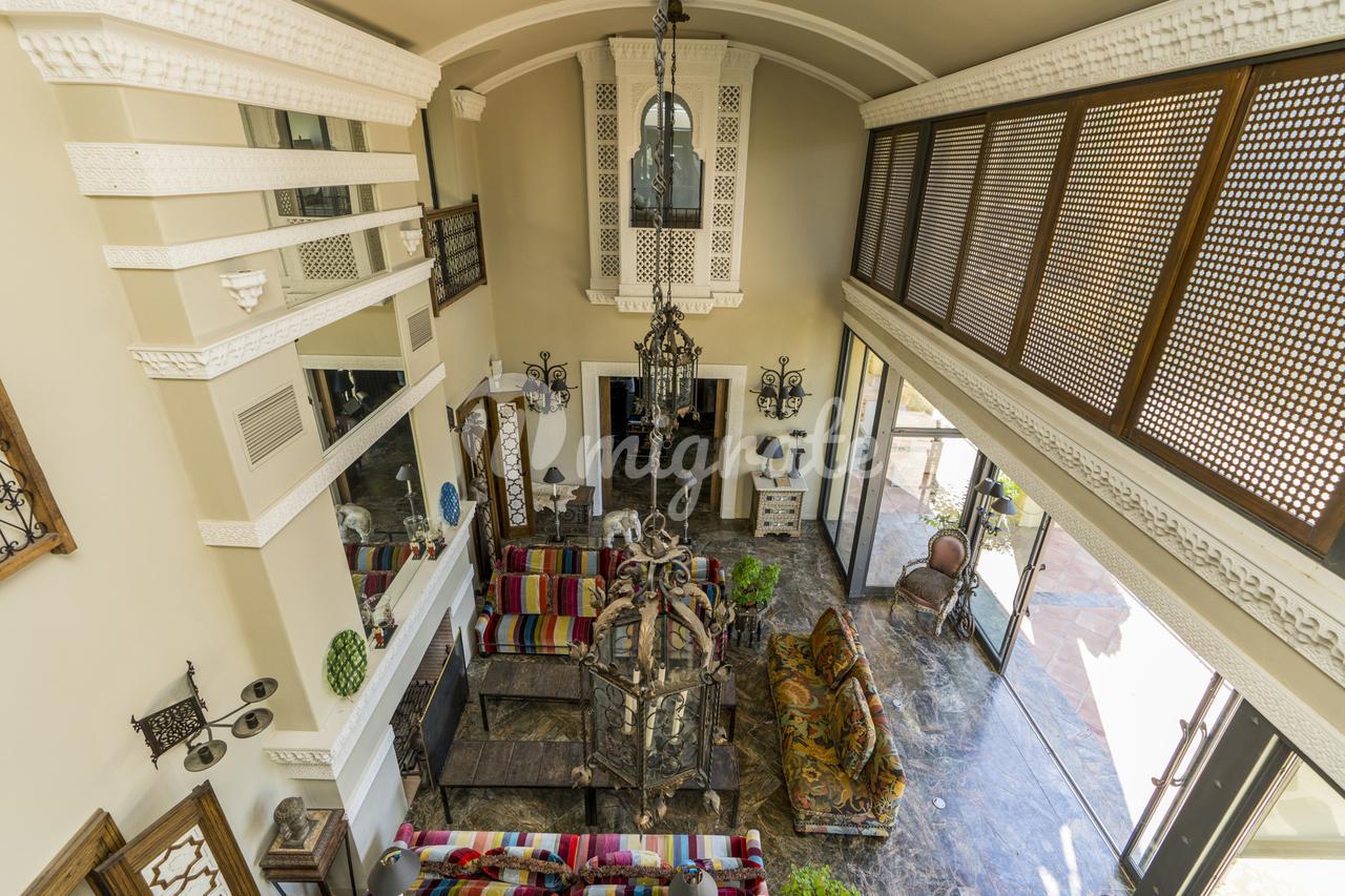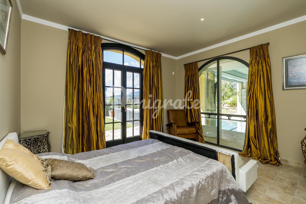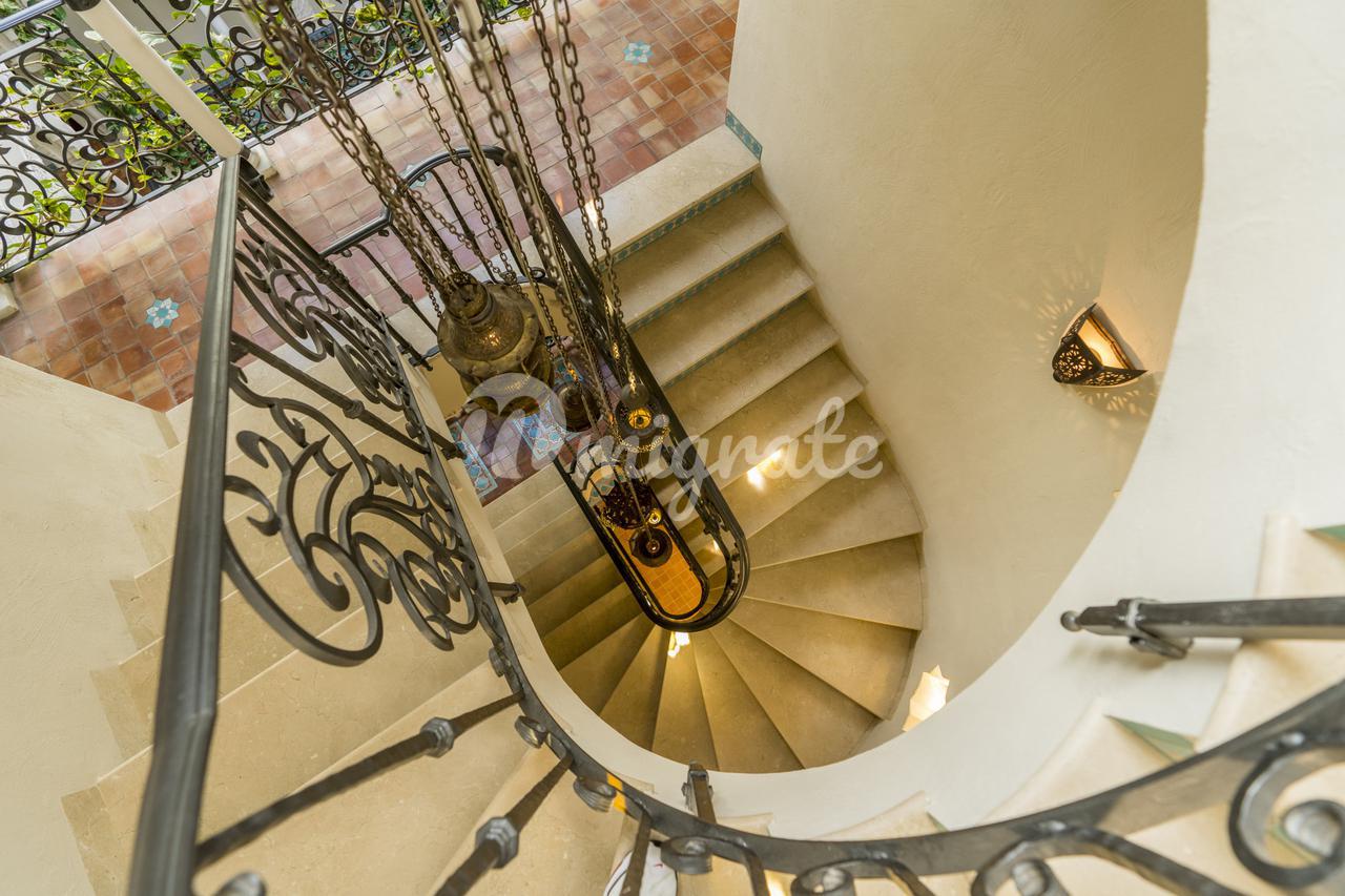 На участке 5.082 м2 недвижимость имеет застроенную площадь около 825 м2 и имеет четыре этажа. На уровне входа есть прекрасный внутренний дворик с фонтаном, ведущий в гостиную с потолками двойной высоты, камином и окнами от пола до потолка, дающими доступ к красивой террасе с захватывающим видом на море и поле для гольфа. Также есть исследование. Полностью оборудованная кухня со столовой и соединена с большой официальной столовой с выходом на террасу. Из кухни также есть выход на террасу, где есть барбекю и камин, где можно пообедать или поужинать на свежем воздухе. Наконец, есть уютная гостиная рядом с кухней, которую можно использовать как телевизионную комнату.