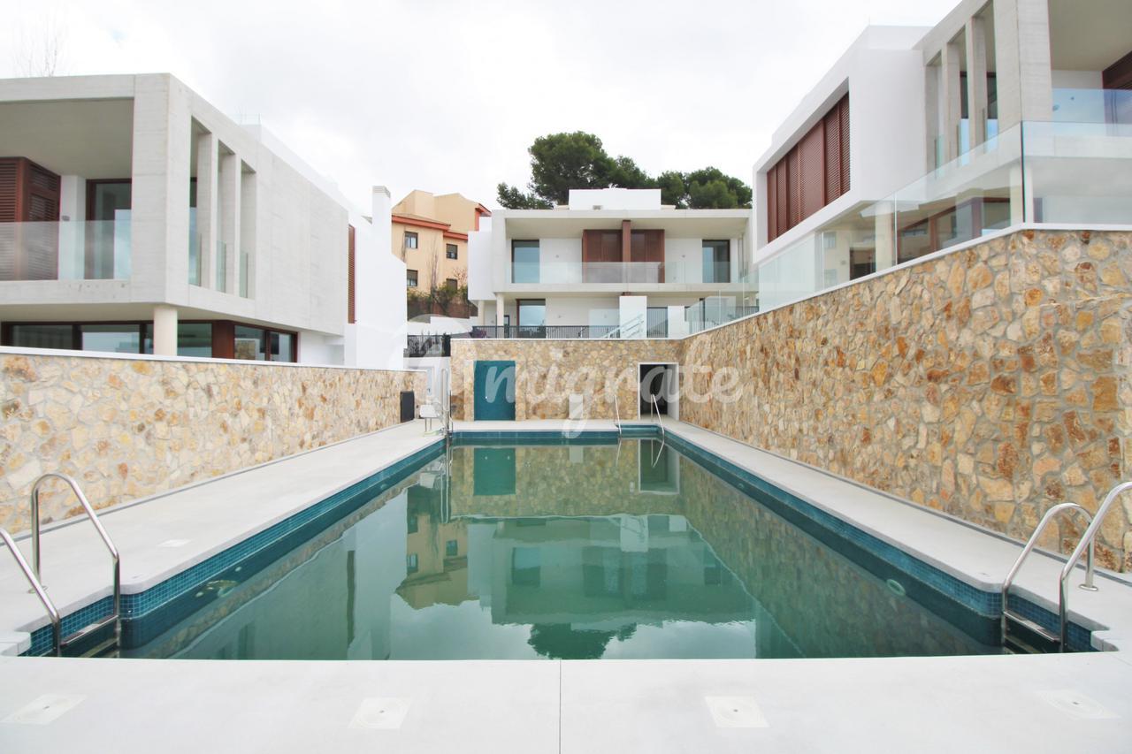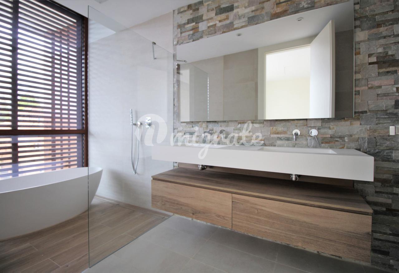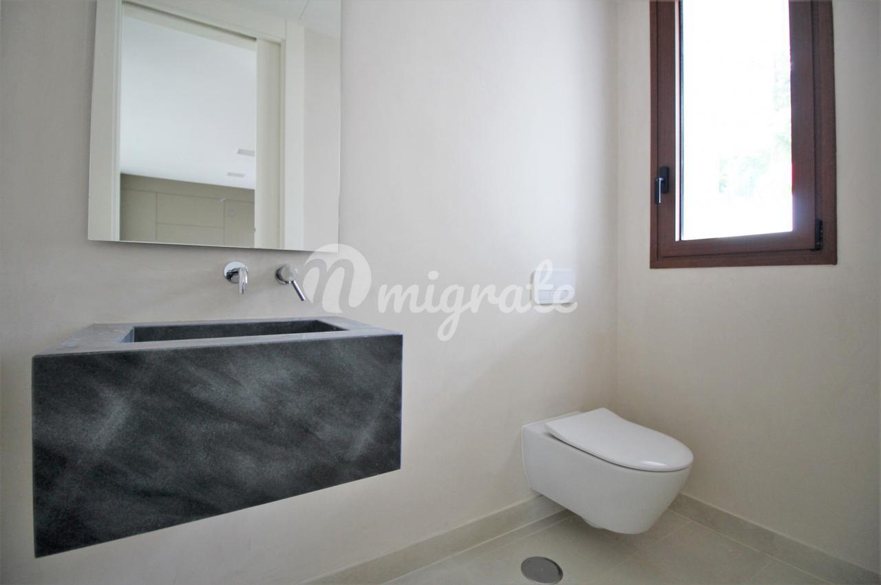 Другие характеристики дома: стеклянные перила на лестнице, крупноформатная керамогранитная плитка, подвесные зеркала и теплая светодиодная лента для ретро-освещения, тепловой насос Aerotermia, тепловой насос Daikin для отопления, охлаждения и горячего водоснабжения, полы с подогревом, алюминиевые наружные столярные изделия. и поднять.