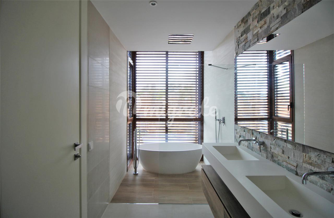 На верхнем уровне с деревянными полами находятся три спальни. Две из них выходят на восток и имеют отдельную ванную комнату с душем, а главная спальня с западной ориентацией включает в себя ванную комнату и террасу.