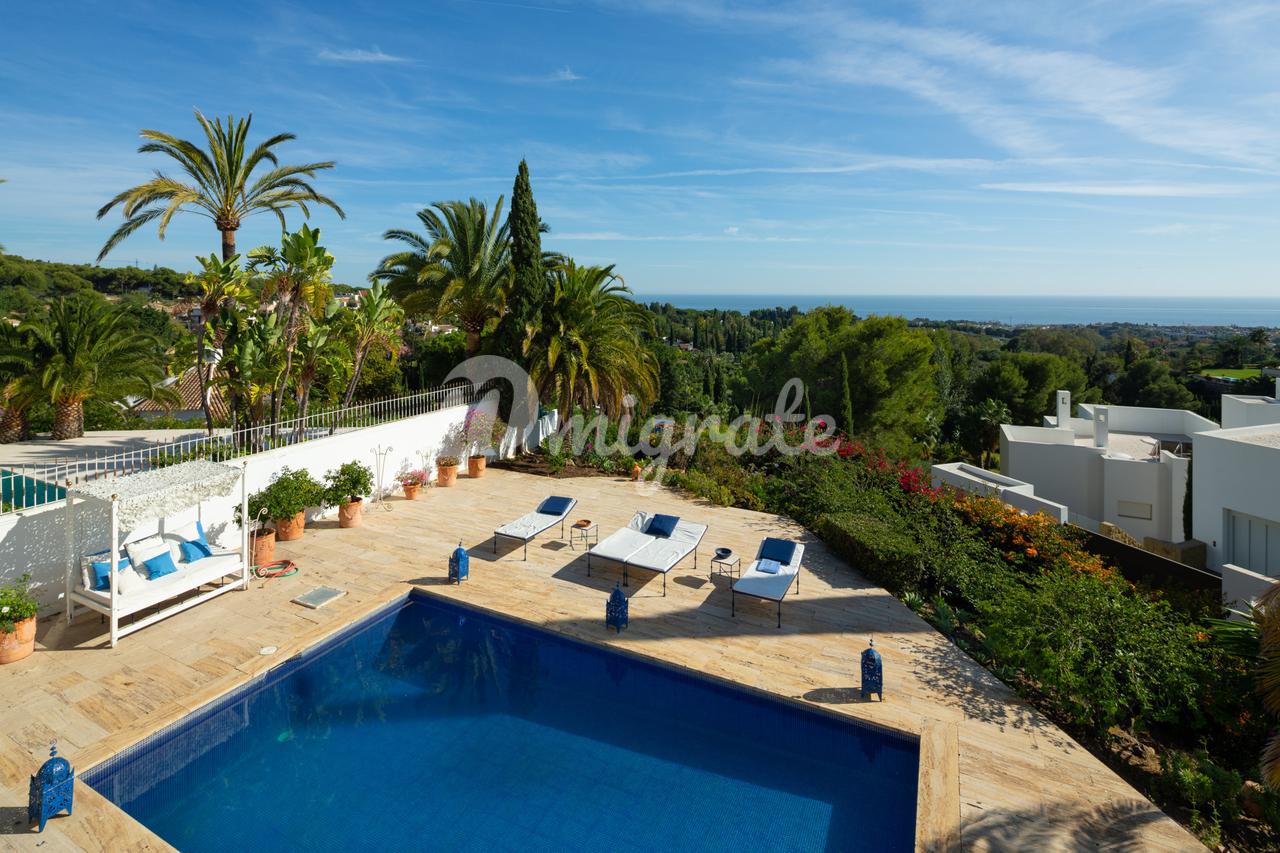 Безупречная и уютная вилла в охраняемом комплексе Marbella Hill Club, одном из престижных районов Золотой Мили. Расположен недалеко от местного природного заповедника соснового леса и примерно в 3 км от центра Марбельи и пляжа.