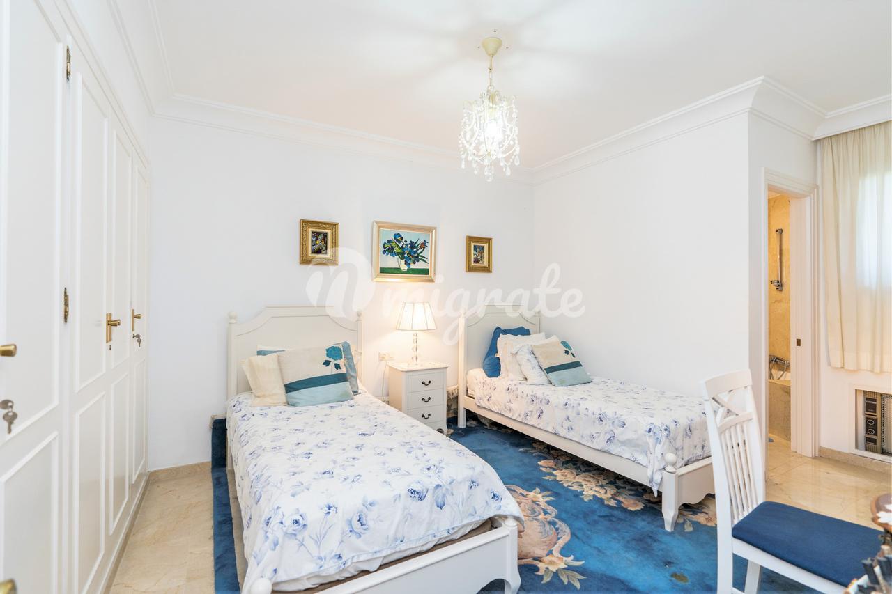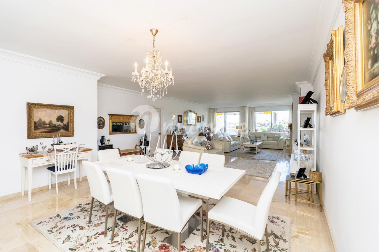 Это уникальная возможность приобрести фантастическую, редко доступную, чрезвычайно большую и очень светлую квартиру в самом эксклюзивном престижном жилом комплексе на первой линии гольфа в Гуадальмина-Альта, удобно расположенном примерно в 3 км от пляжа и в 1,5 км от ближайшего коммерческого центра города. Гуадальмина. Знаменитый настоящий гольф-клуб, который его окружает, является одним из самых известных и авторитетных гольф-клубов в Марбелье, в котором проводится множество известных турниров. Этот эксклюзивный роскошный комплекс расположен в нескольких минутах езды от Пуэрто Бануса и центра Марбельи. Это очень элегантный стандарт с удивительно просторными номерами площадью чуть менее 200 м2, которые можно преобразовать в три или четыре спальни. Существует очень большая гостиная-столовая с бревенчатым камином, полностью оборудованная кухня с подсобным помещением, две просторные спальни со встроенными шкафами с кладовой и две ванные комнаты и мраморные полы. Кроме того, есть большая частично крытая терраса, выходящая на юго-запад, которая привлекает много солнца с видом на большие частные сады и частично на море. Кроме того, имеется подземное парковочное место и дополнительная большая кладовая. Этот эксклюзивный комплекс премиум-класса предлагает круглосуточную охрану и услуги консьержа, а также большой привлекательный бассейн и большие частные сады.