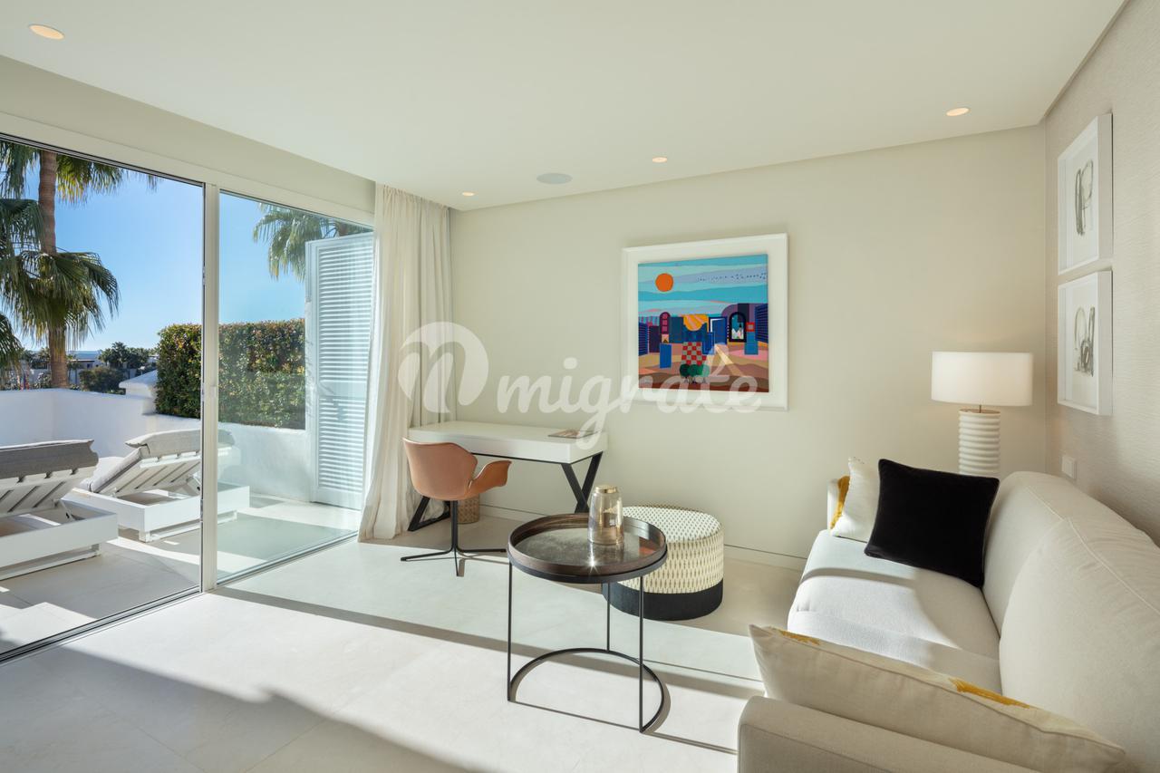 Изысканно оформленная, эта квартира была полностью отремонтирована по самым высоким стандартам и расположена в Пуэнте Романо, одном из самых привлекательных районов Золотой мили. Всего в нескольких шагах от теннисного клуба и престижных пляжных баров и ресторанов этого района.