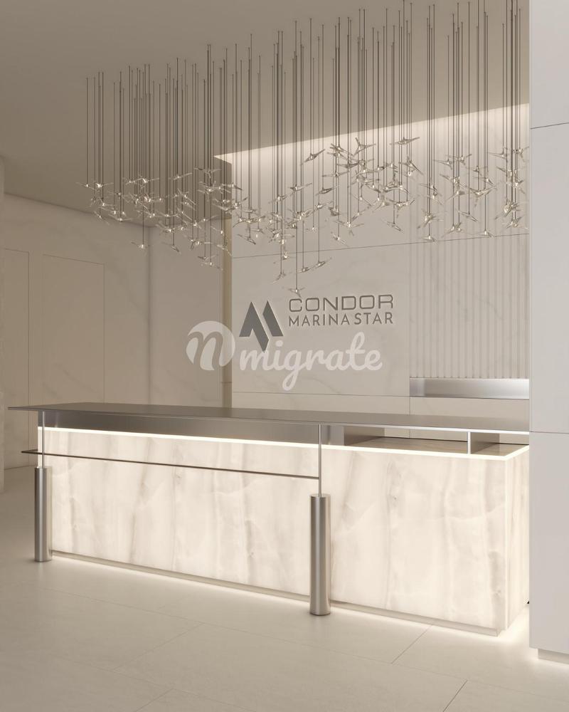 Condor Marina Star Residences by The Condor Group - 25-этажный жилой комплекс, который располагается в престижной локации Dubai Marina, на берегу Арабского залива. Здесь есть все для комфортной жизни: яхт-гавань, пляжи, изысканные рестораны, морские развлечения. В пешей доступности от комплекса располагаются необходимые объекты социальной инфраструктуры, включая престижные медицинские и образовательные учреждения, супермаркеты и торговые центры. 5 минут езды на автомобиле занимает путь до Palm Jumeirah, 12-15 минут — до Burj Al Arab, Burj Khalifa и Dubai Mall.