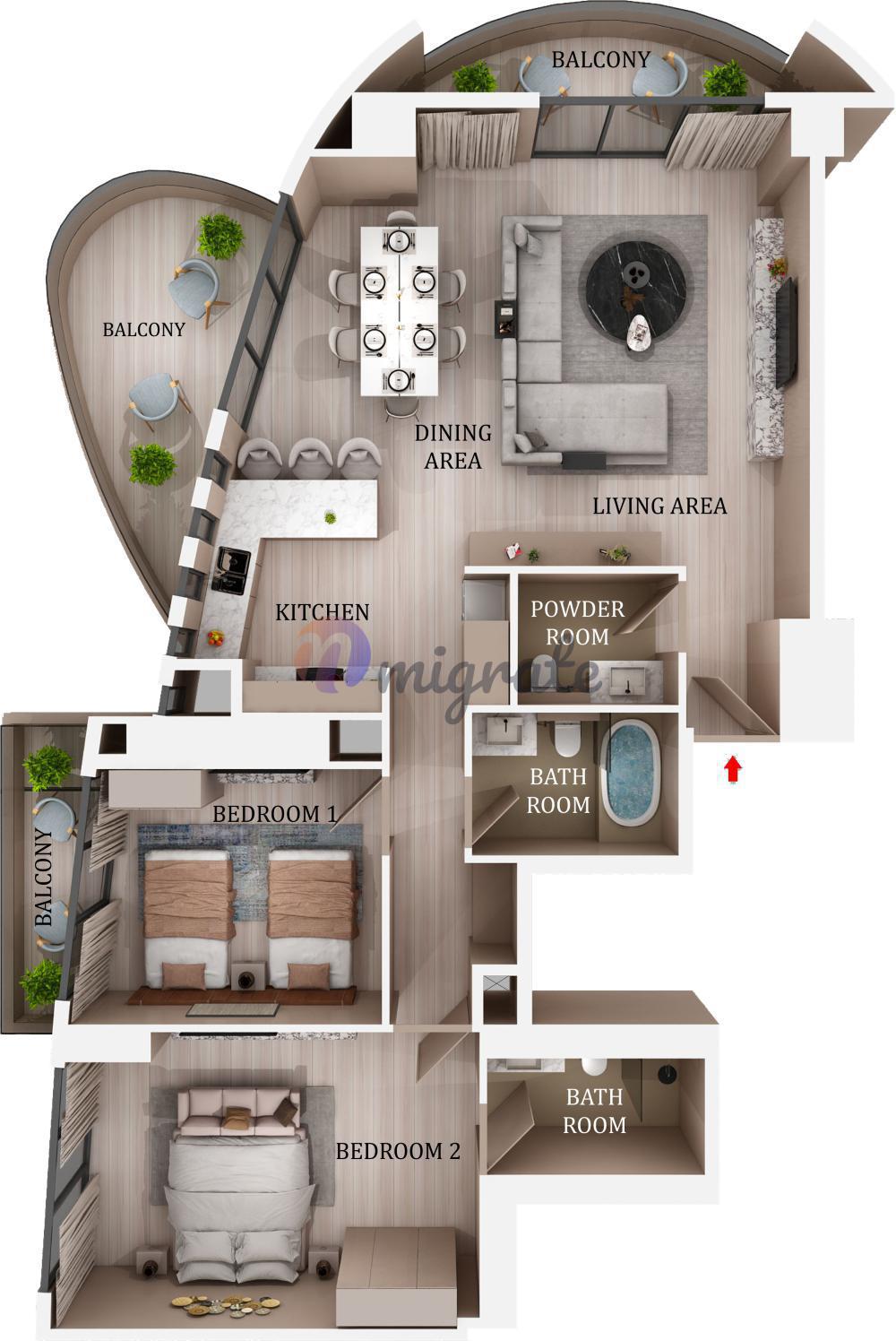 Мы рады представить вам двухкомнатную квартиру в Condor Marina Star Residences by The Condor Group.